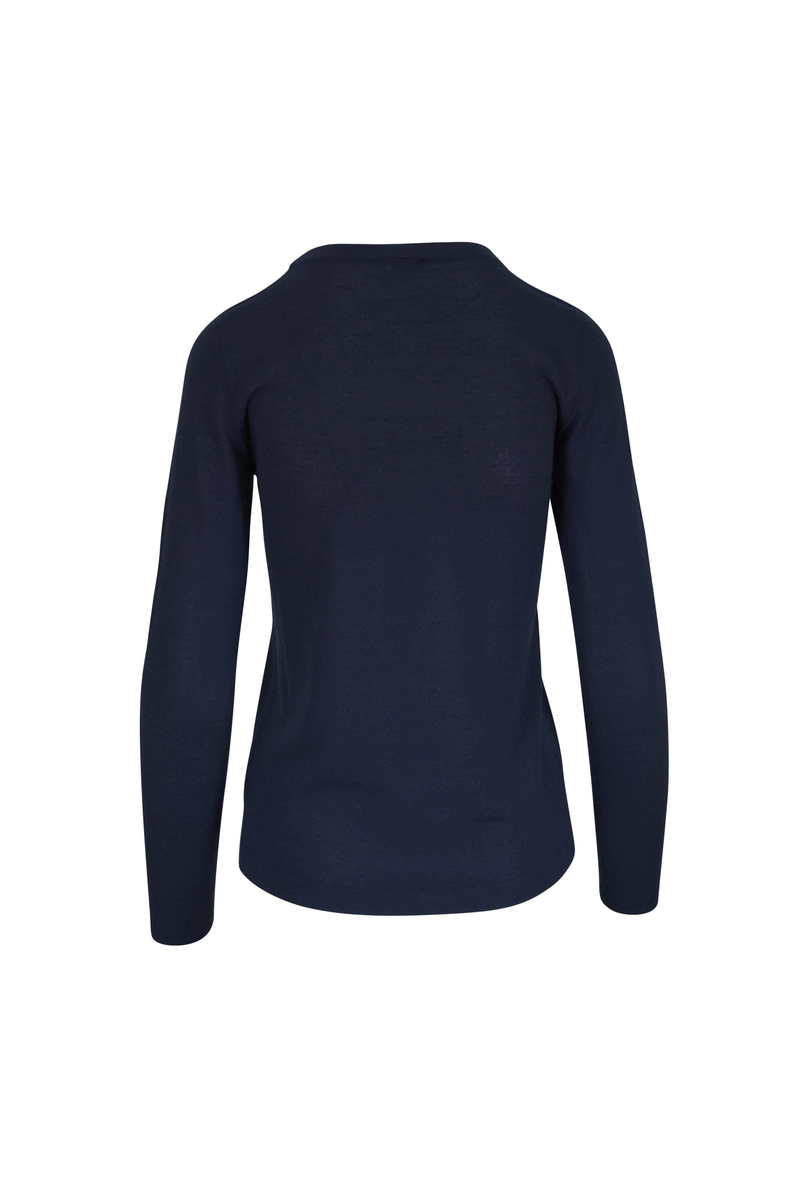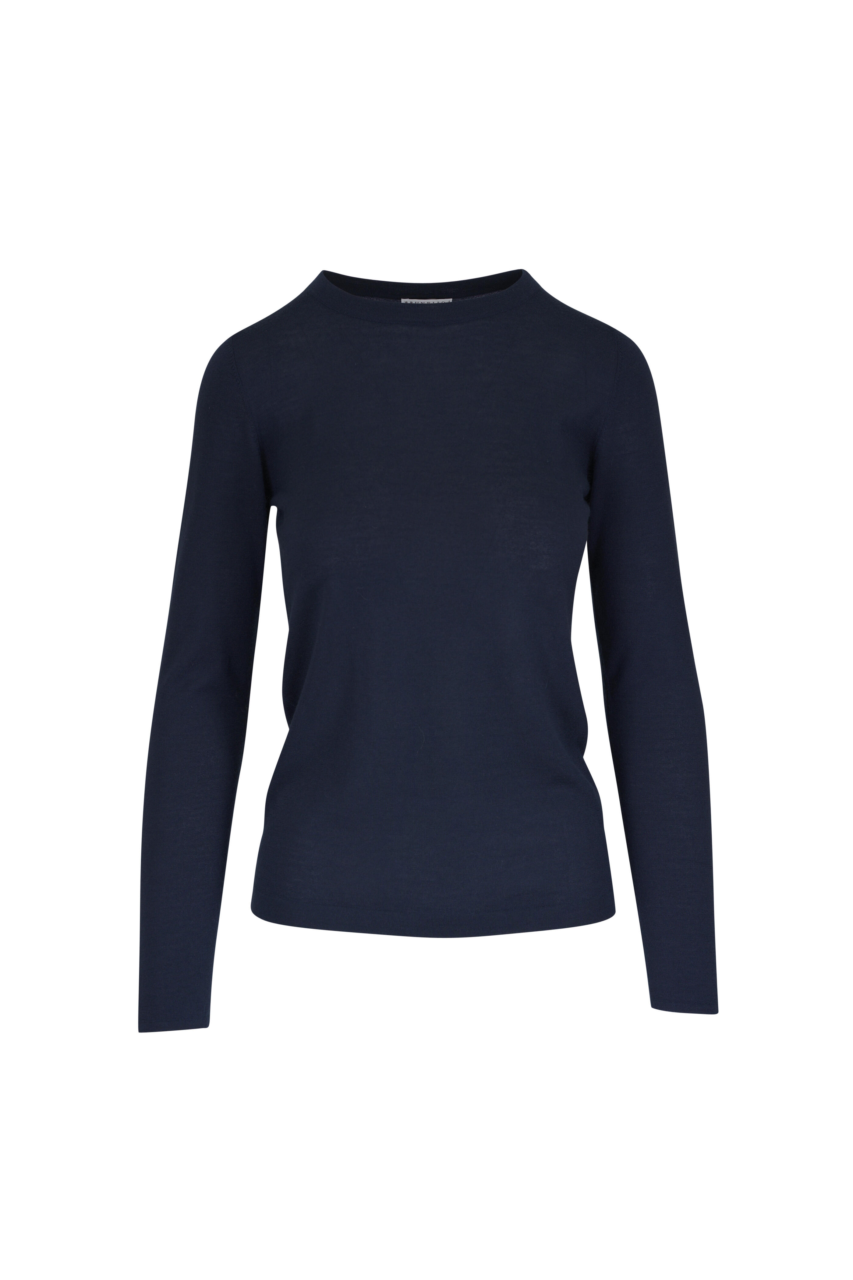 Crew neckline. Straight hem. Made in Italy. 70% cashmere, 30% silk. Dry clean.