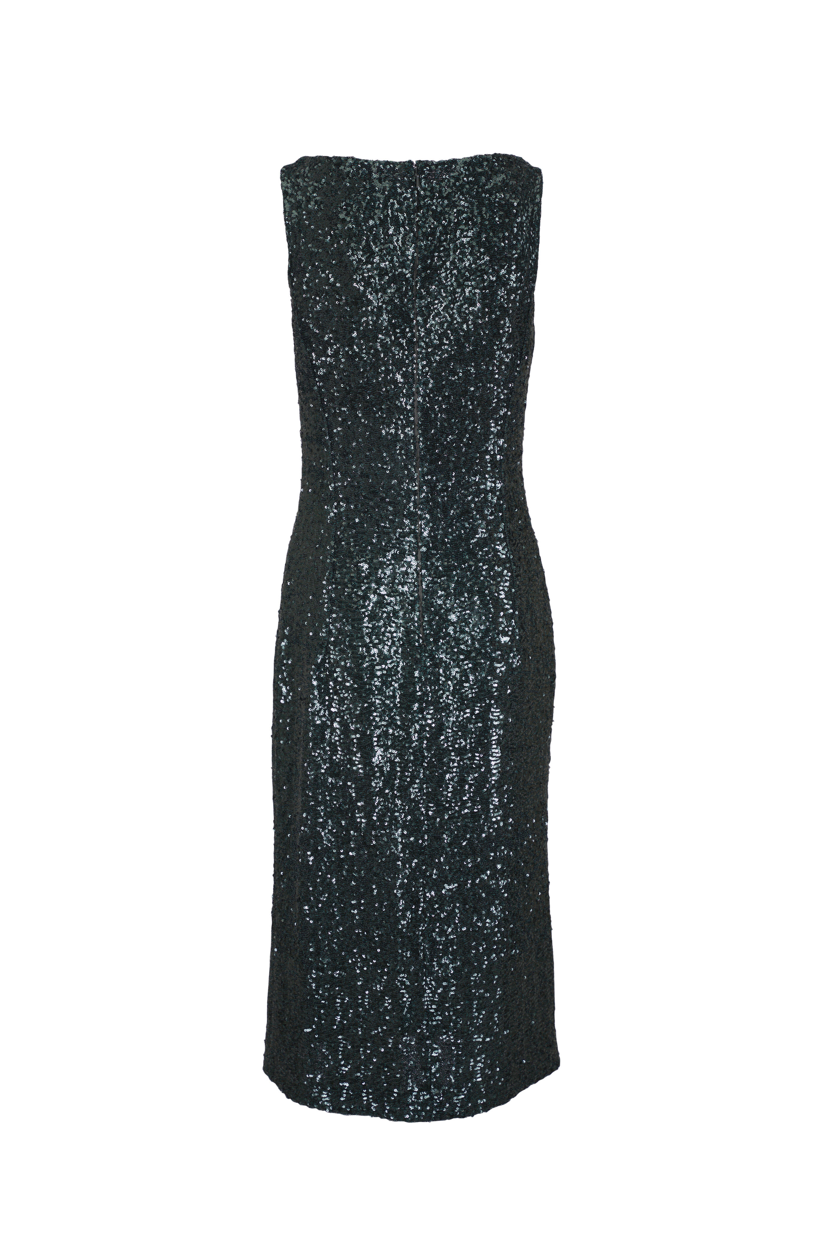V-neckline. Concealed back zip. Made in Italy. Approximately 46" shoulder to hem (measurements taken from size 6). 95% polyester, 5% elastane; lined. Dry clean.
