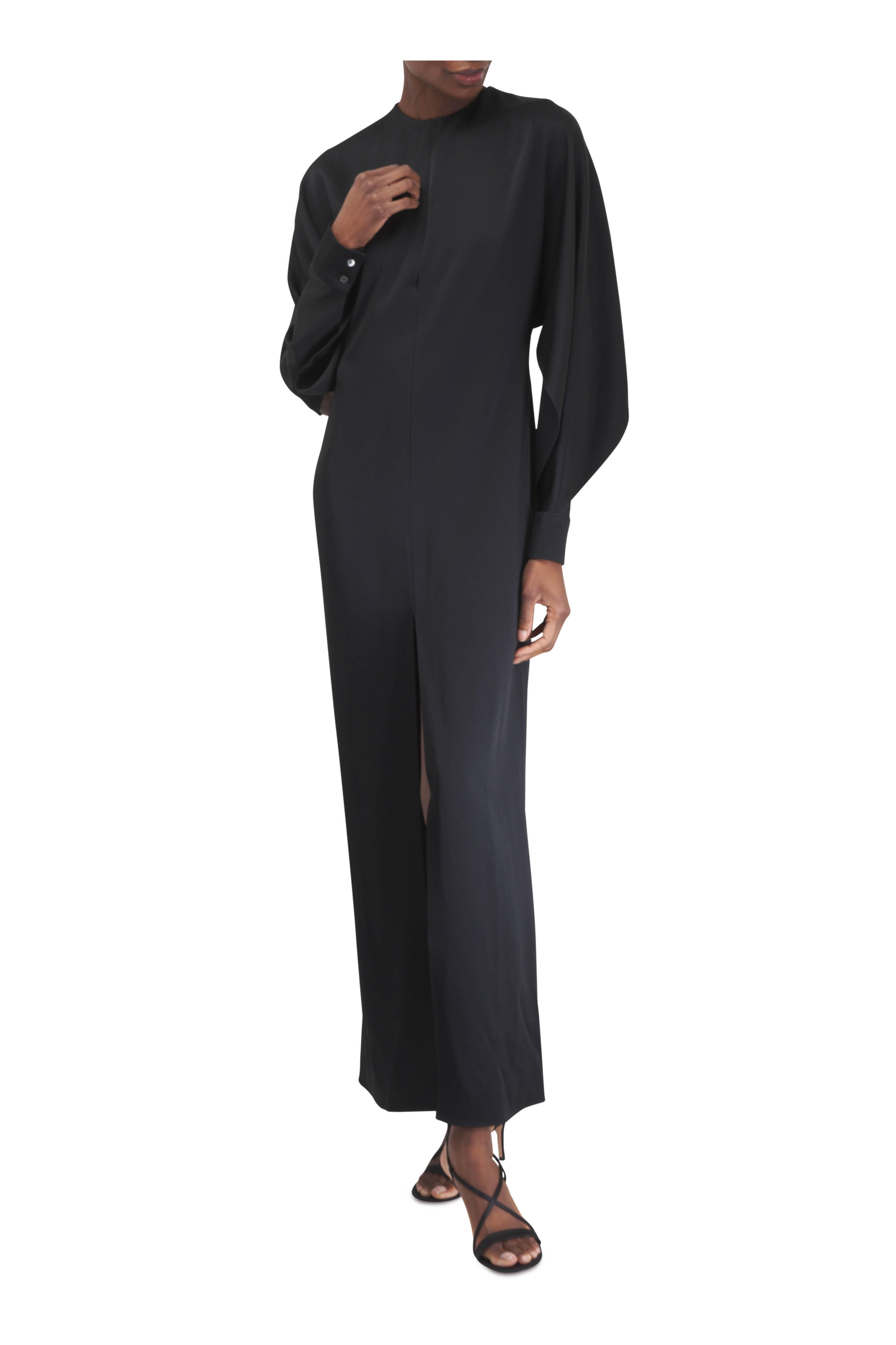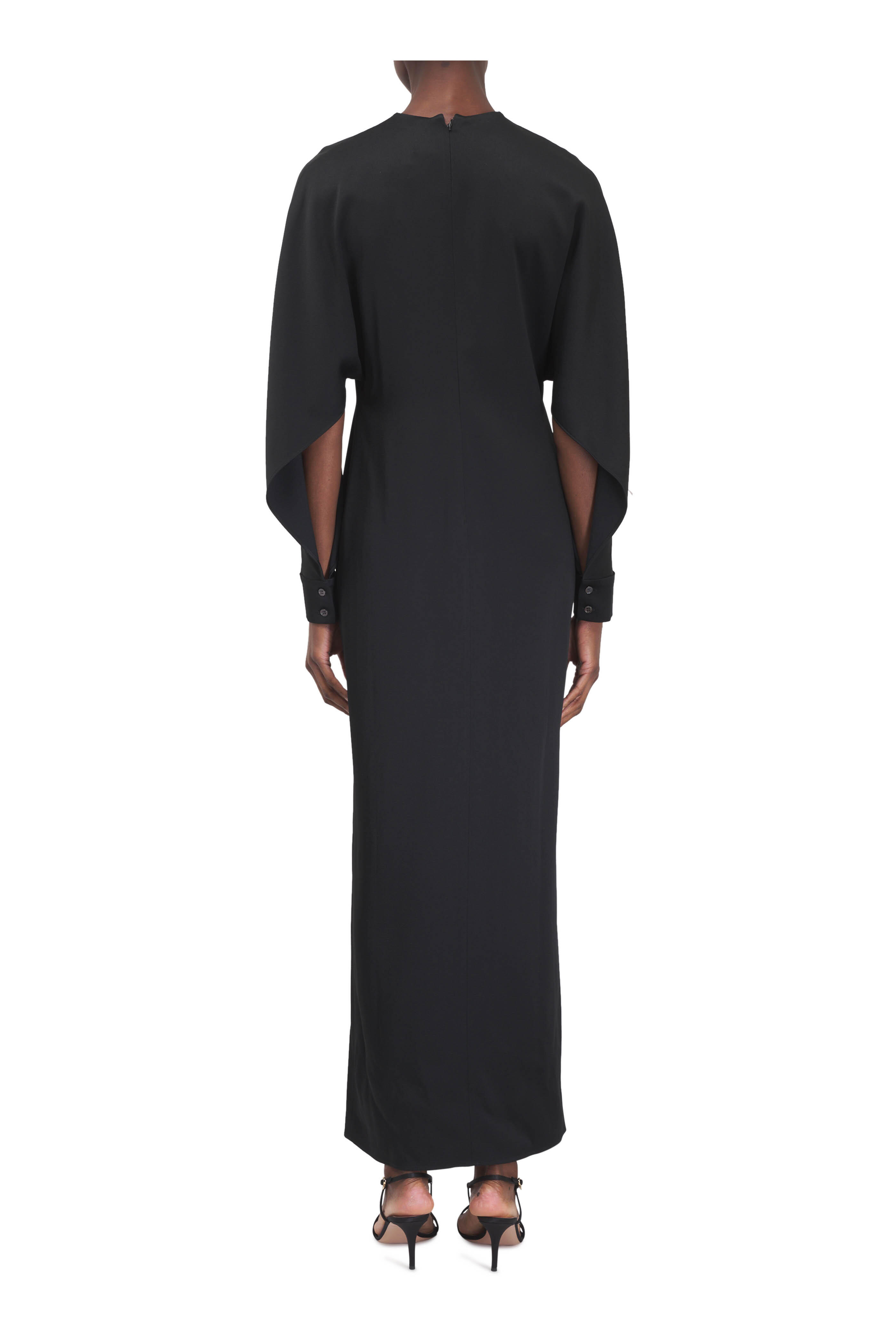 Zip fastening. Slit sleeves; dolman sleeves. Front slit. Made in Italy. 69% acetate, 31% viscose. Dry clean.