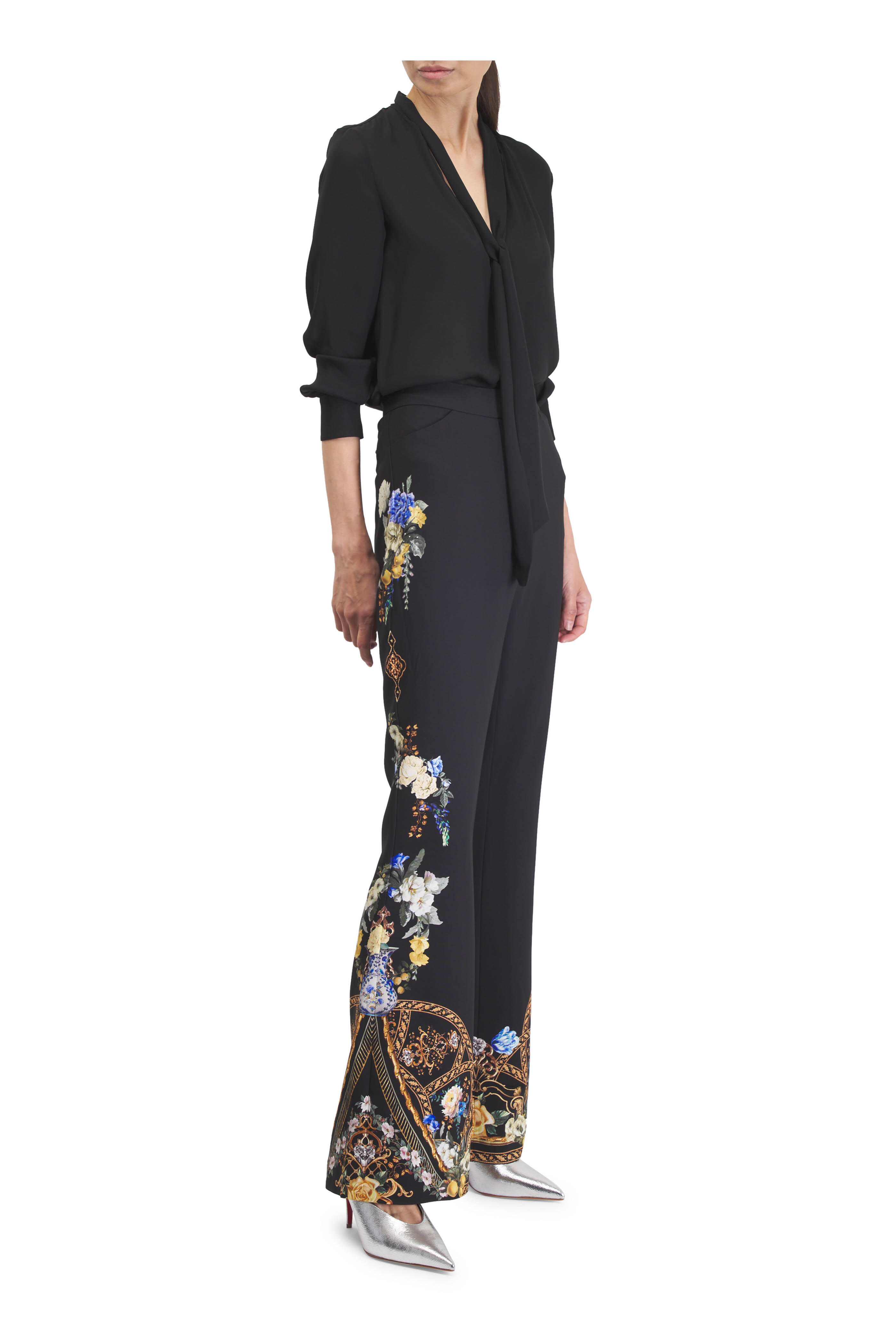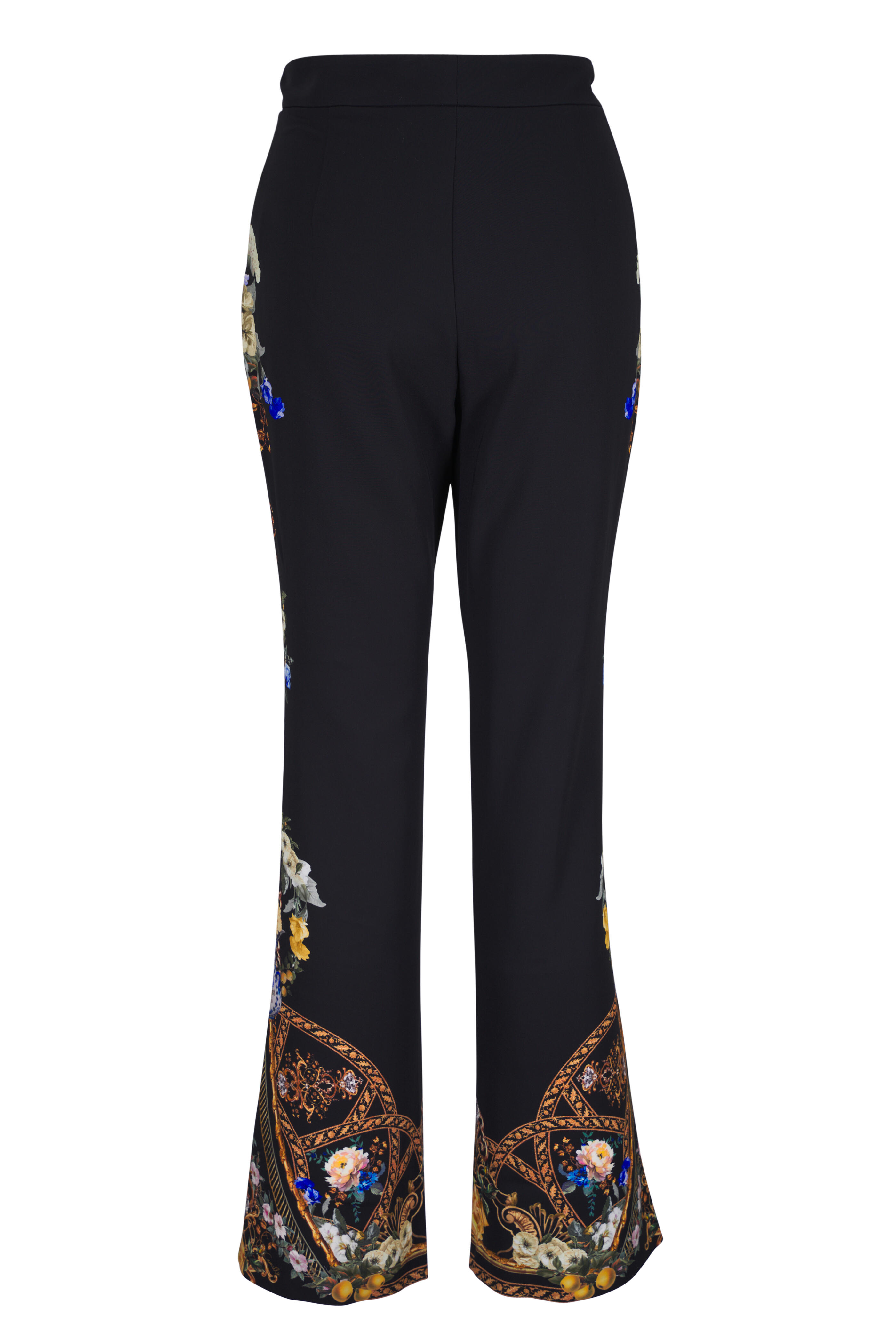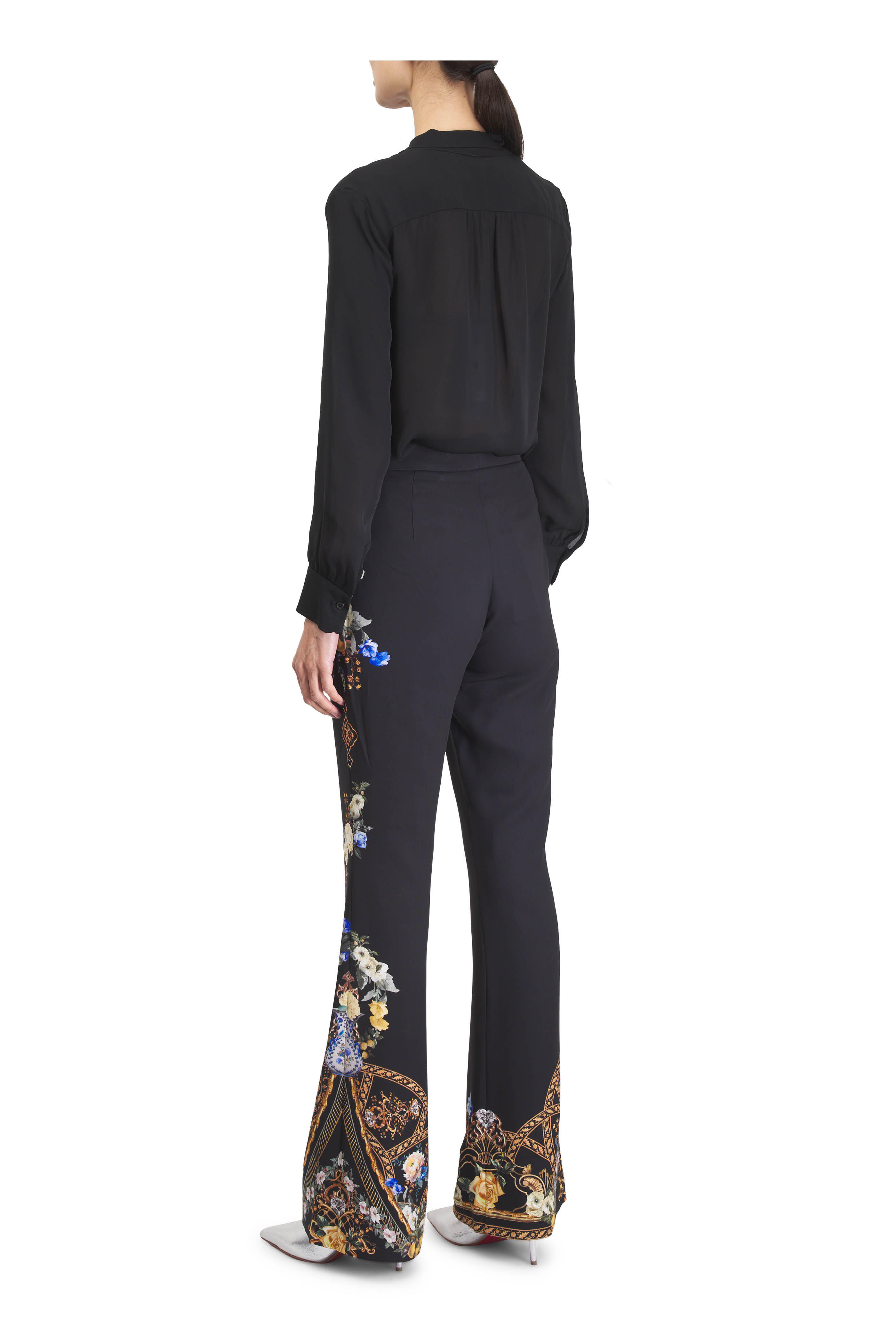 Black Multi Floral Seam Detail Flare Pant