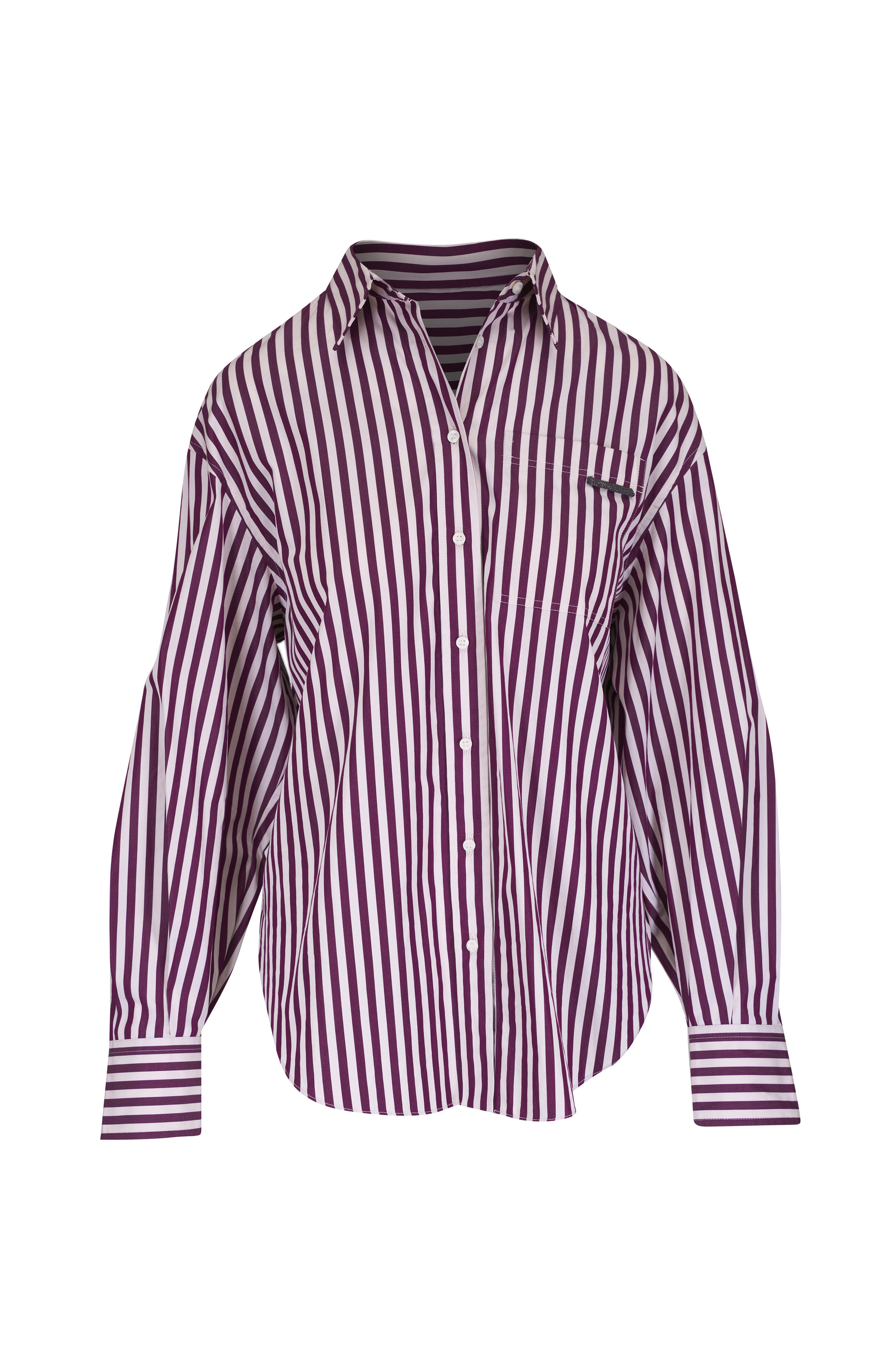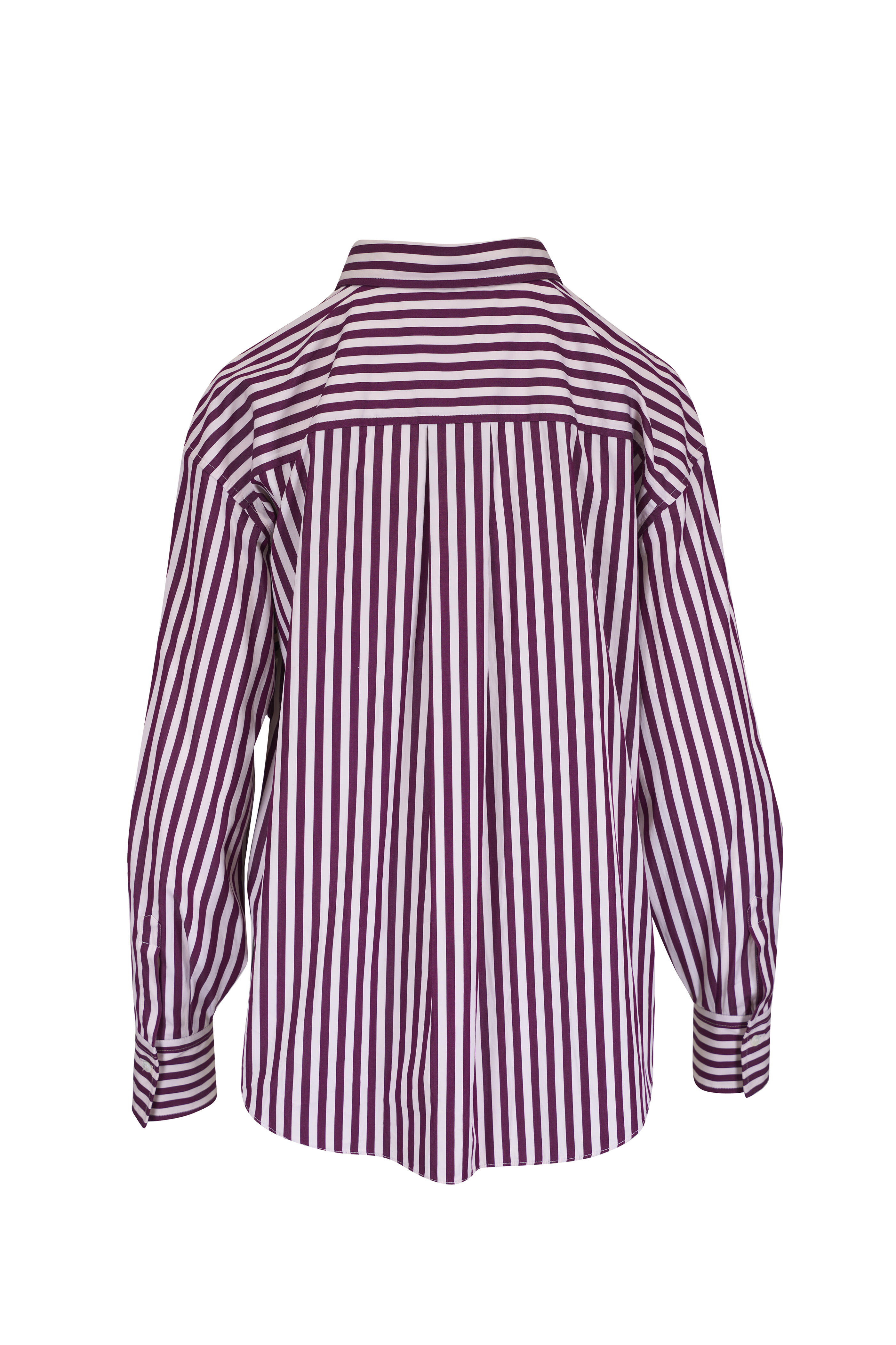 Amaranth Stripe Cotton Poplin Button-Up Shirt