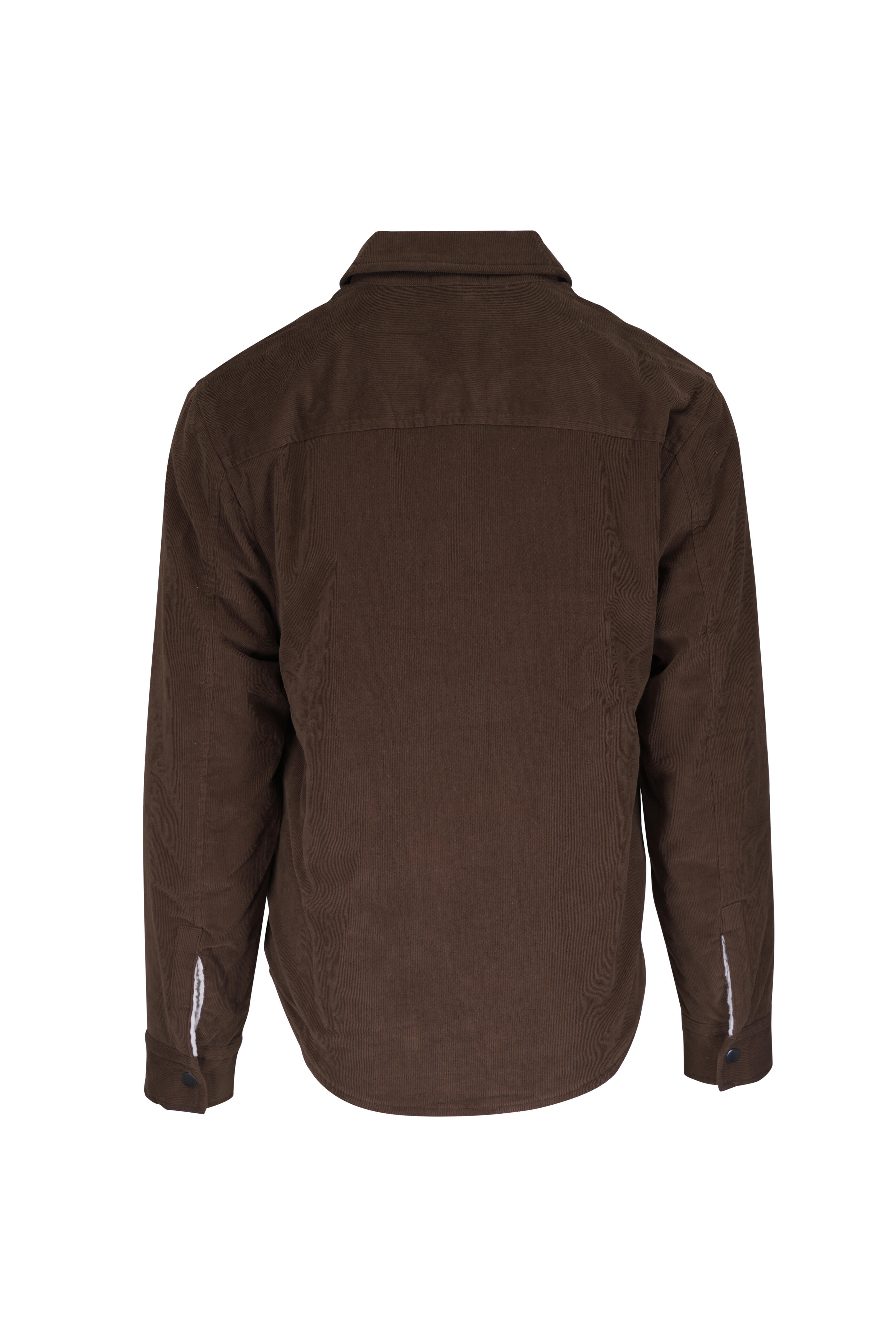 Pointed collar. Front button closure. Lower waist slip pockets; chest patch pocket. Single button square cuffs. Straight hem. Made in Italy. Shoulder to hem 28" (size m). 98% Cotton, 2% elastane; lined. Dry clean.