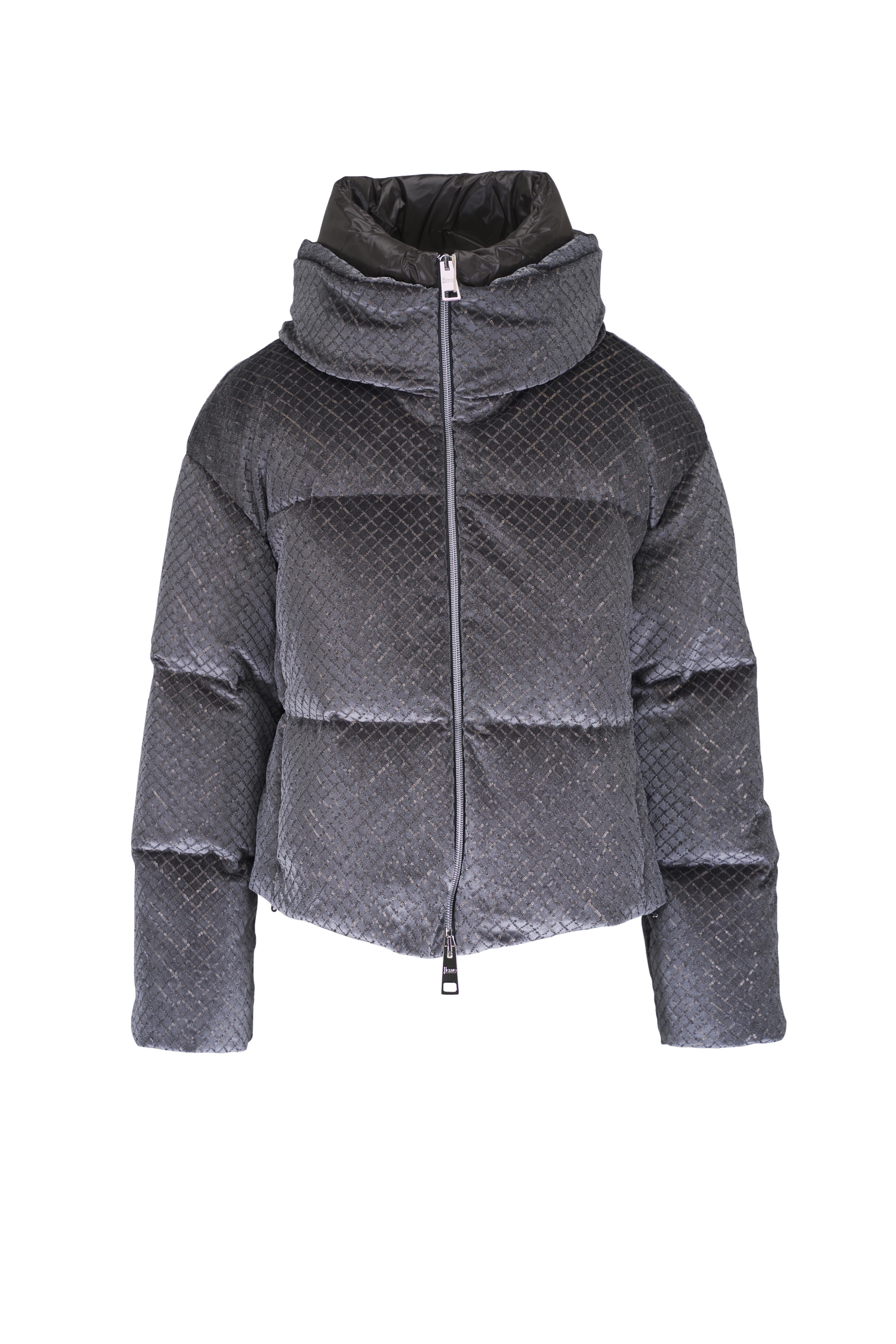 High stand collar. Two-way front zip. Side slip pockets. Drawstring hem. Imported. Classic fit. 100% polyamide; Fill: 80% goose down, 20% feathers. Hand wash.