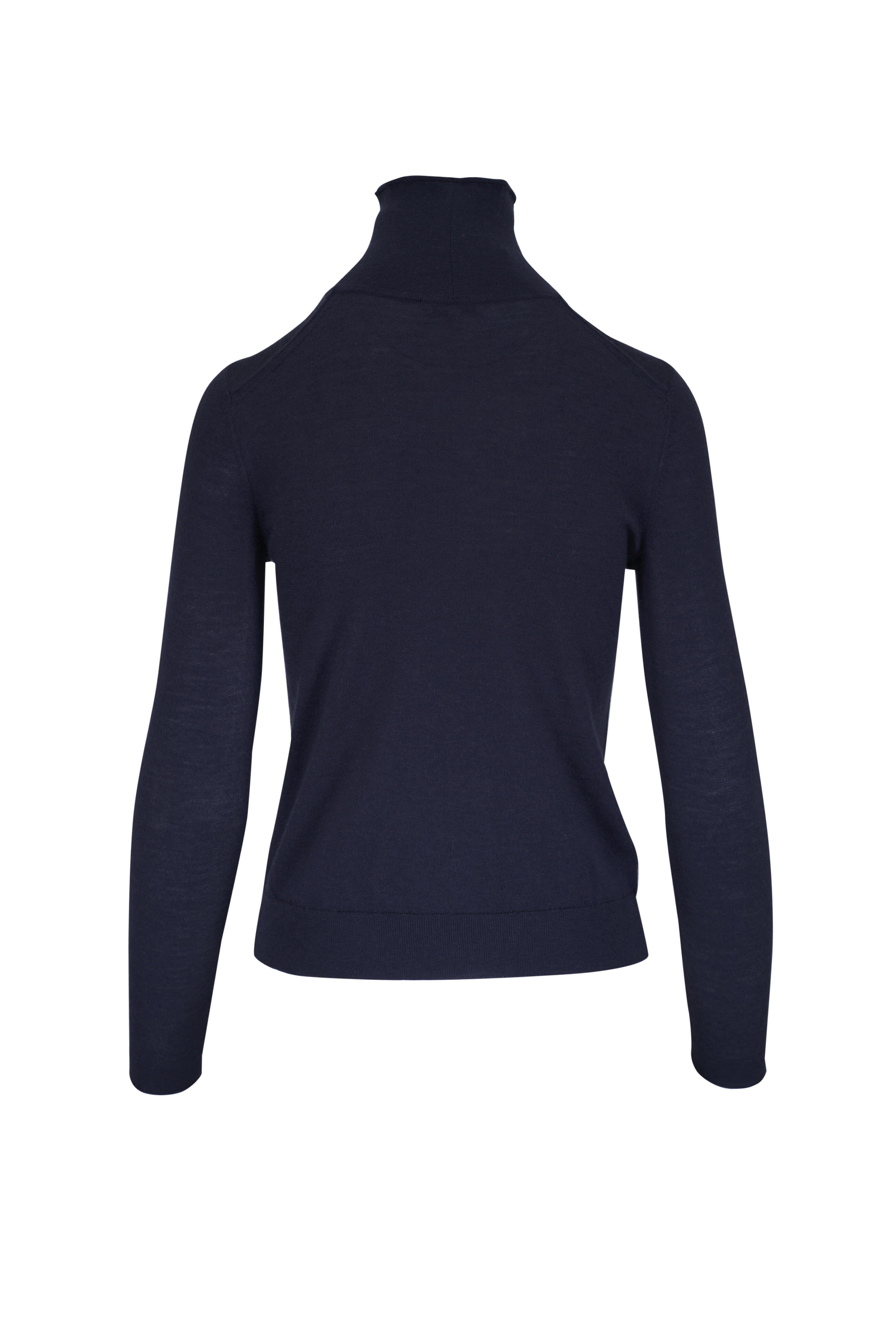 Stand collar. Ribbed trims. Imported. 100% cashmere. Dry clean.