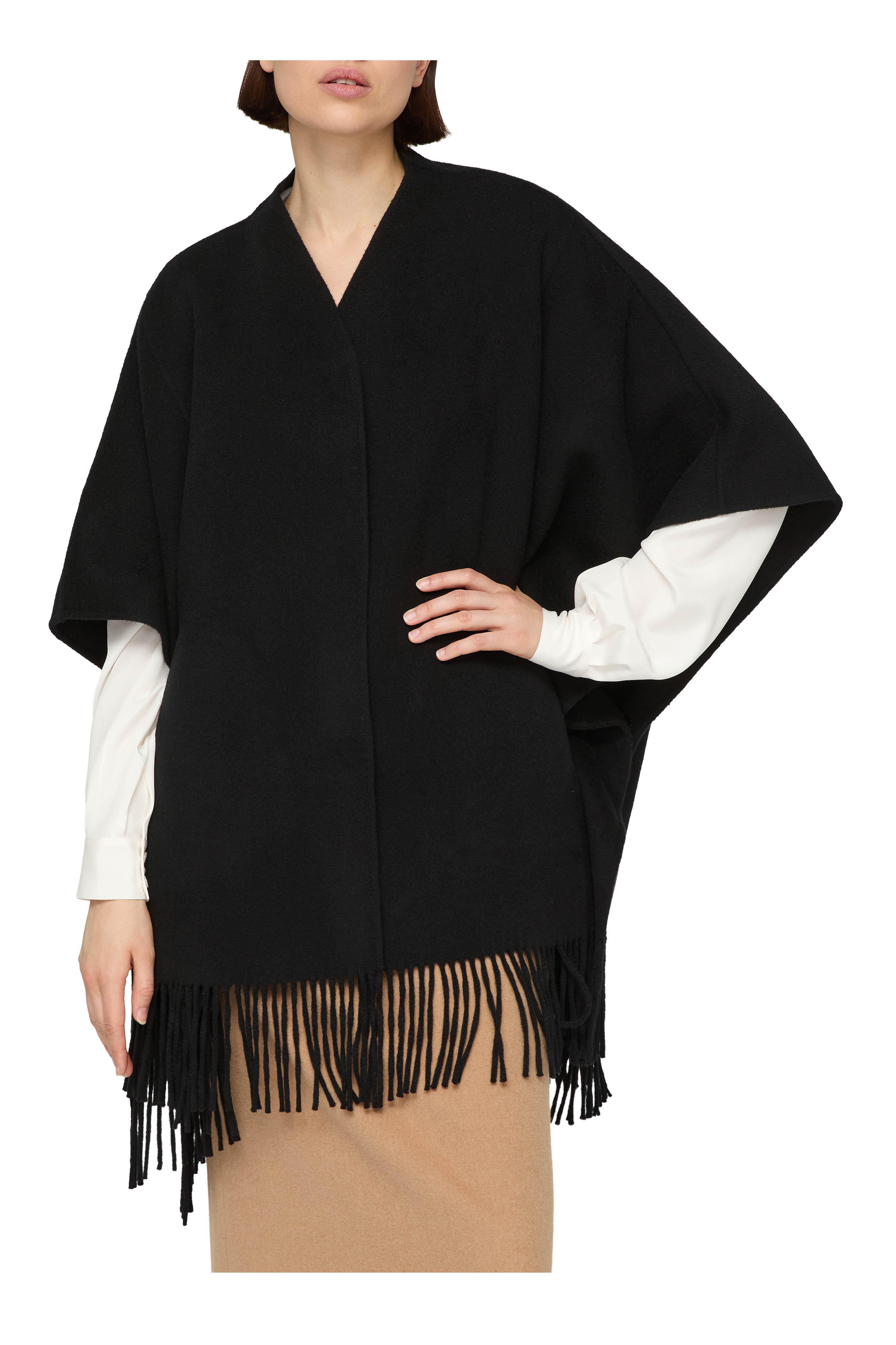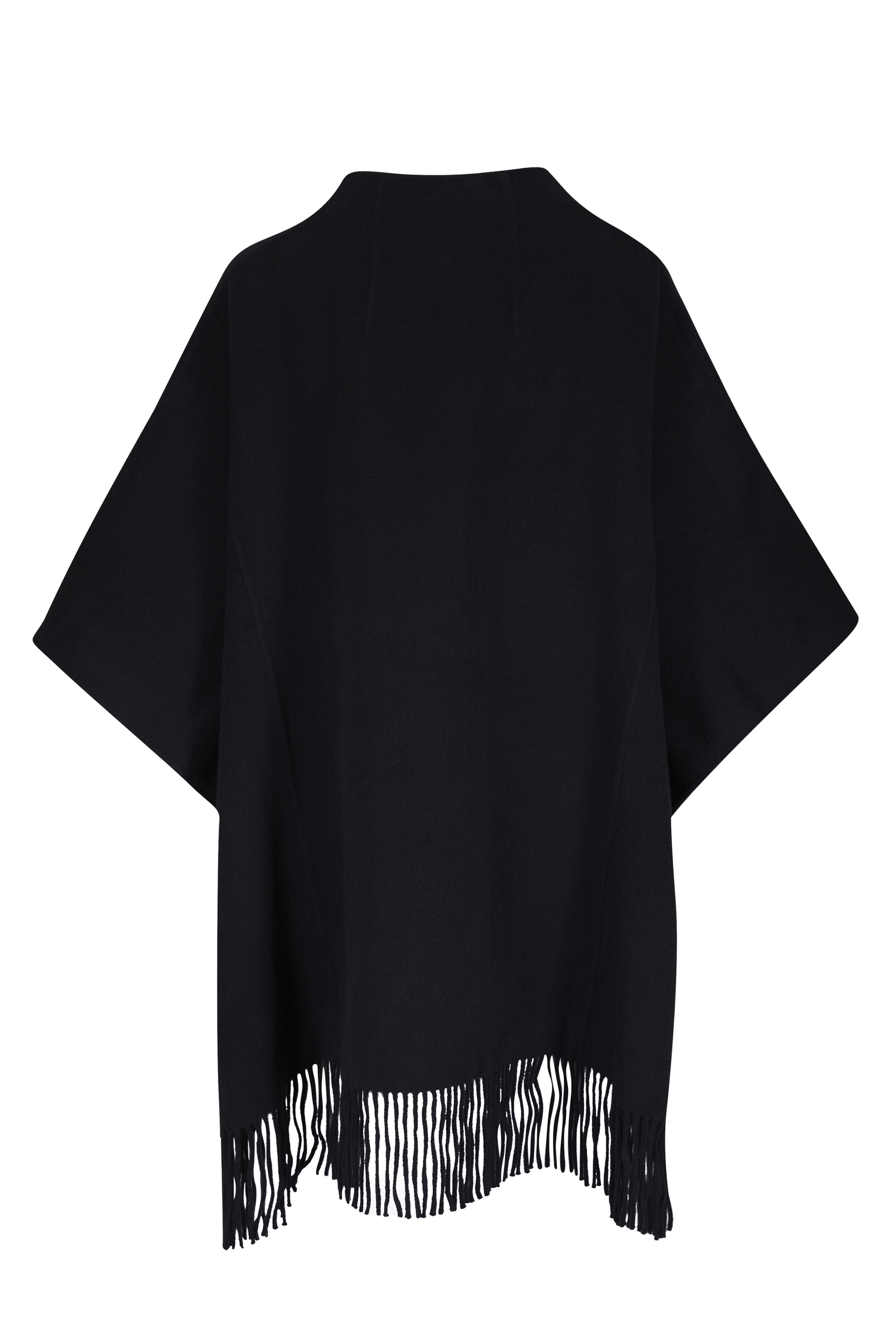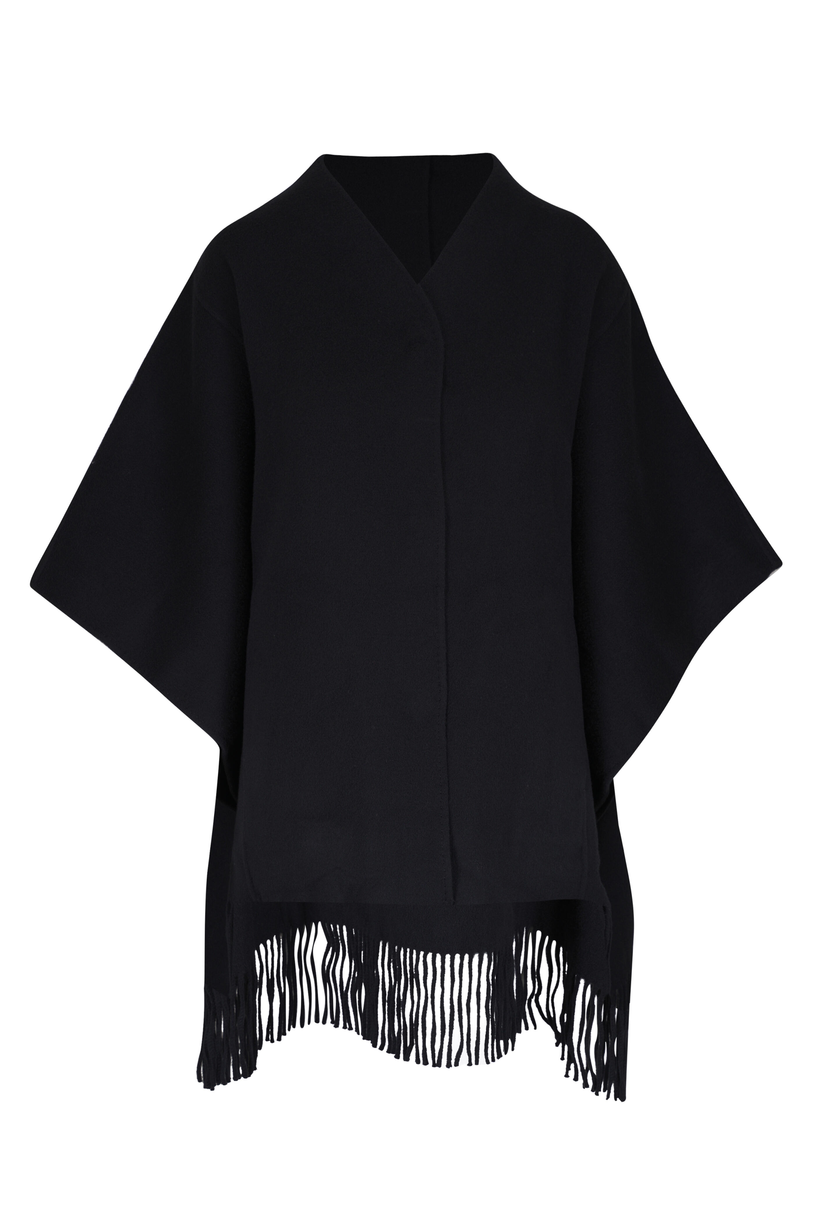 Black Wool & Cashmere Fringe Hem Cape