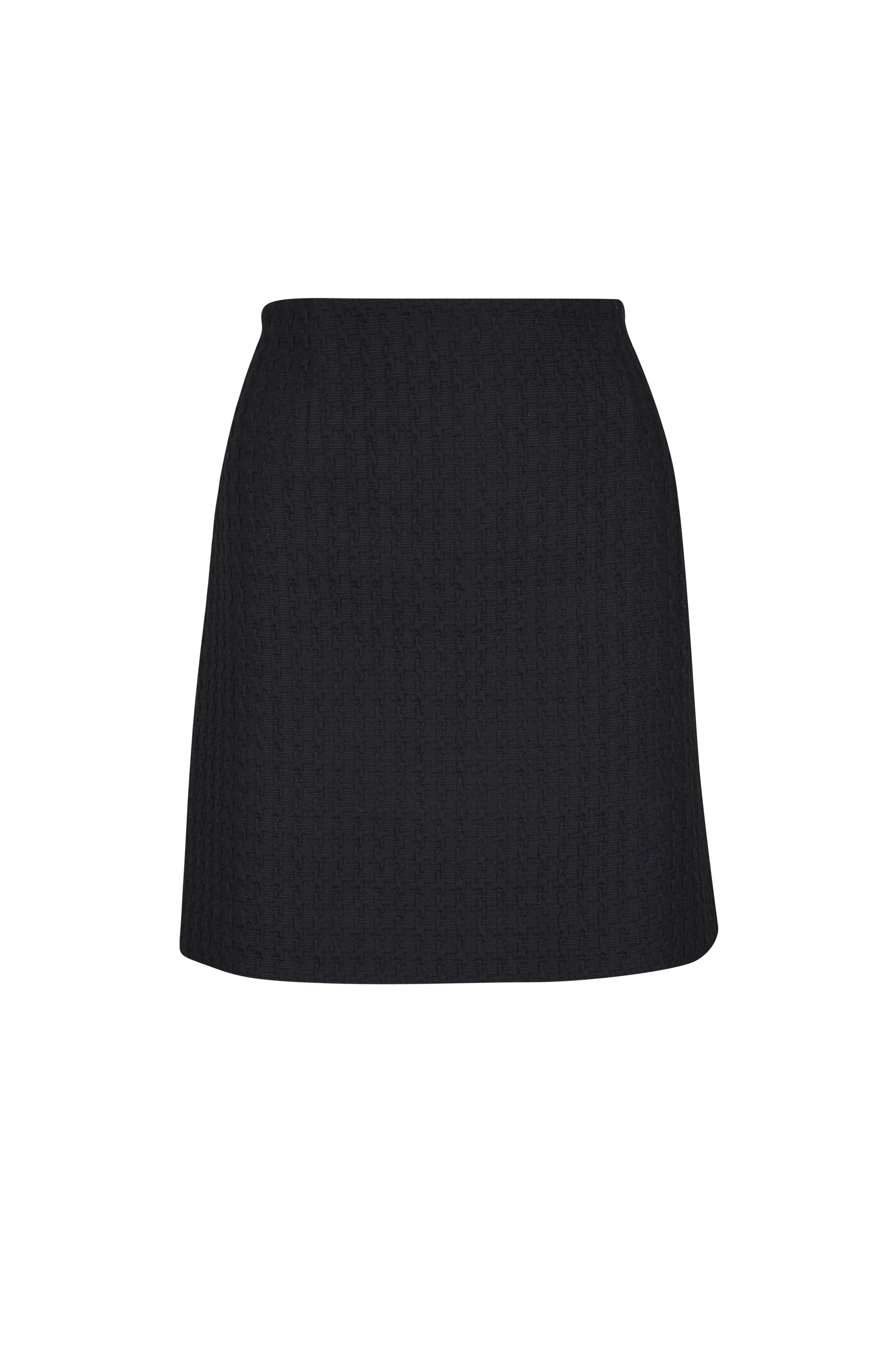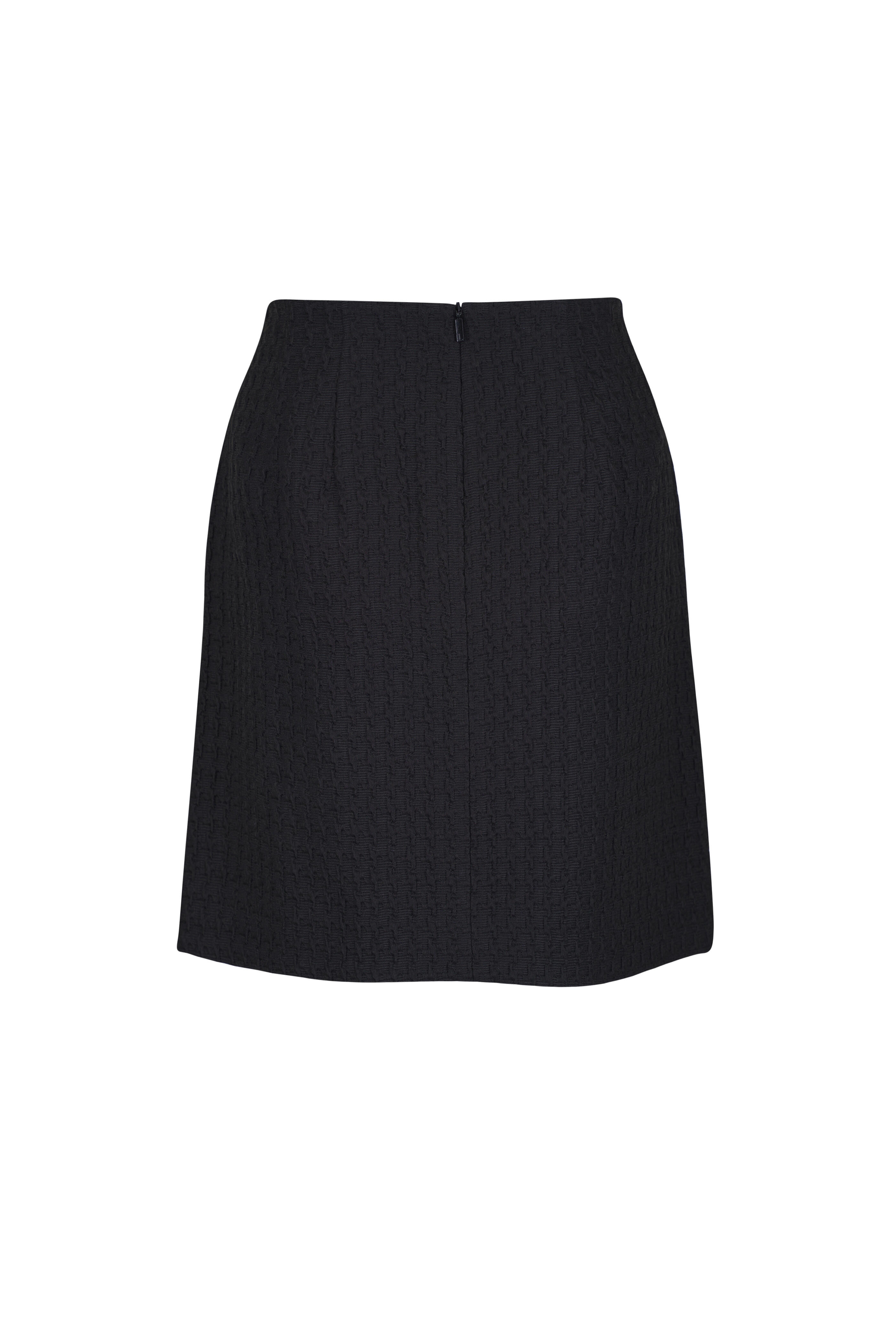 Concealed back zip. Pull-on style. Straight hem. Imported. Waist to hem 19" (size 6). 63% Wool, 23% viscose, 11% polyamide; lined. Dry clean.