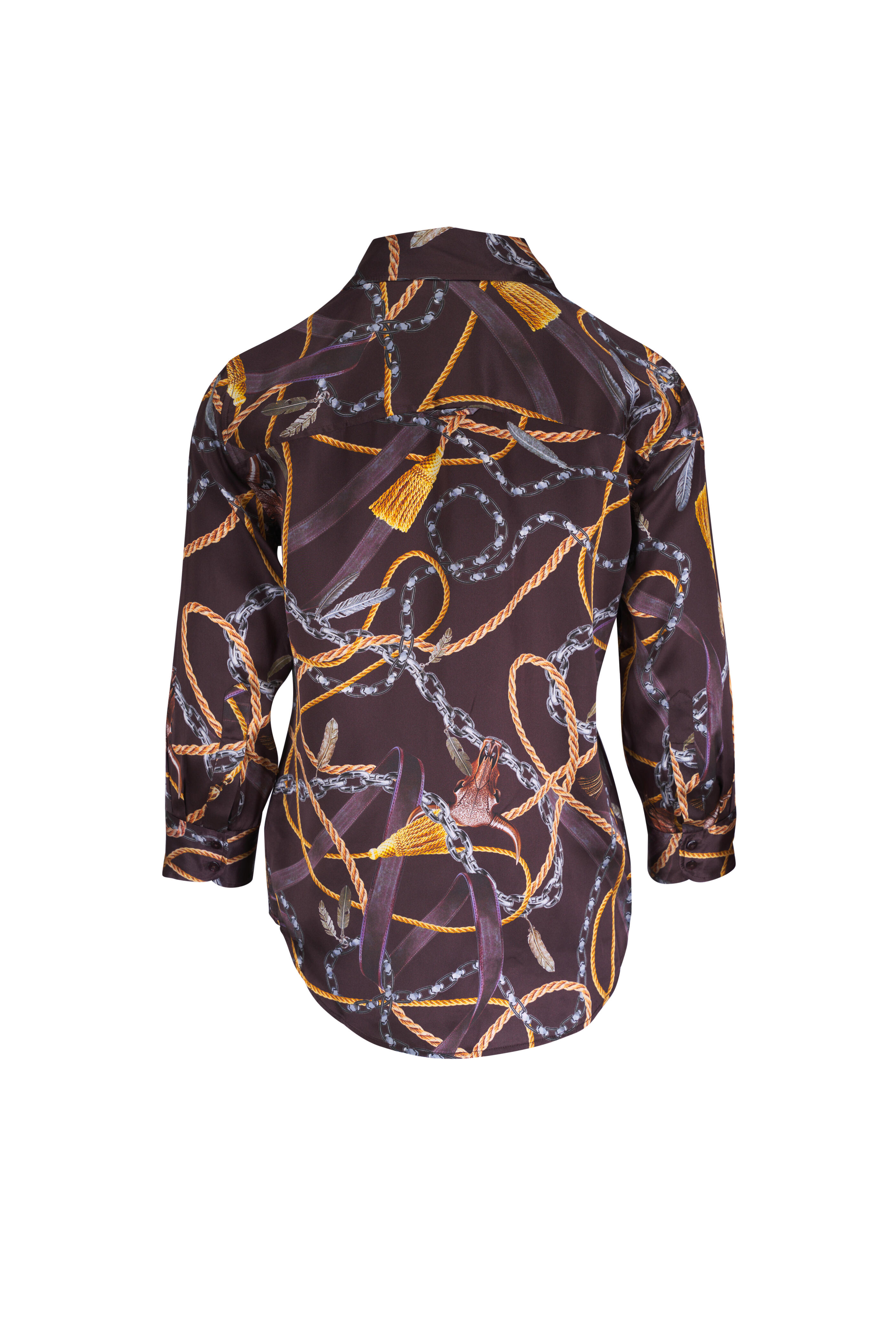 Dani Coffee Bean Multi Western Chain Silk Blouse