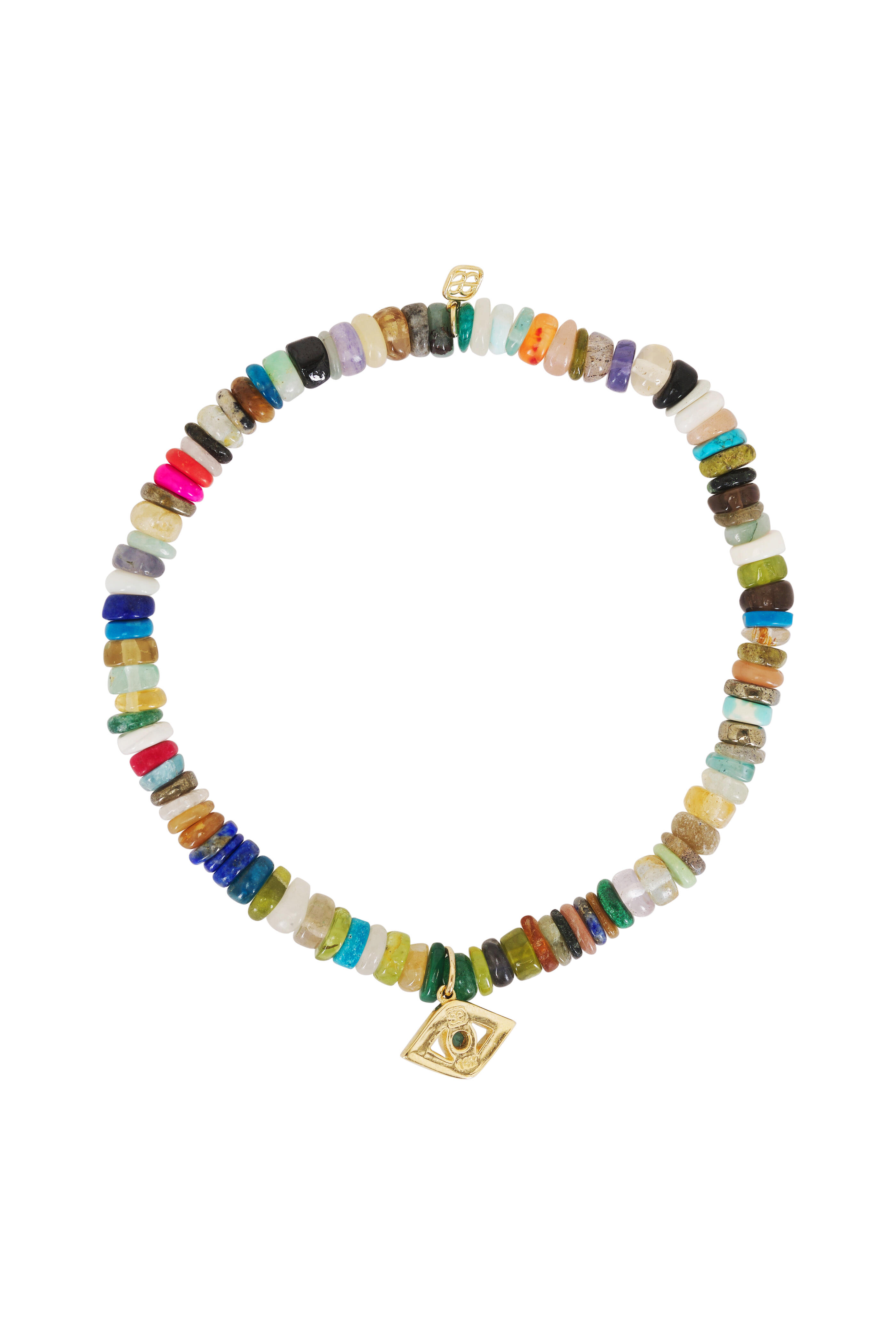 14k Yellow Gold Heishi Beaded Evil Eye Bracelet