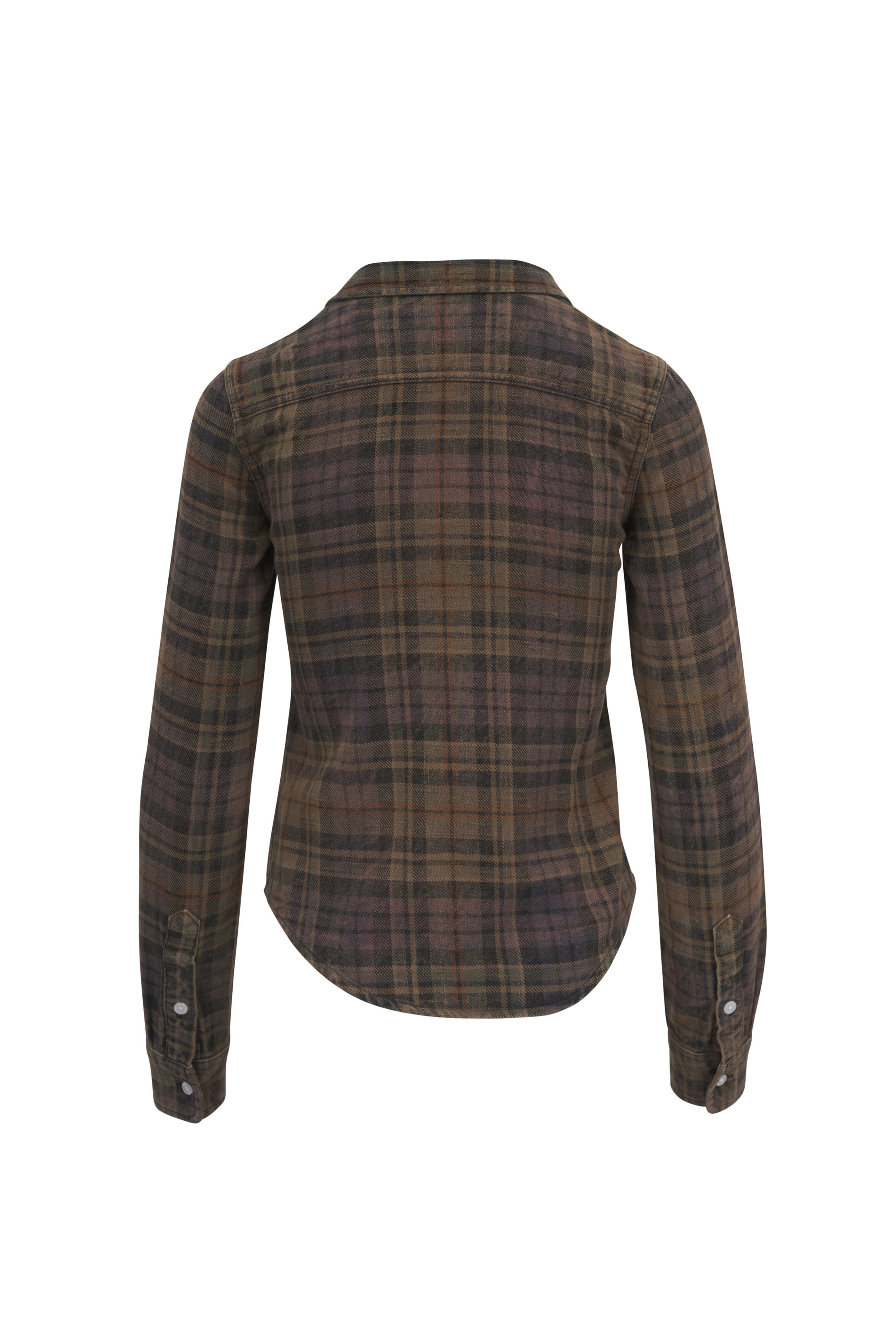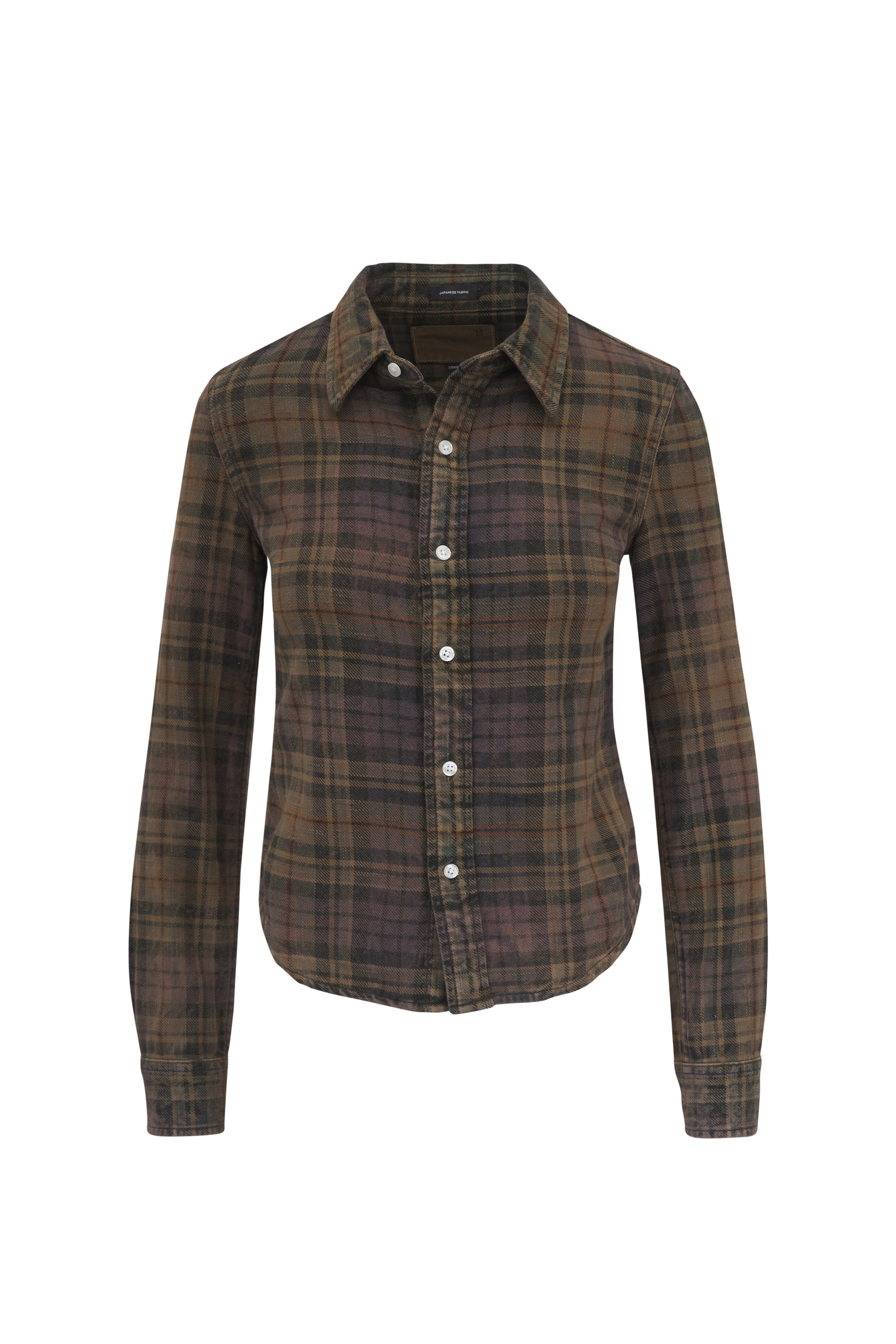 Point collar. Front button placket. Single button cuffs. Shirttail hem. Imported. Approximately 23" shoulder to hem (measurements taken from size XS). 100% cotton. Machine wash.