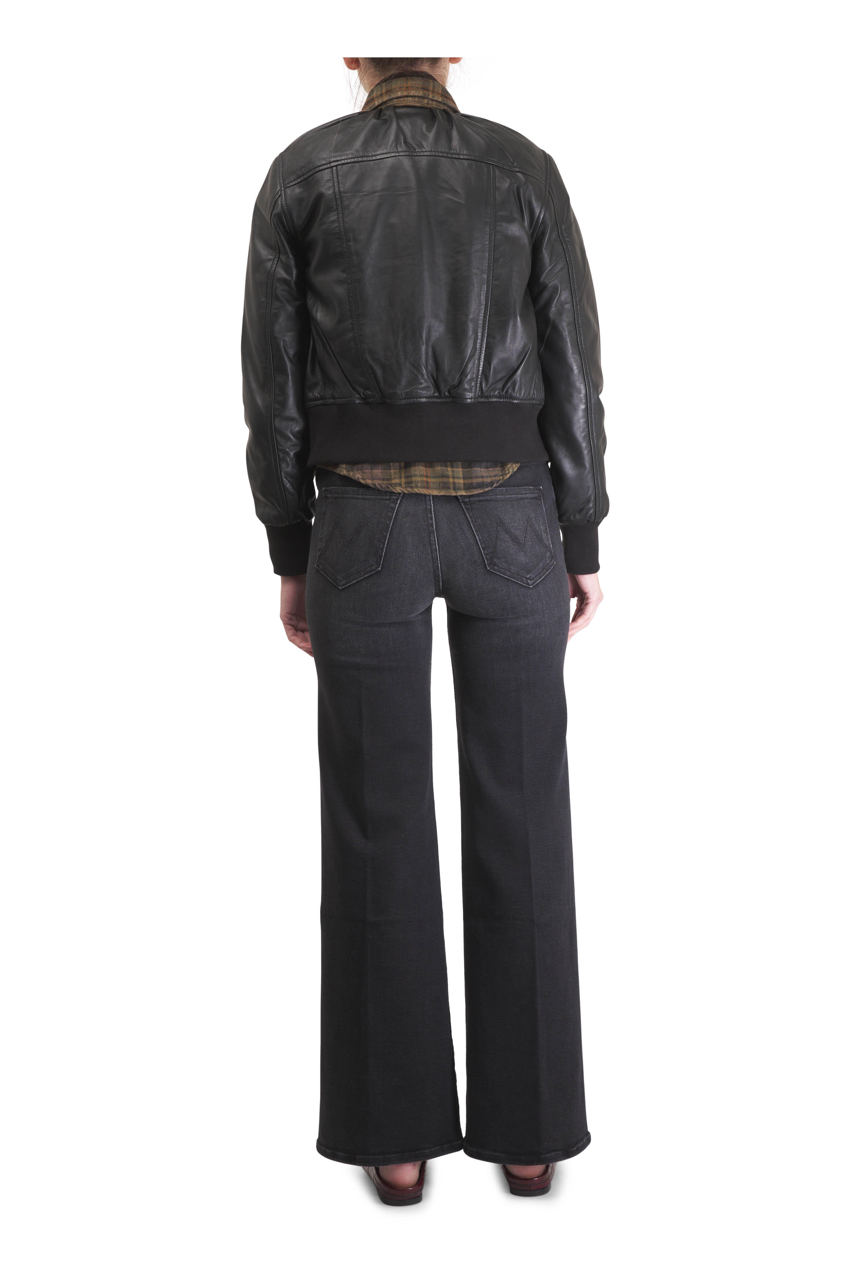 Specialist clean. Pleated round neckline. Front zip. Ribbed trim. Patch pockets. Imported. 100% sheep leather; lined.