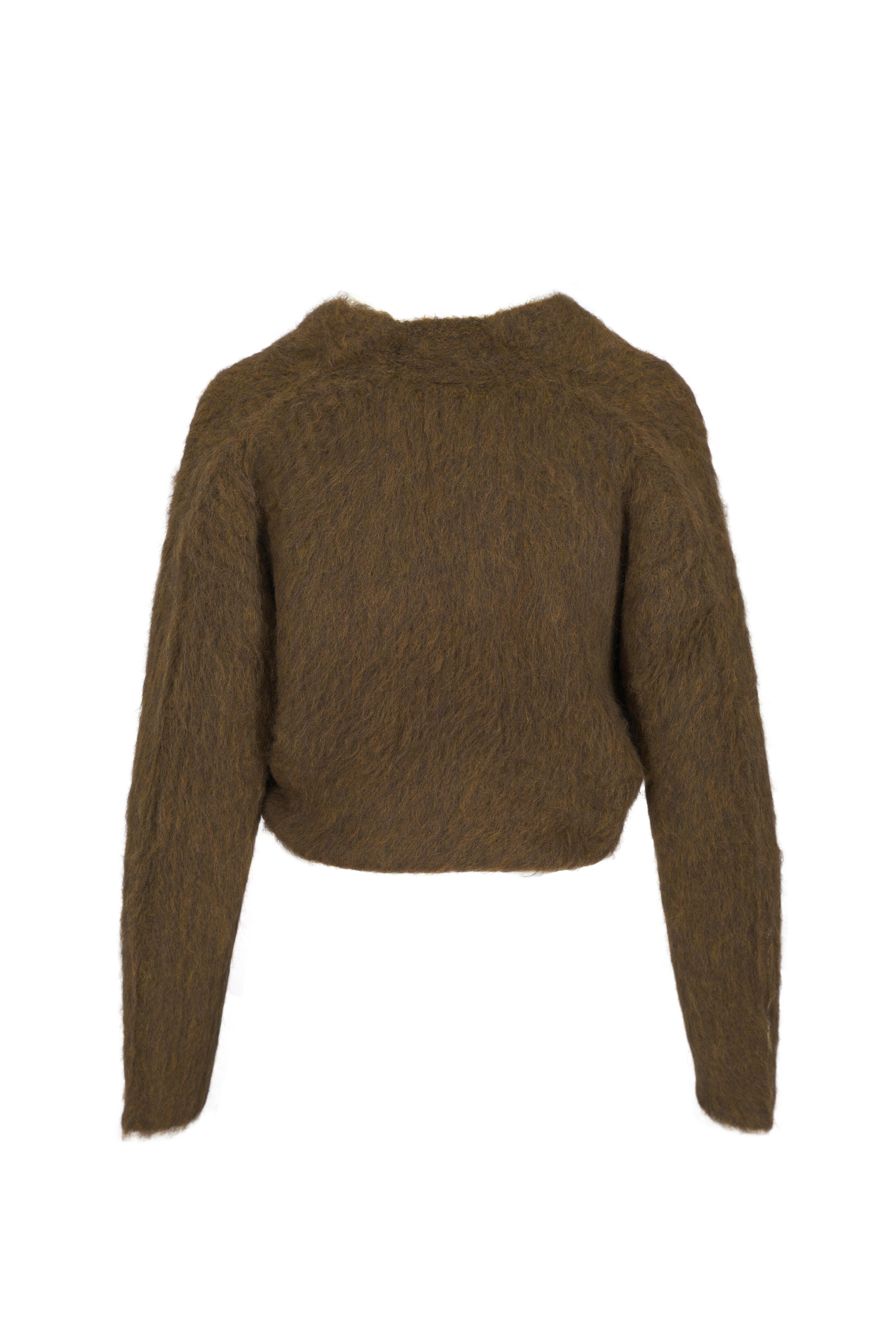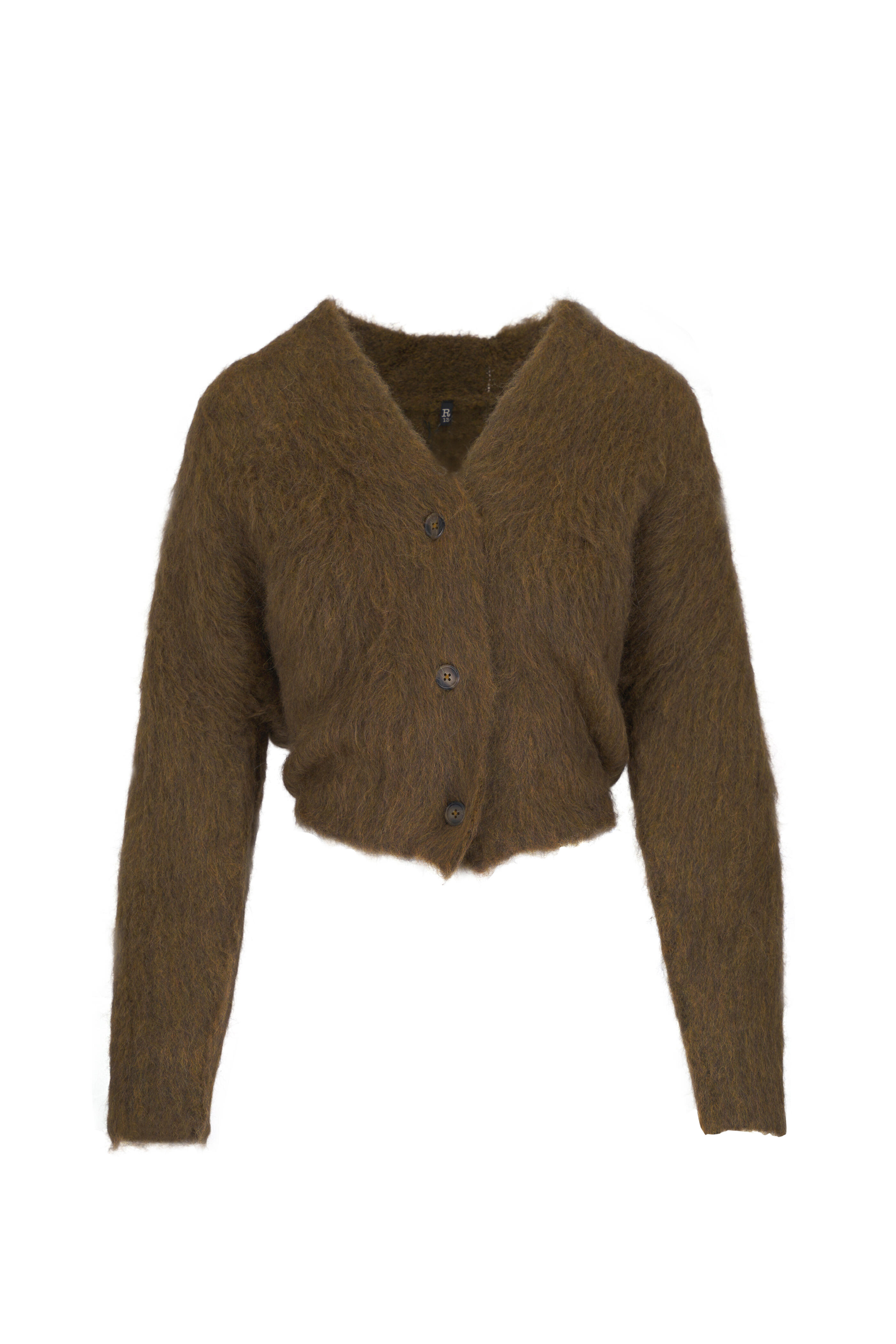 V-neckline. Front button placket. Drop shoulders. Imported. 64% alpaca, 27% wool, 9% recycled polyamide. Dry clean.