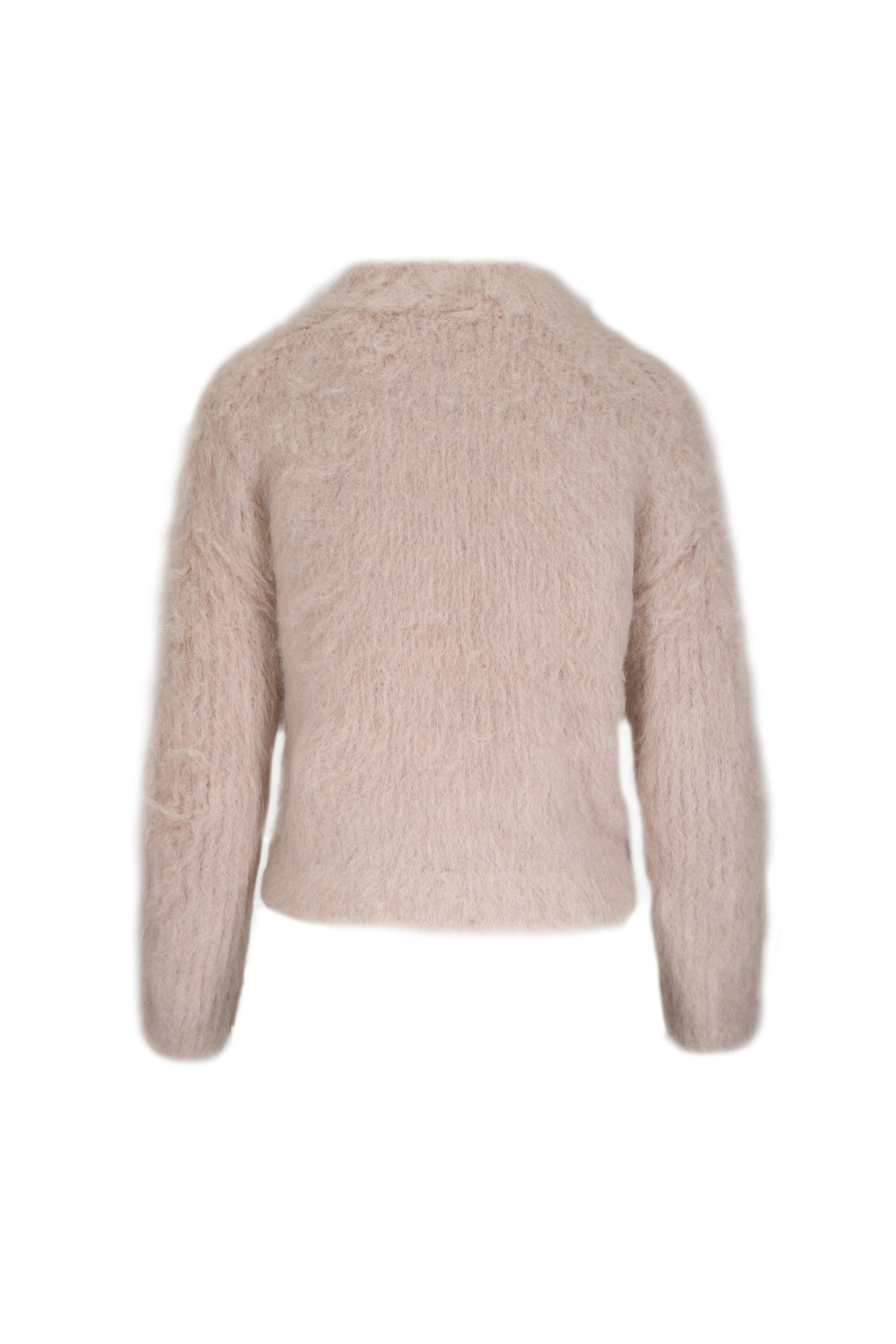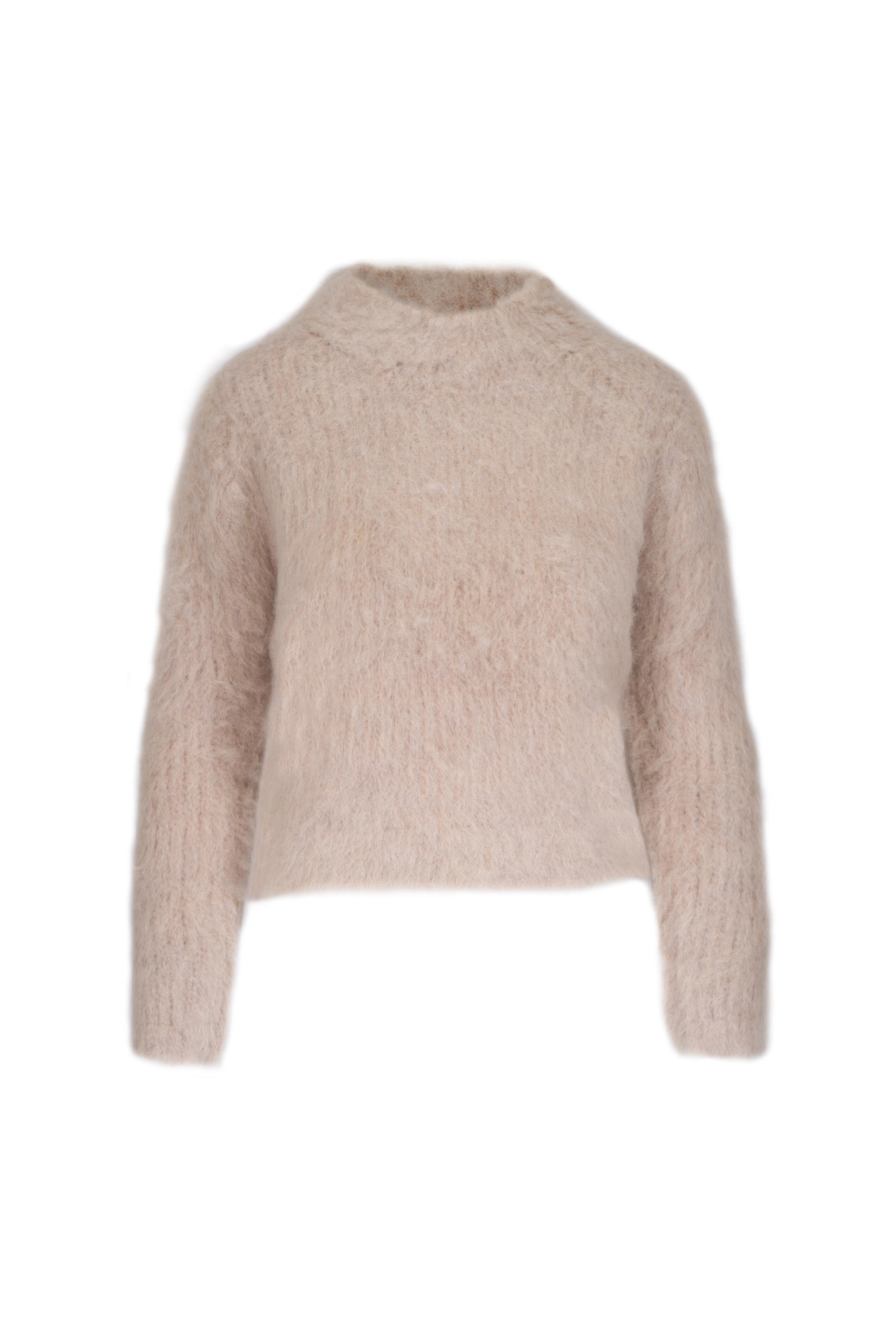 Mock neckline. Drop shoulders. Imported. 64% alpaca, 27% wool, 9% recycled polyamide. Dry clean.