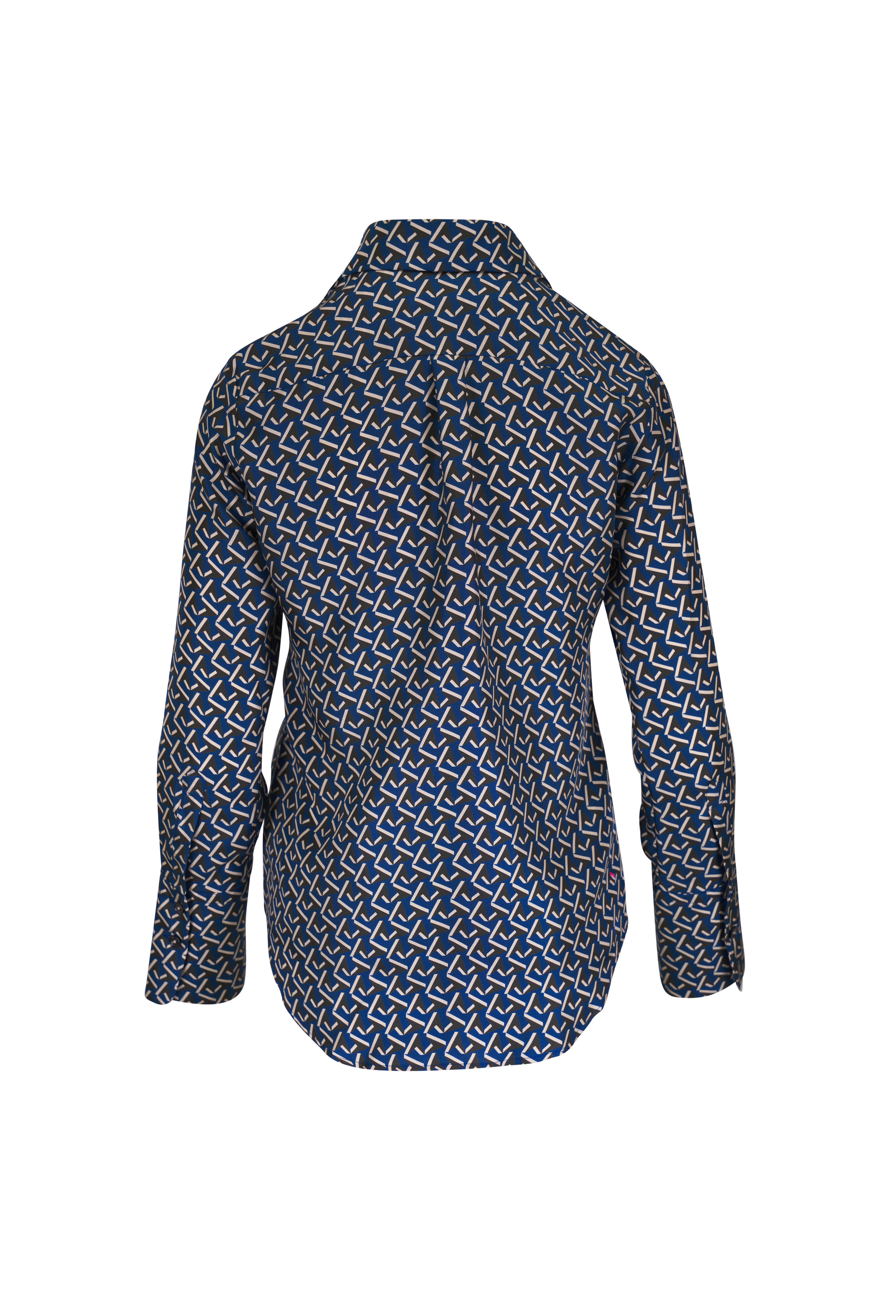 Spread collar. Front button placket. Two button cuffs. Shirttail hem. Imported. Approximately 24" shoulder to hem (measurements taken from size 4). 100% silk. Dry clean.