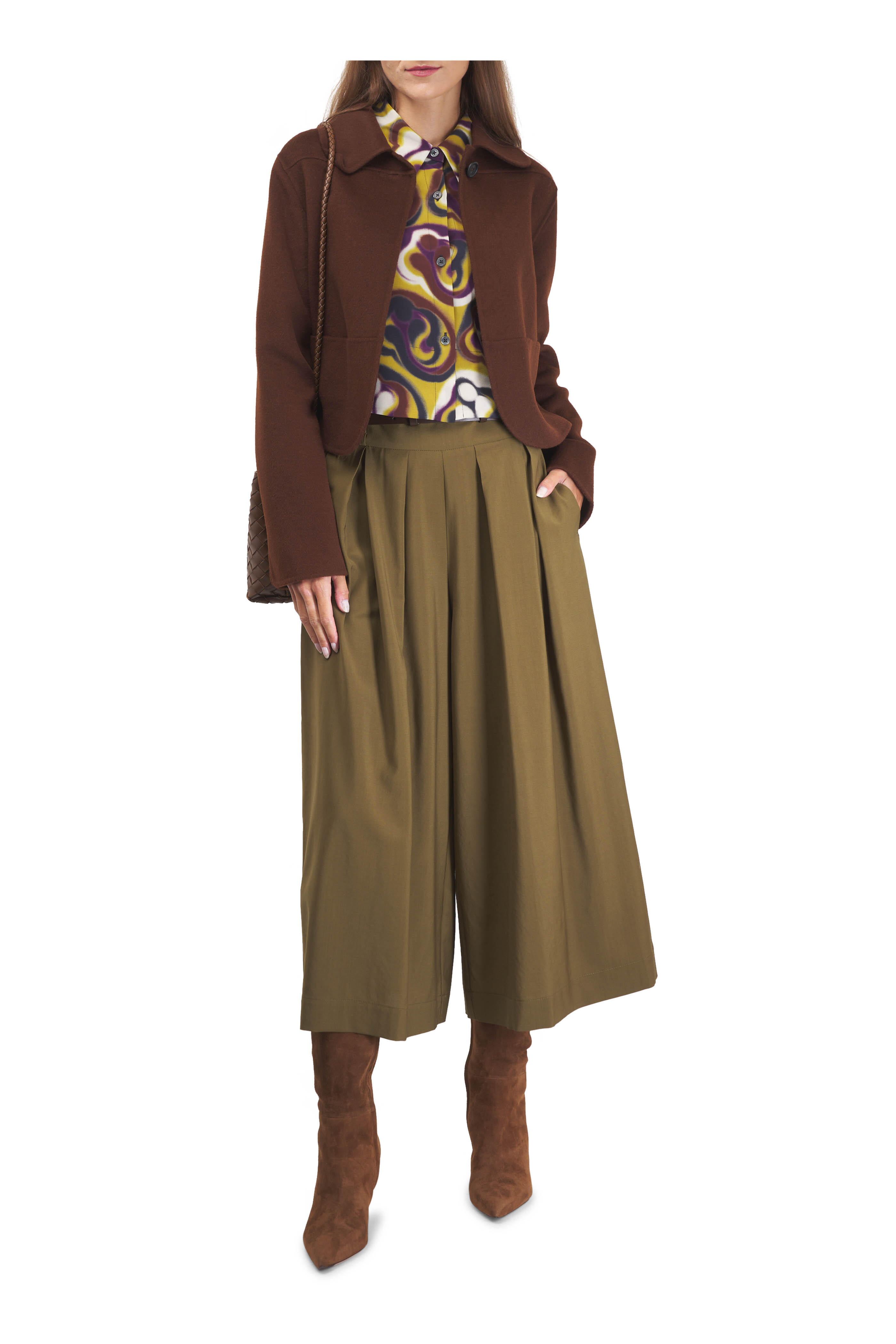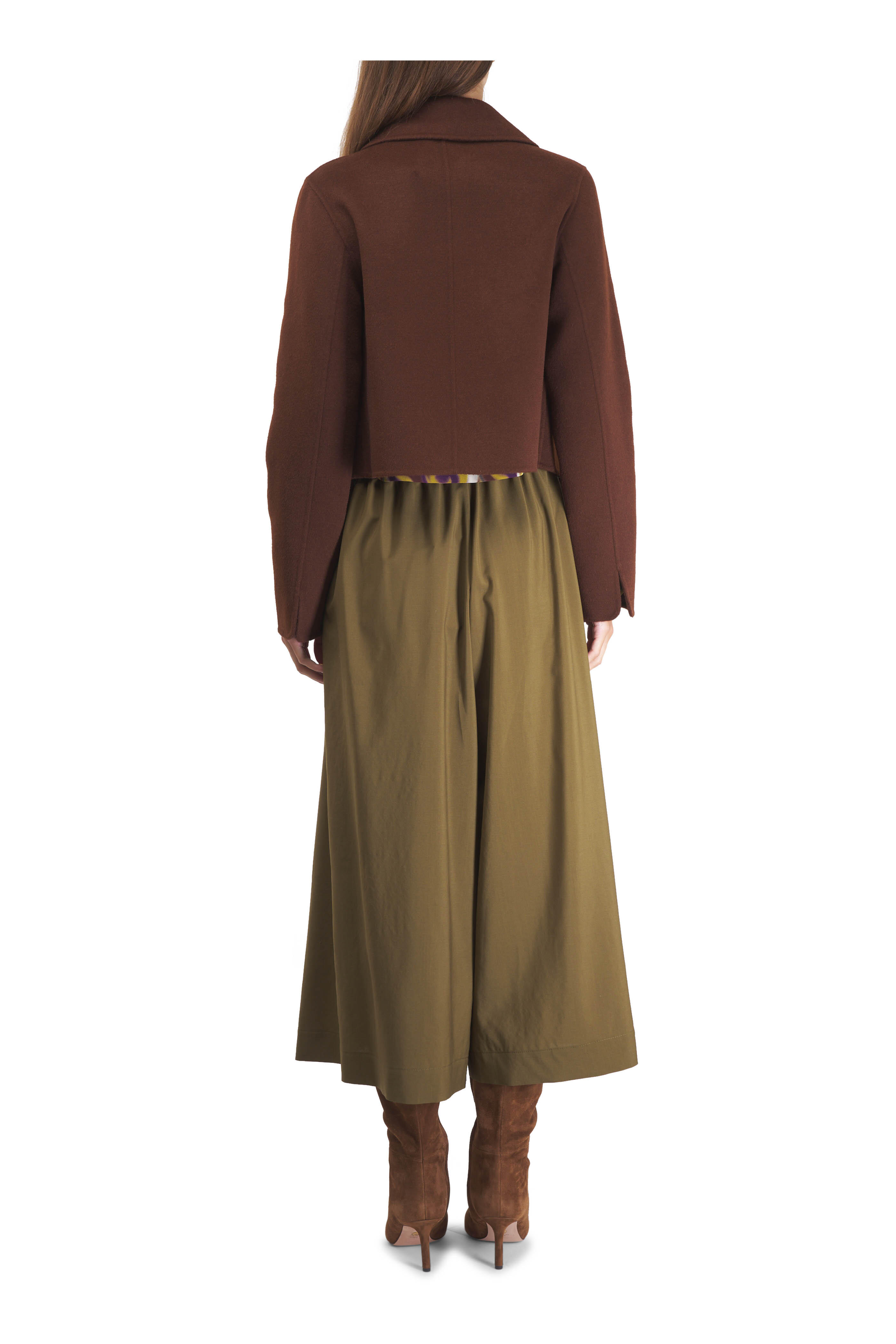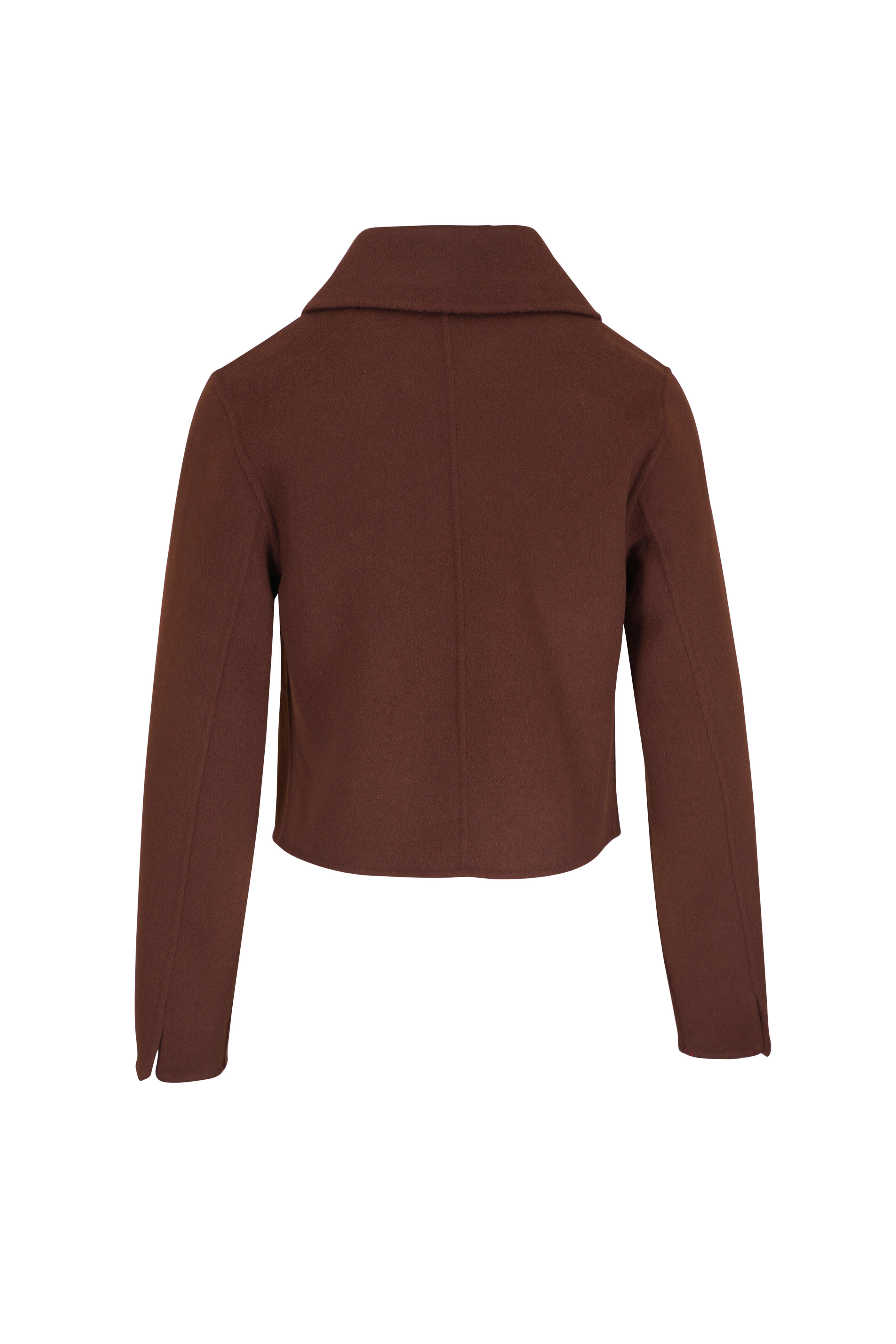 Spread collar. Front button placket. Front slip pockets. Imported. 80% virgin wool, 20% cashmere. Dry clean.
