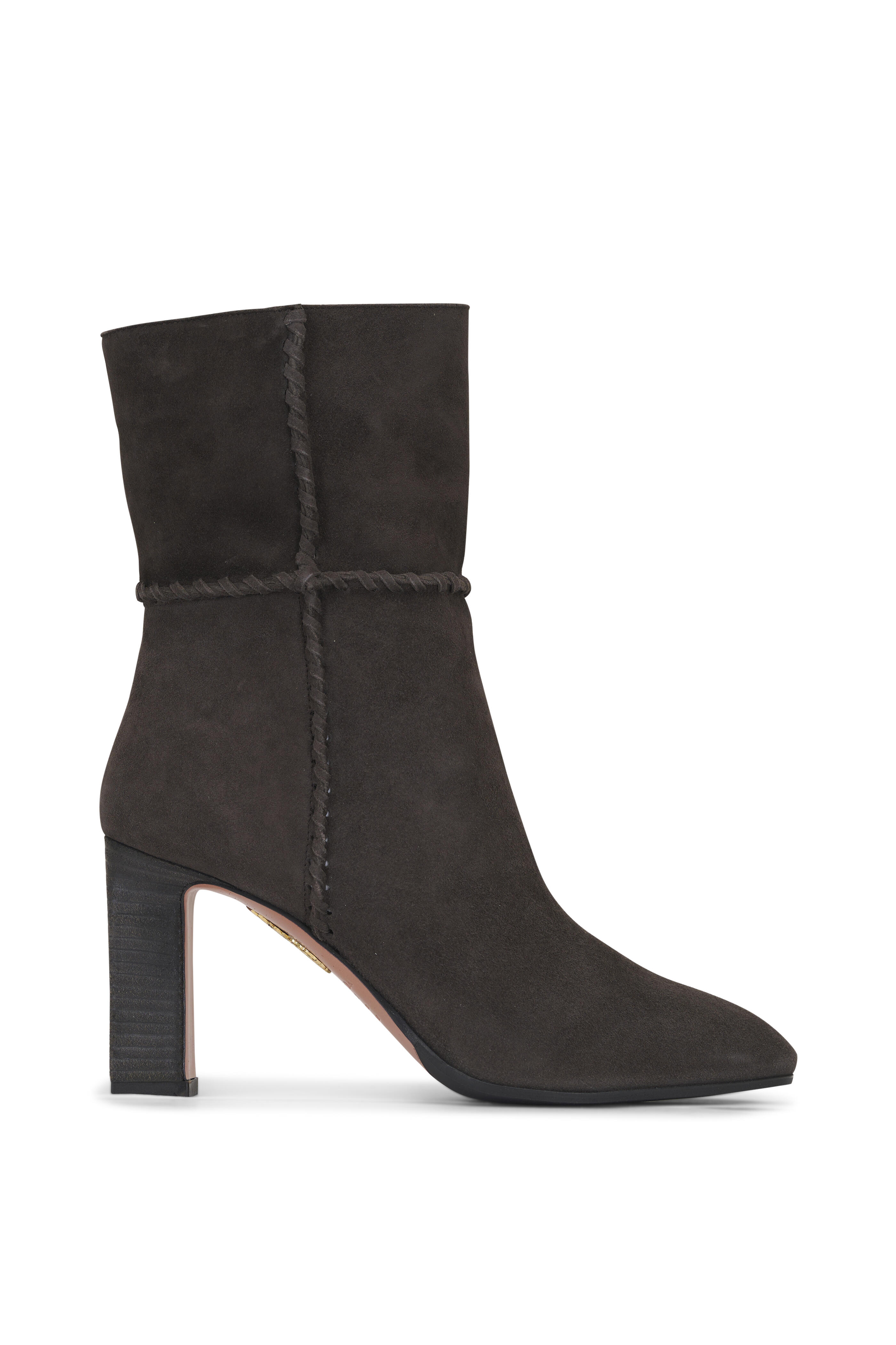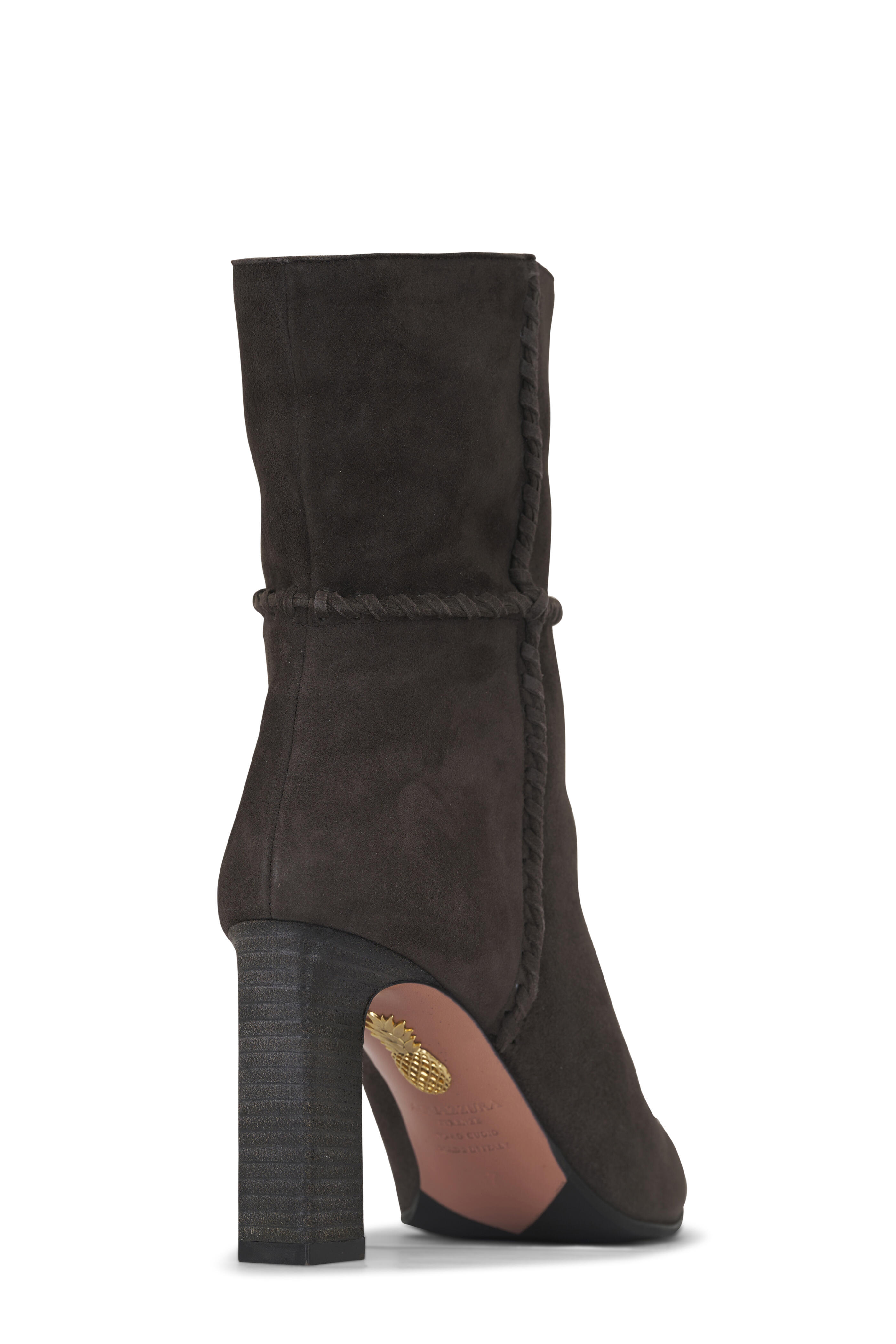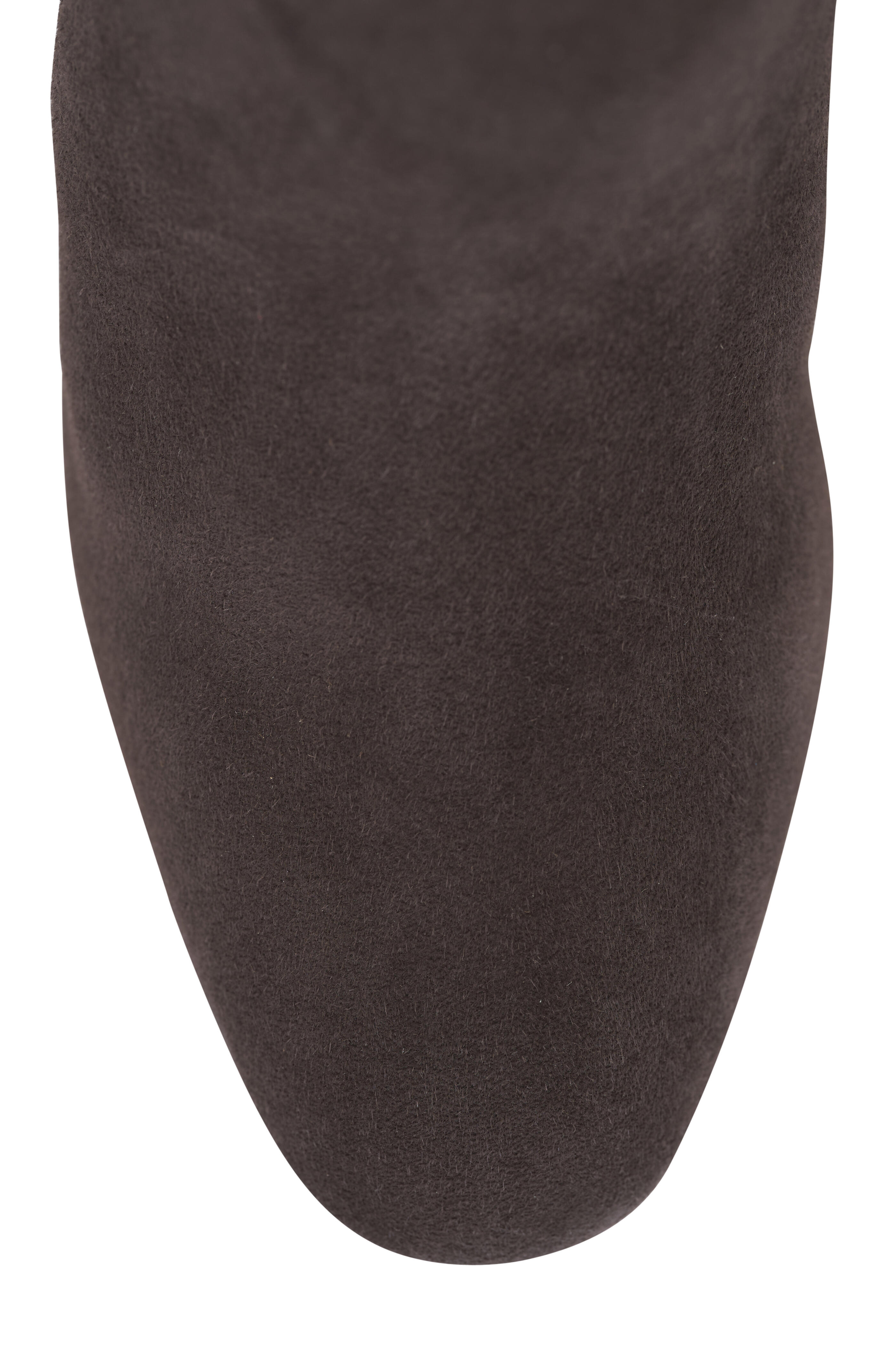 Gray suede. Closed almond-shaped toe. Back zipper closure. Lined with leather and includes a leather insole. Finished with a leather sole. Made in Italy. Heel measurment: 85mm.