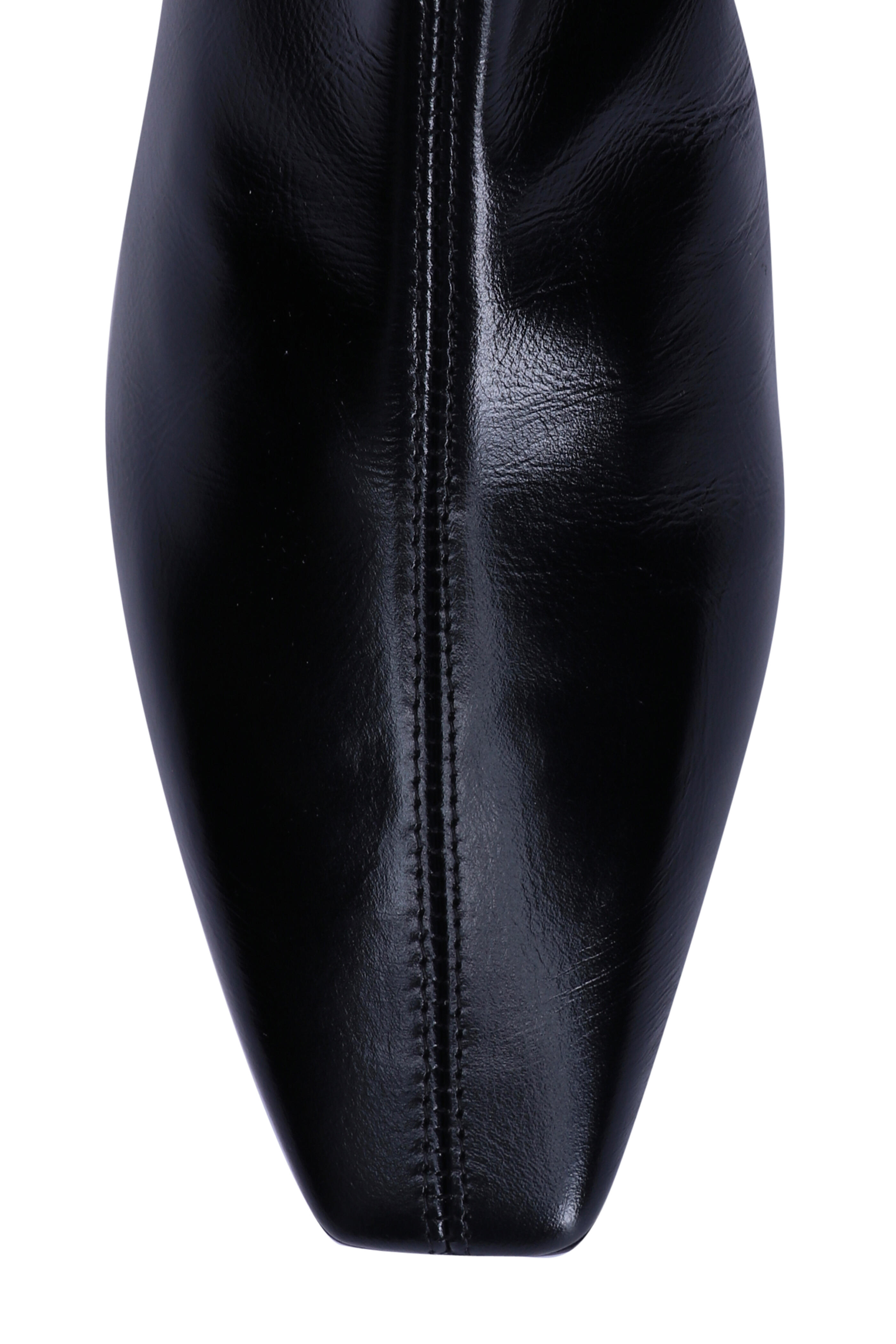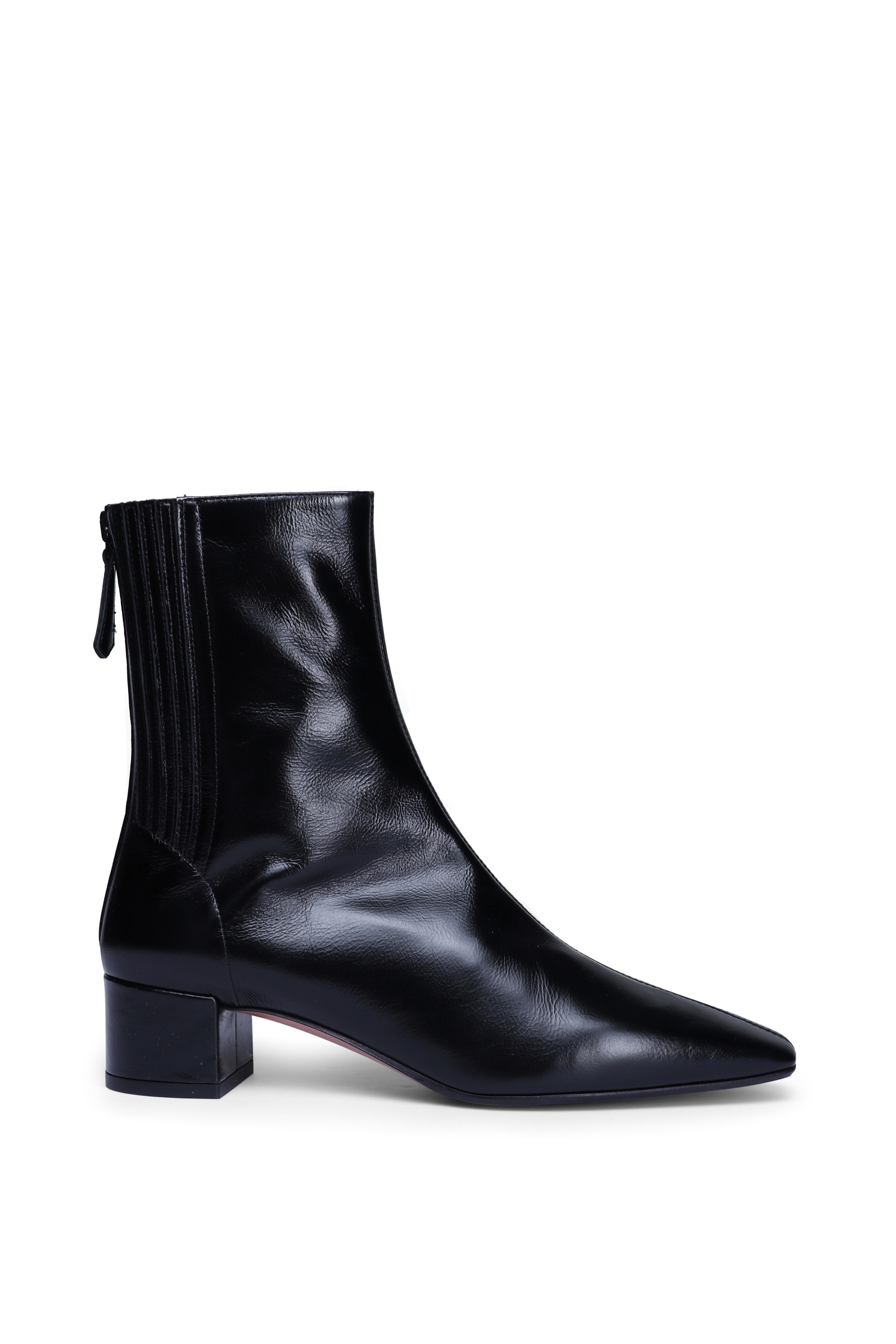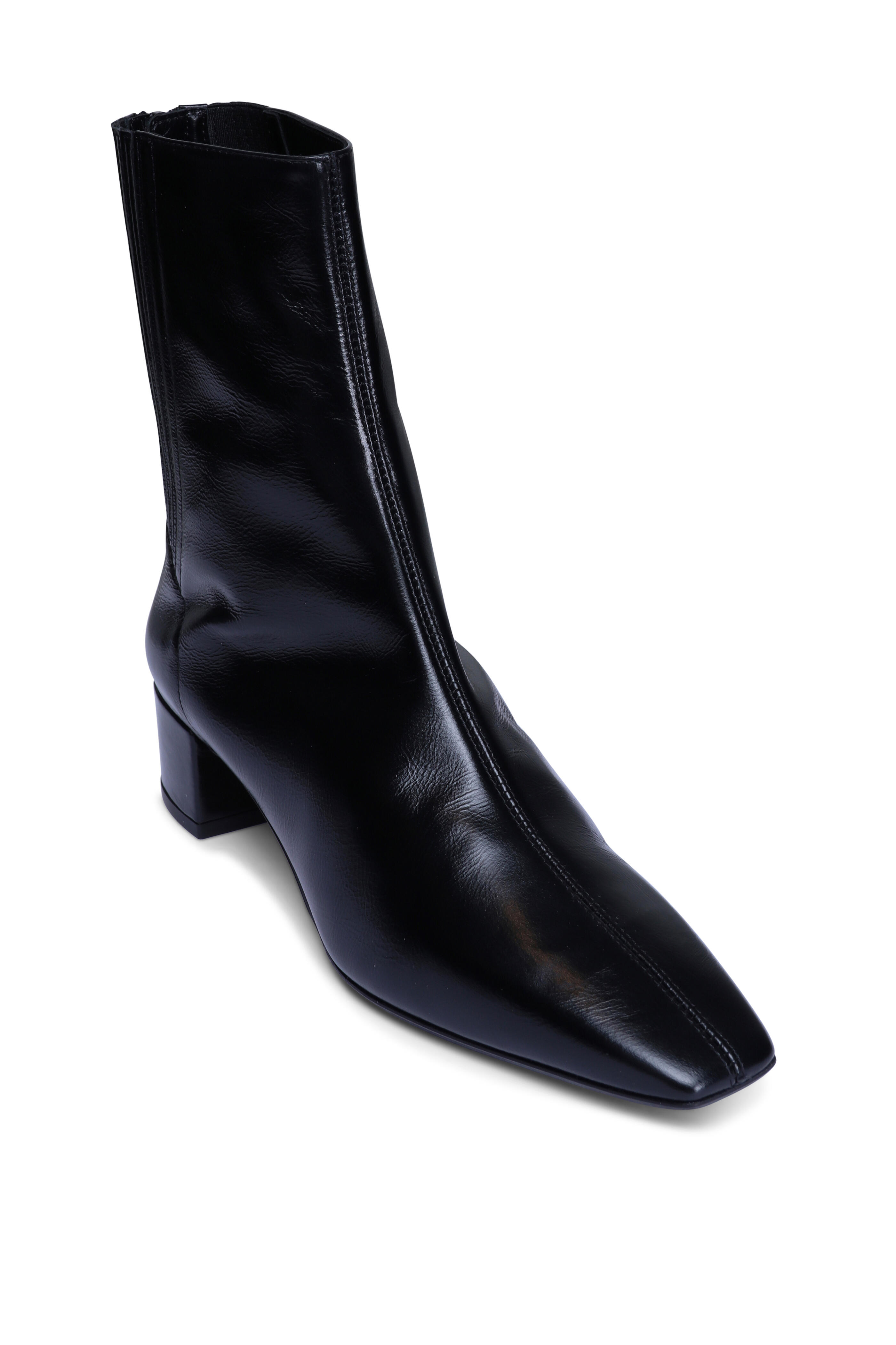 Nappa shine leather upper. Leather lining. Leather and rubber sole. Square pointed toe. Side zip closure. Concealed elastic back. Block heel. Made in Italy. Heel measurement: 35mm.