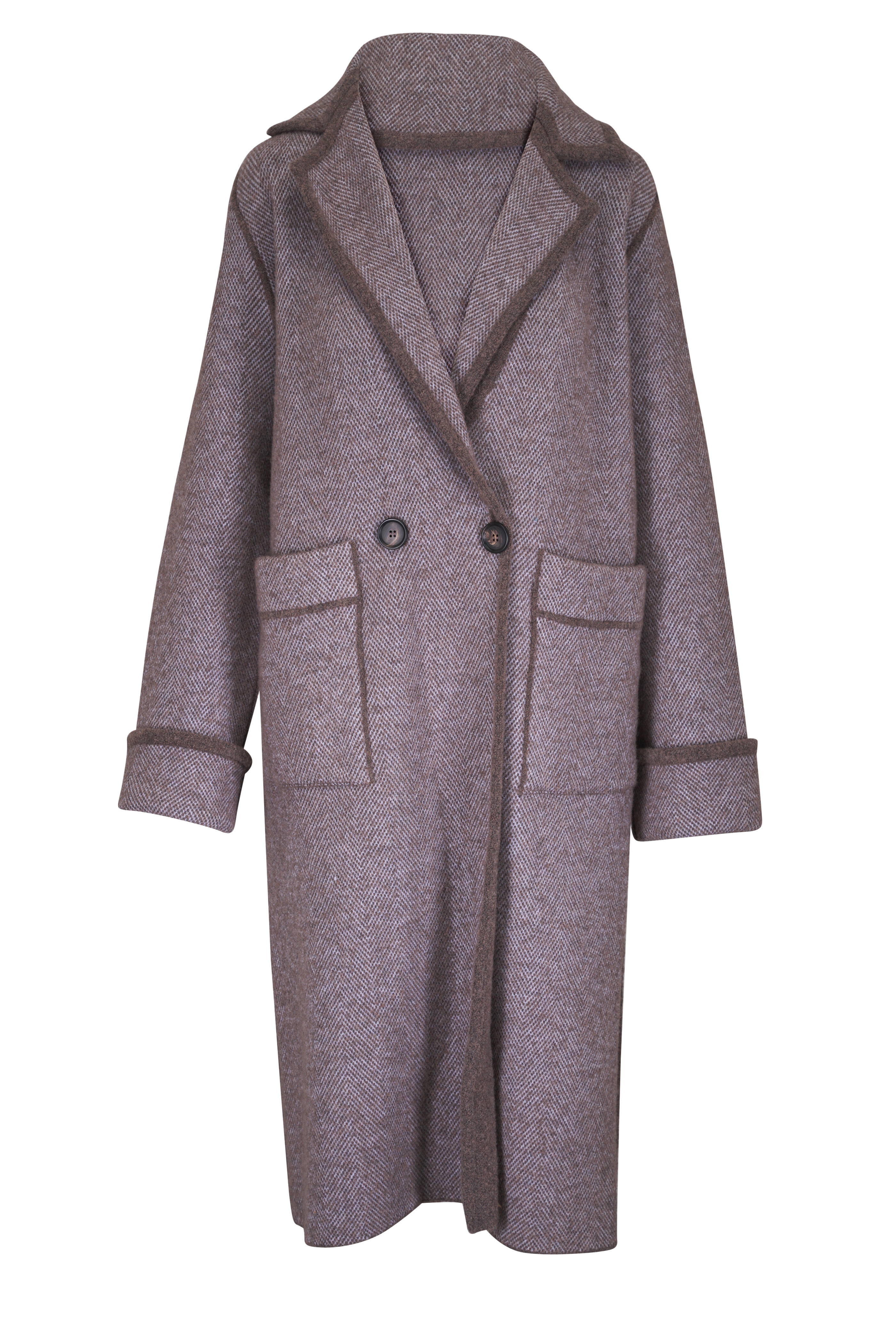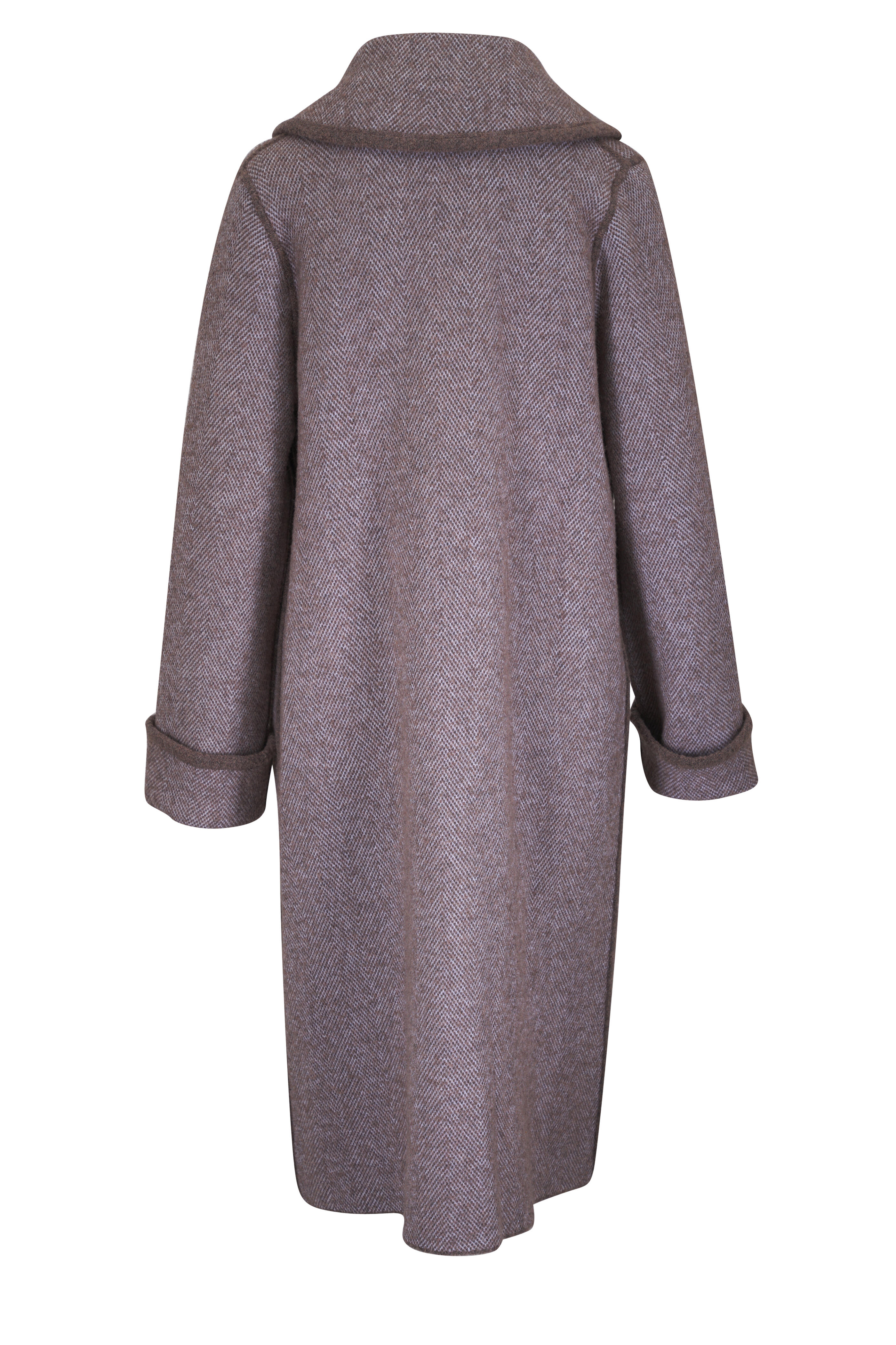 Notched lapel collar. Double breasted button closure. Lower patch pockets. Reversible. Made in Italy. Approximately 43" shoulder to hem (measurements taken from size M). 77% wool, 15% cotton, 6% polyamide, 2% polyester. Dry clean.