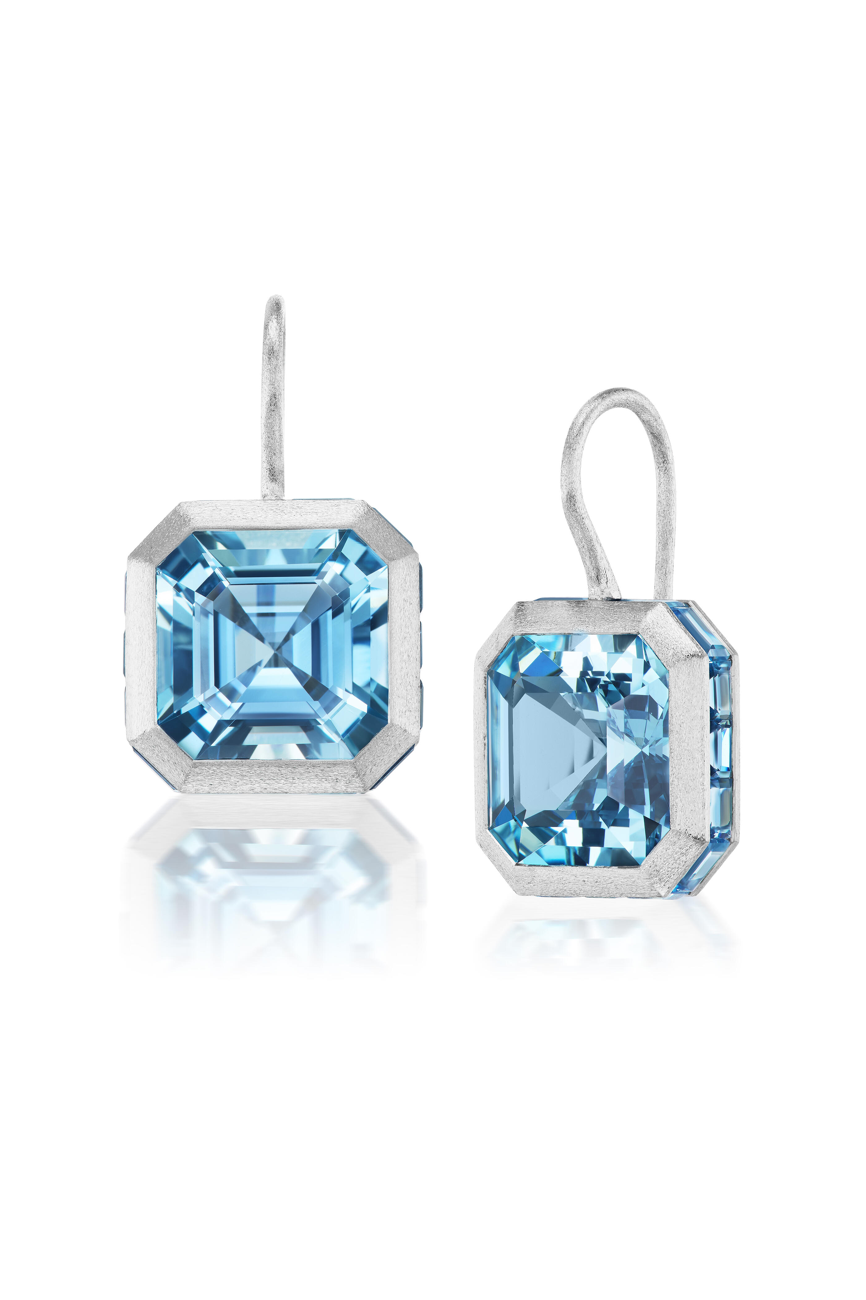 18k White Gold Bezel Drop Wire Earrings
