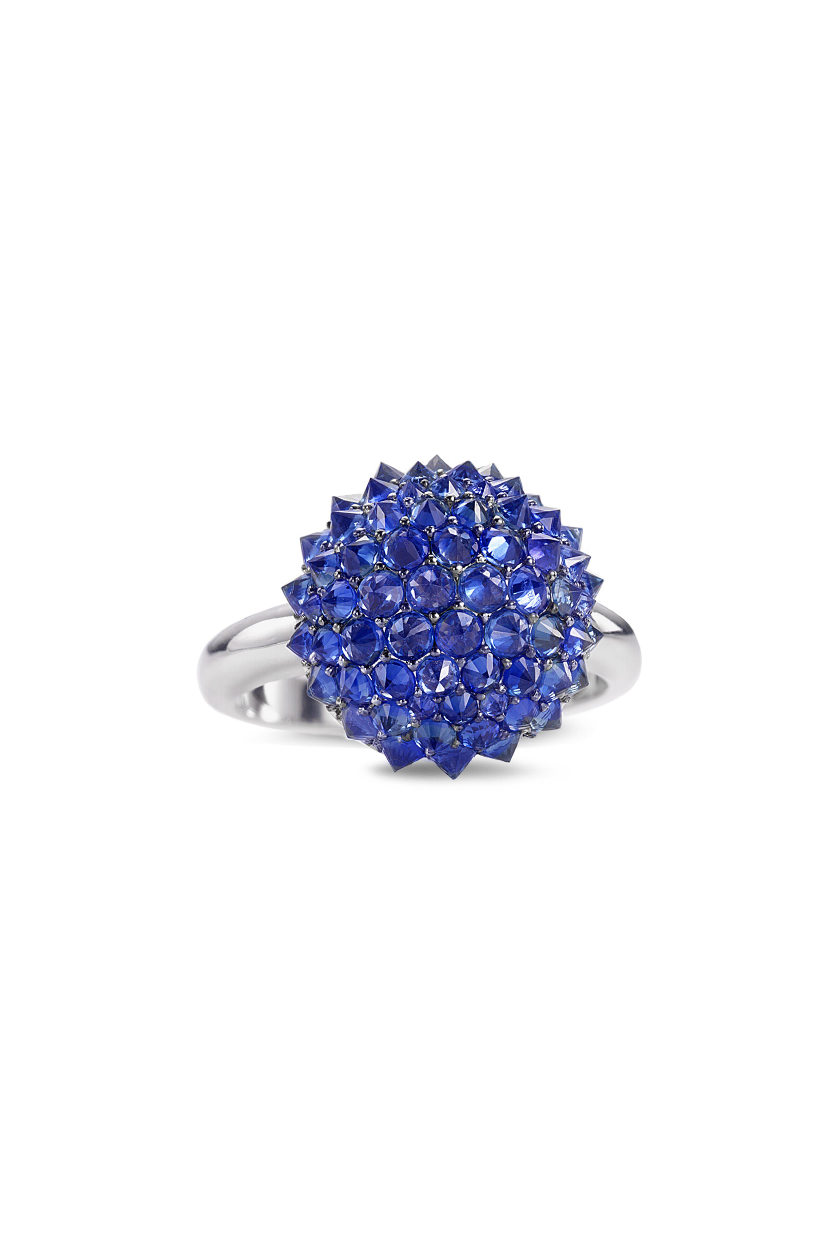 18k white gold. Black rhodium. 2.795 carat blue sapphires. Size 6.75.