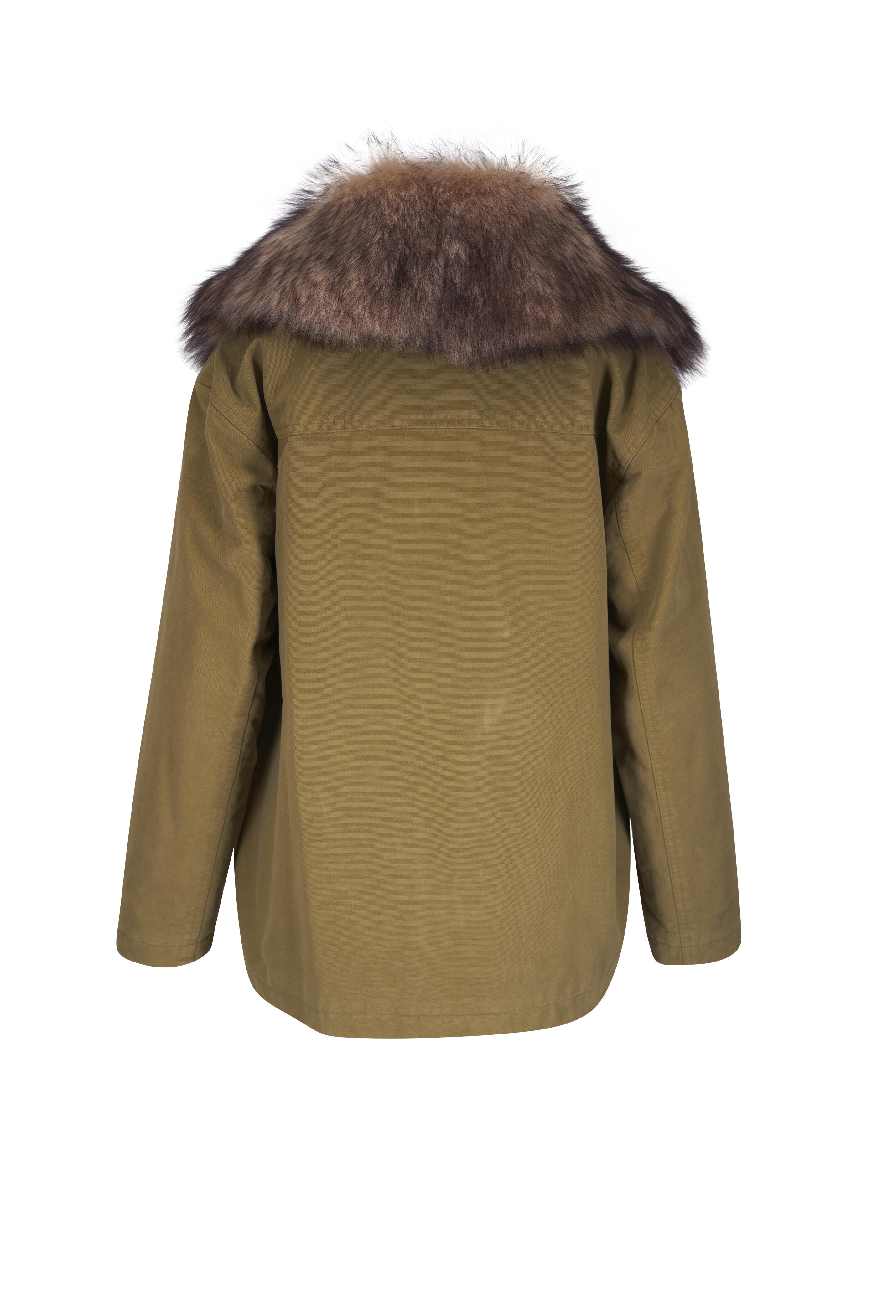 - 100% cotton; removable Toscana shearling collar and lapel; lined