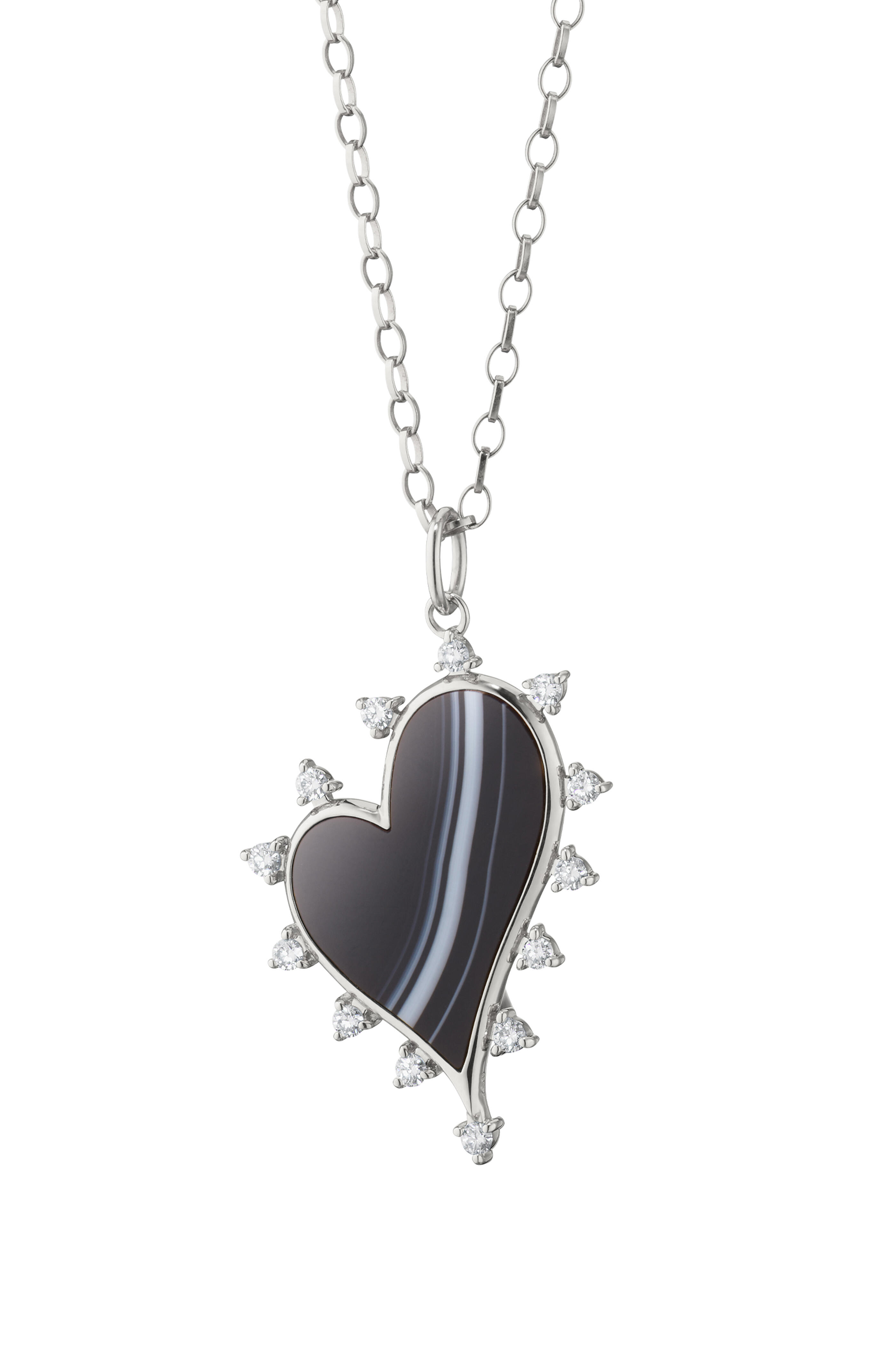 Sterling Silver. 6.61 ct Black Agate. 0.68 ct White Sapphire.