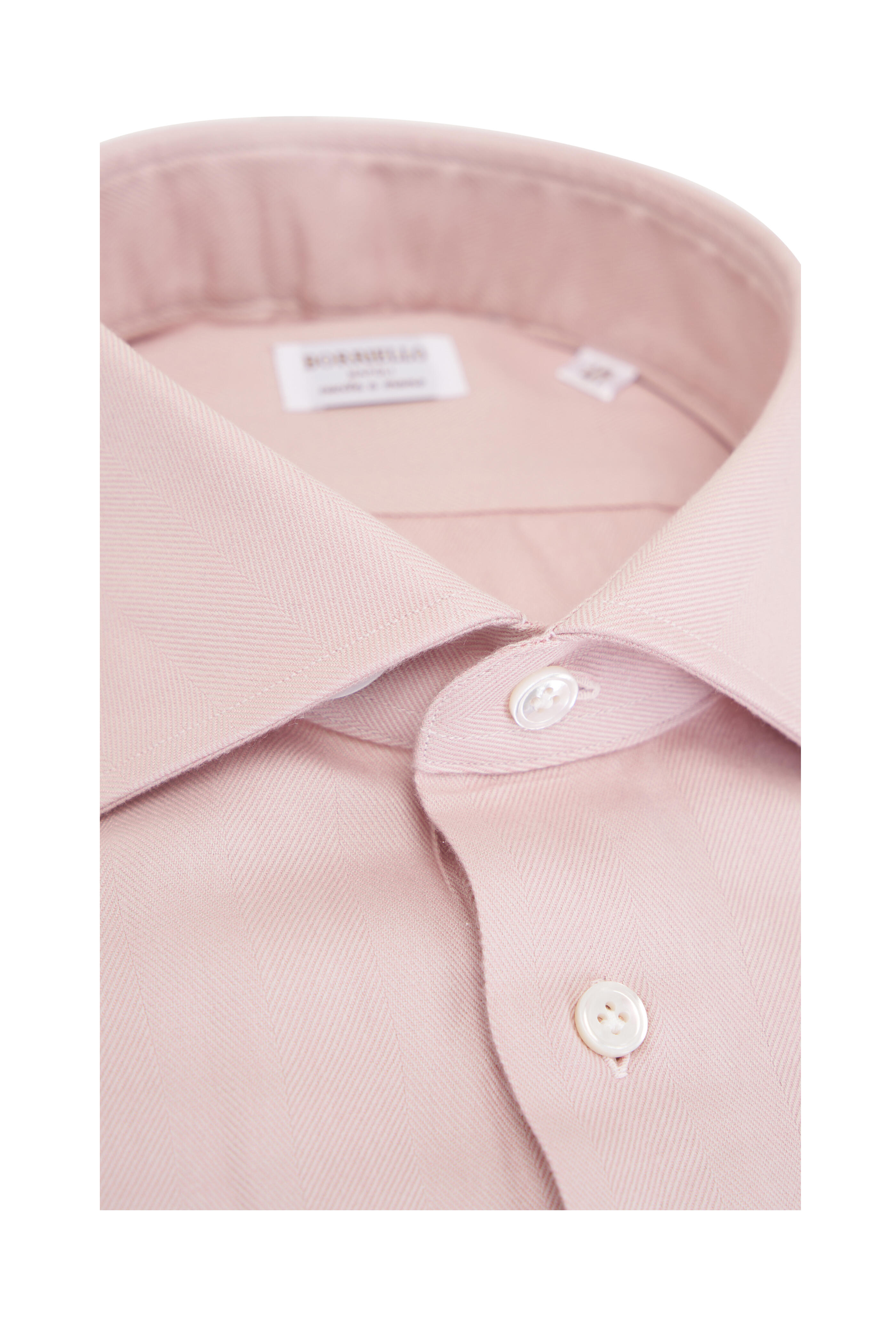 Pink Herringbone Cotton & Cashmere Dress Shirt