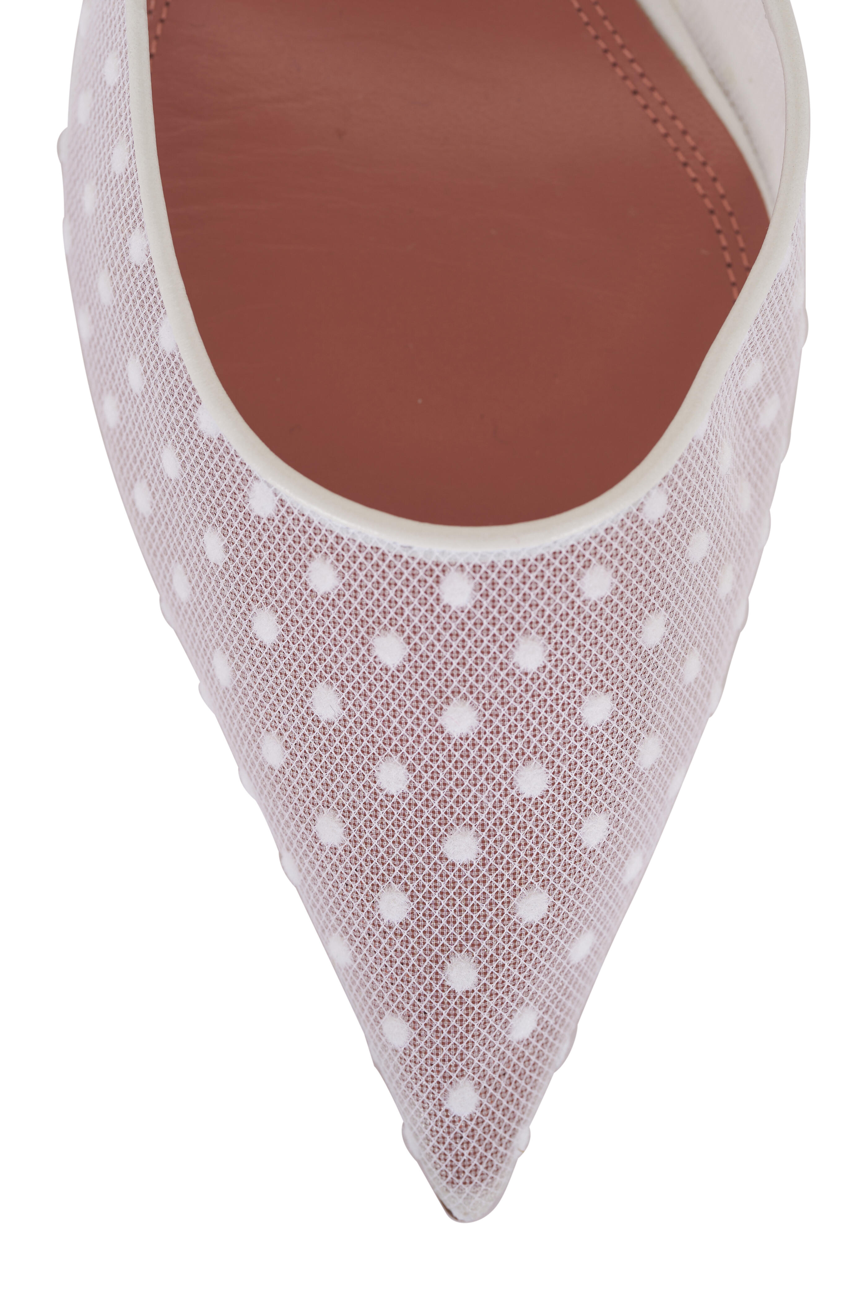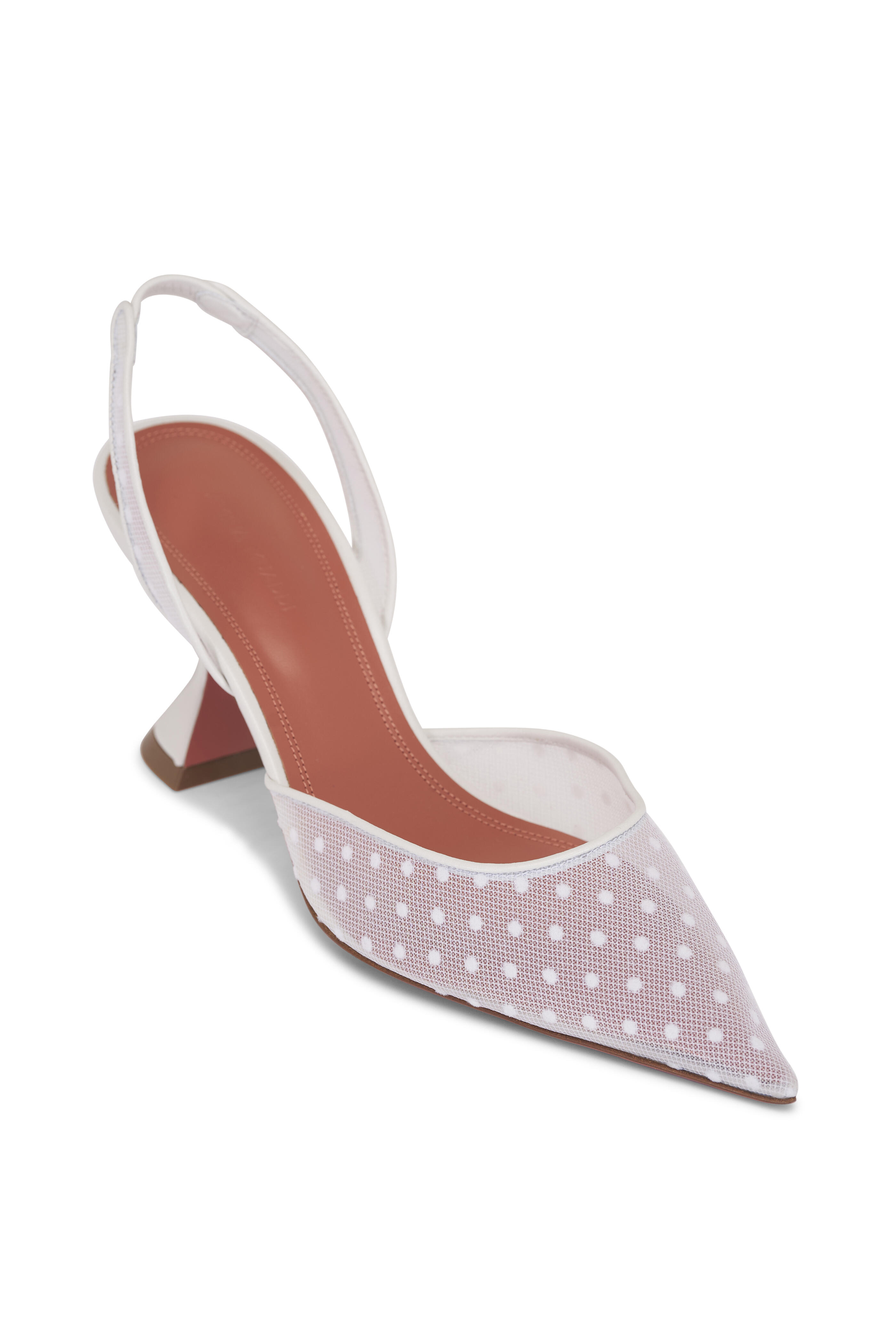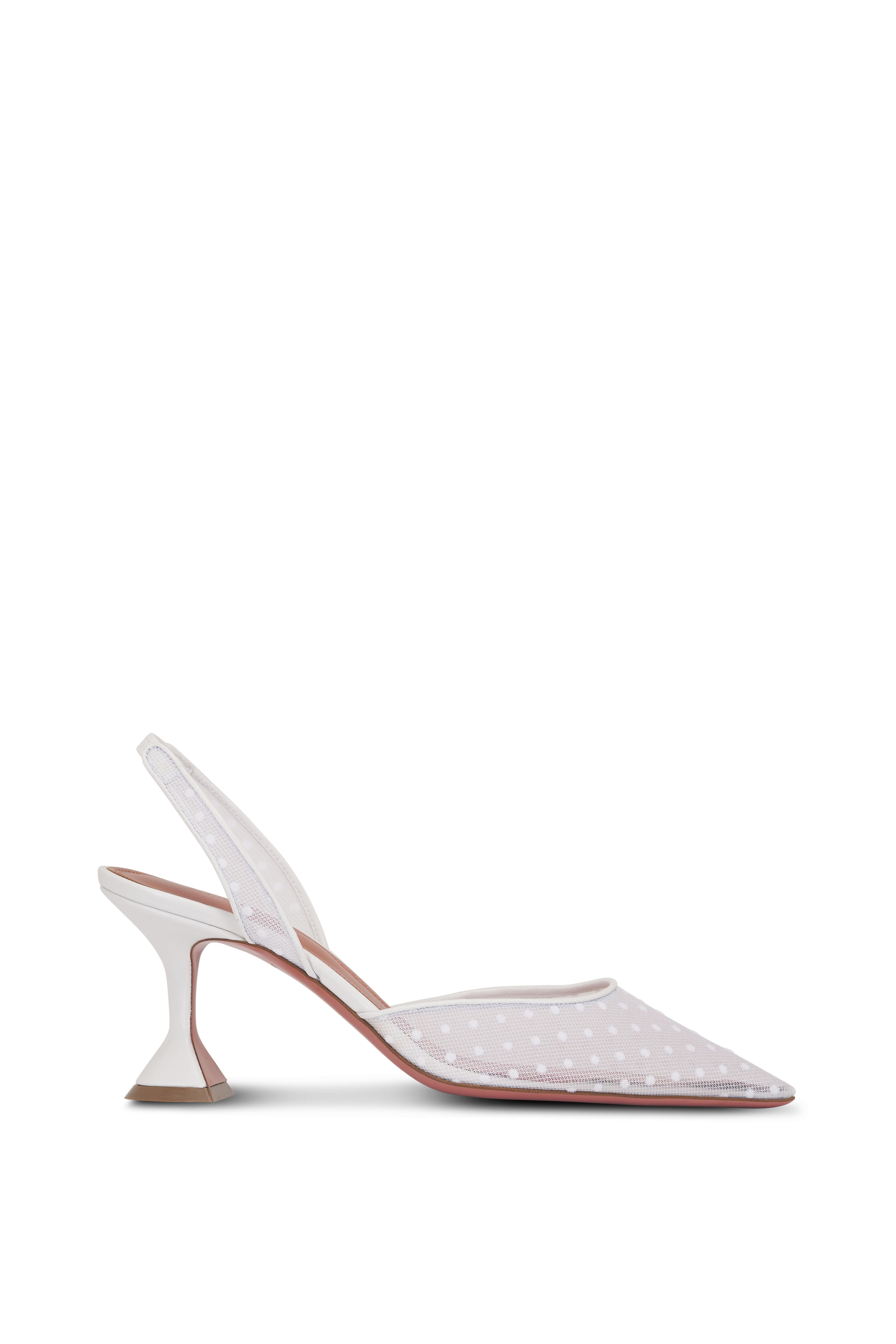 Mesh upper. Pointed toe. Elasticized slingback. Unlined and leather insole. Signature martini glass heel. Rubber and leather sole. Made in Italy. Heel measurement: 70mm.