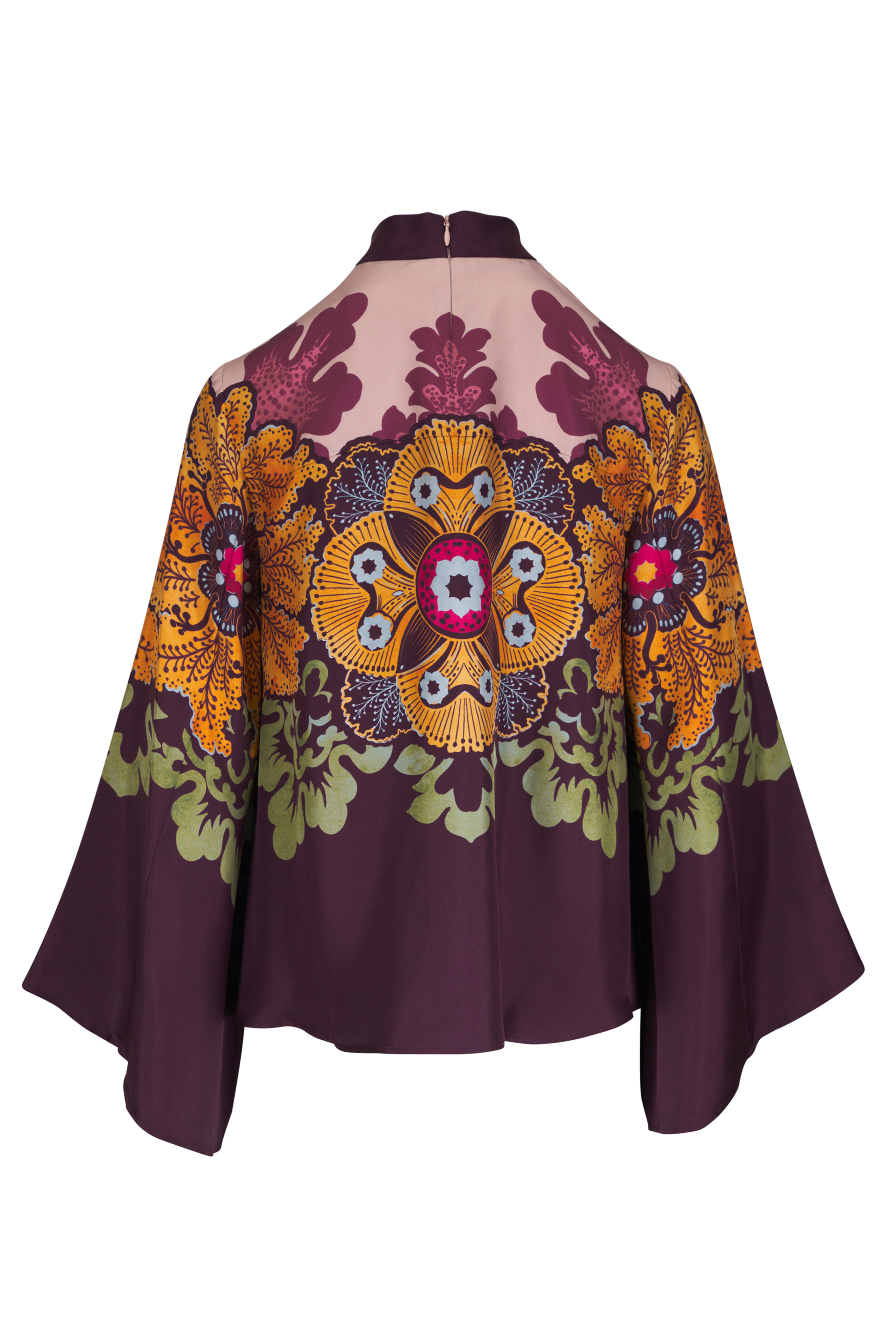 High neckline. A-shape. High-low hem. Made in Italy. Garment length: 63cm. 100% silk. Dry clean.
