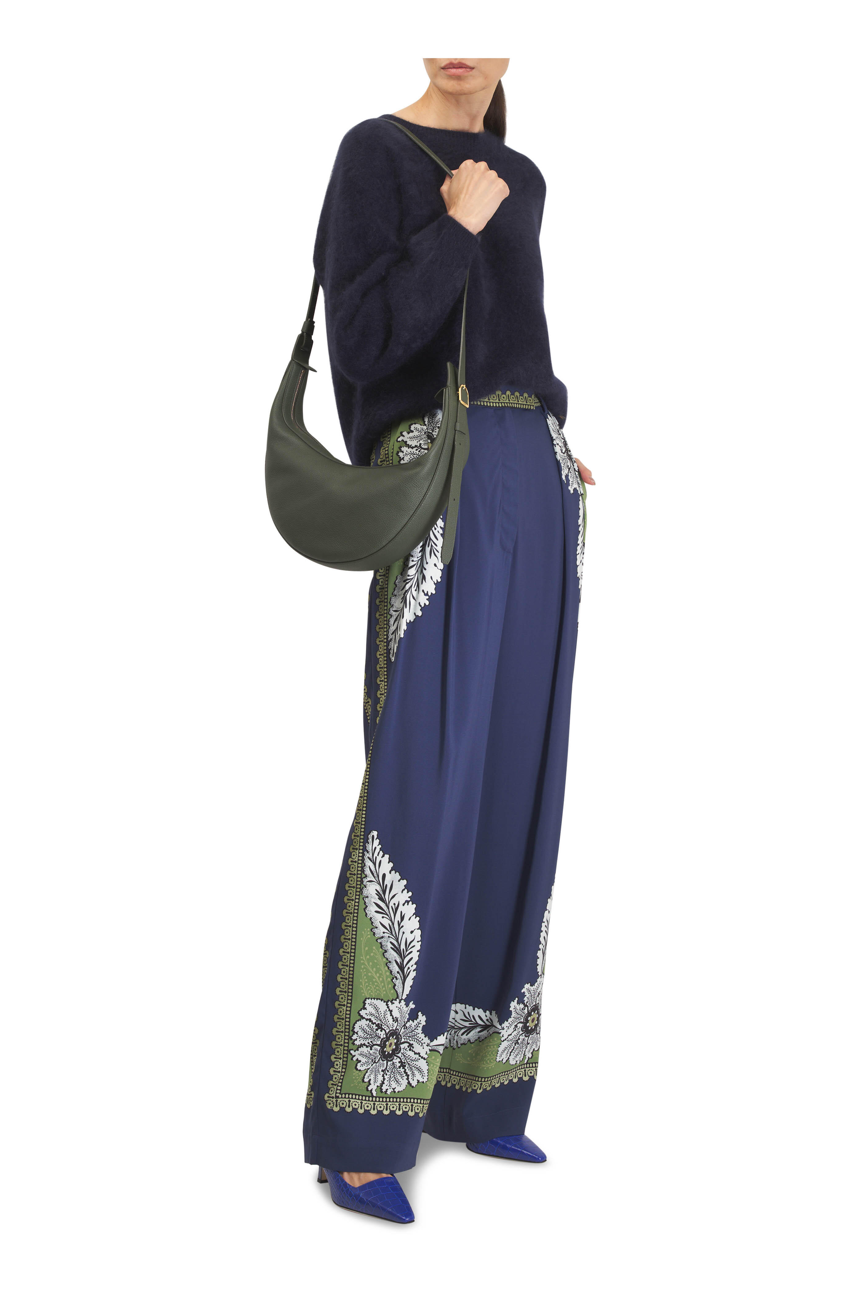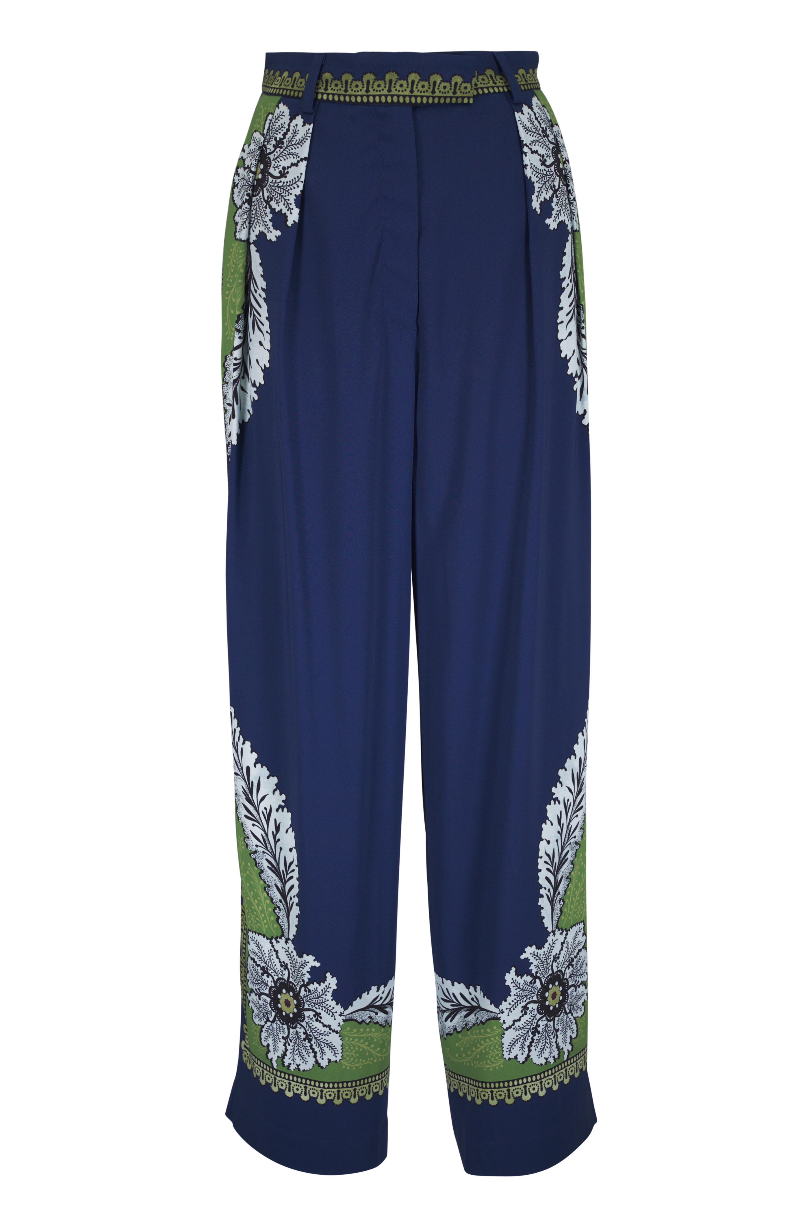 Banded waist; belt loops. Hook & eye closure. Side slip pockets; back welt pockets. Made in Italy. Wide leg. 31" inseam. 96% viscose, 4% elastane. Dry clean.