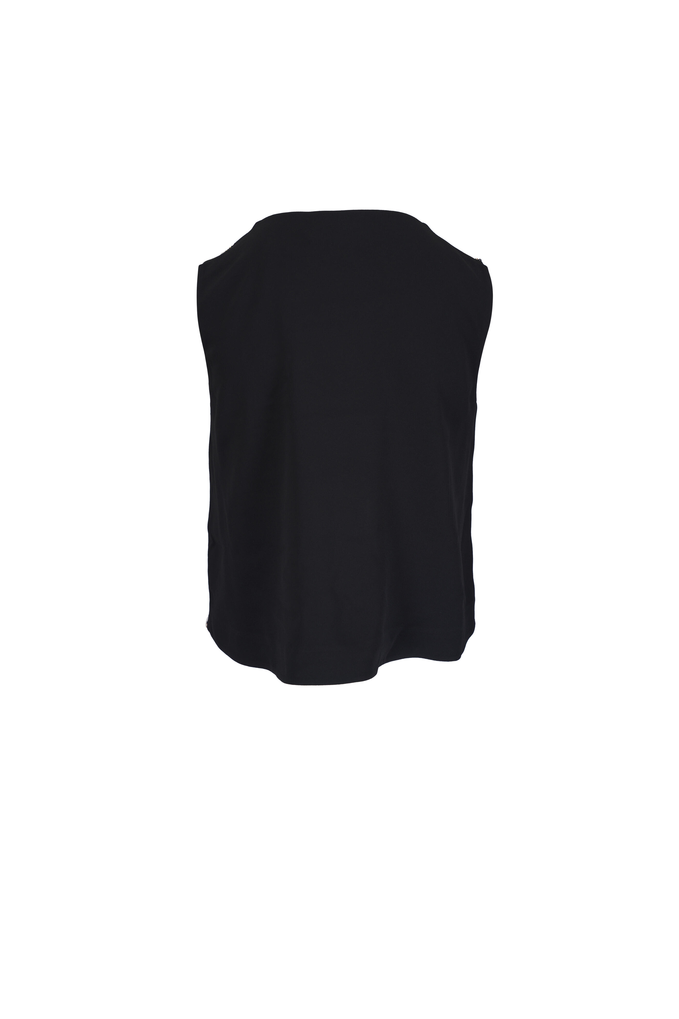 V-neckline. Slip-on style. Wide trapeze hem. Crystal and bead embroidered embellishments. Made in Italy. Approximately 18 ½" shoulder to hem (measurements taken from size XS). 100% viscose; lined. Dry clean.