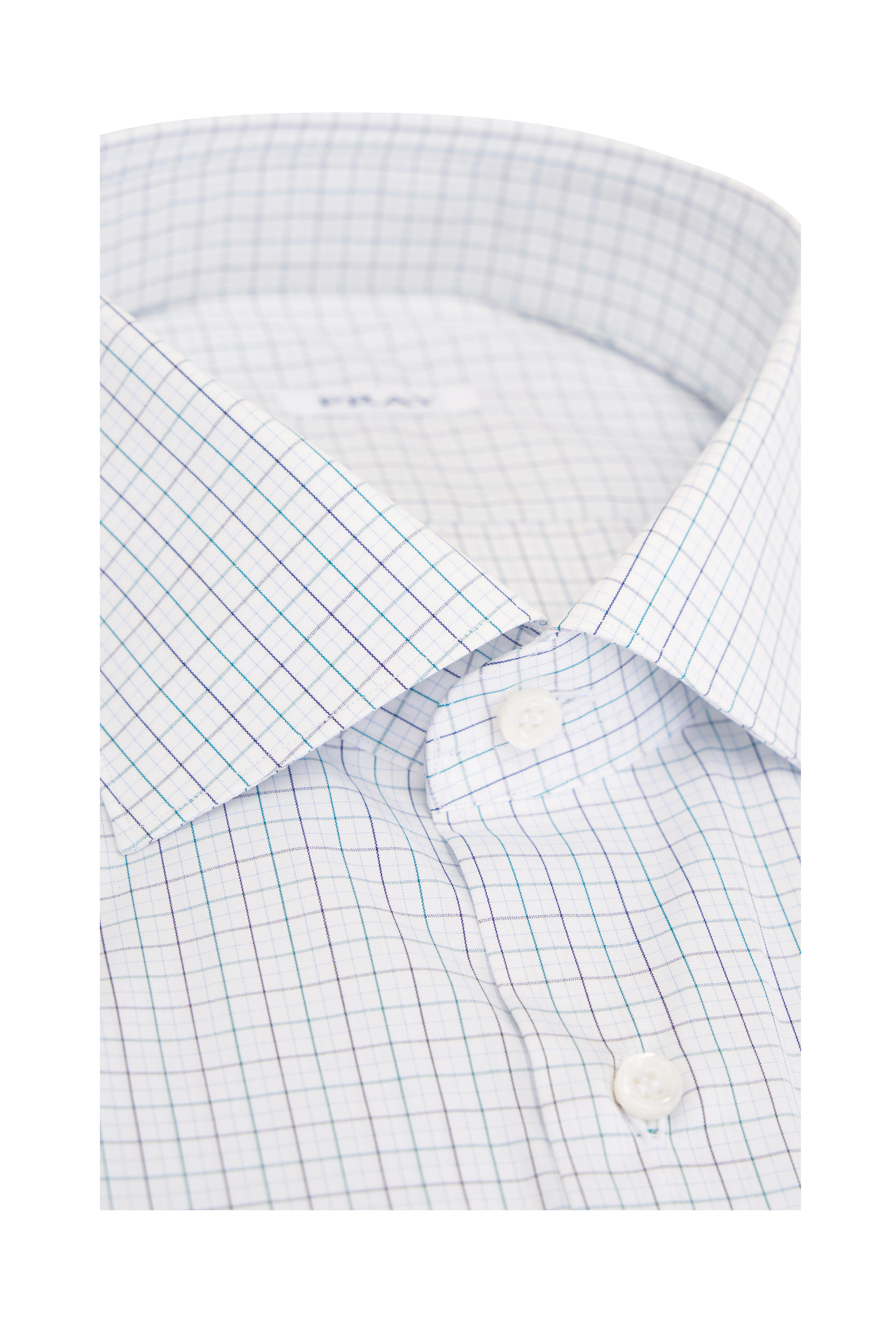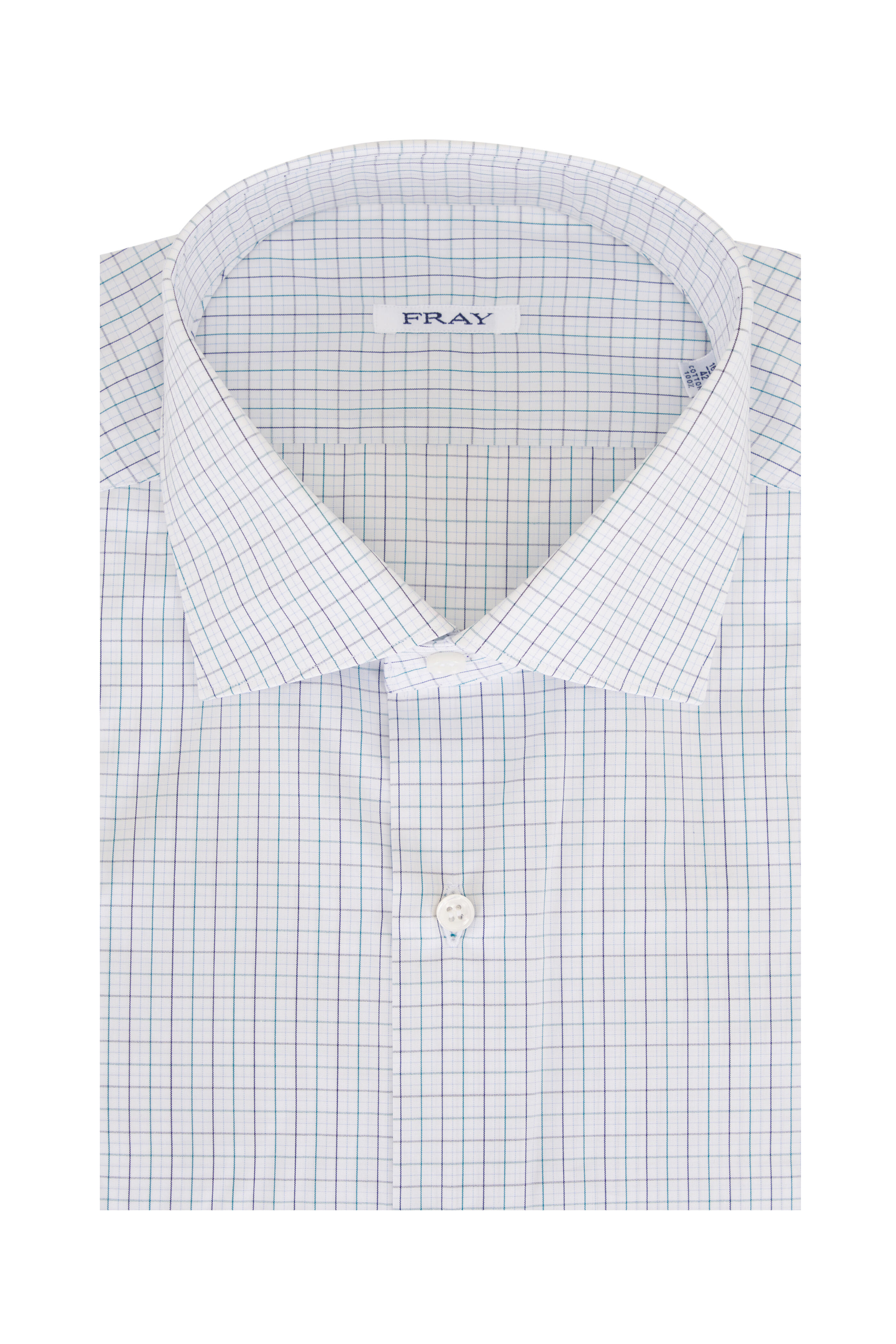 Spread collar. French front button placket. Single button barrel cuffs. Made in Italy. 100% cotton. Machine wash.
