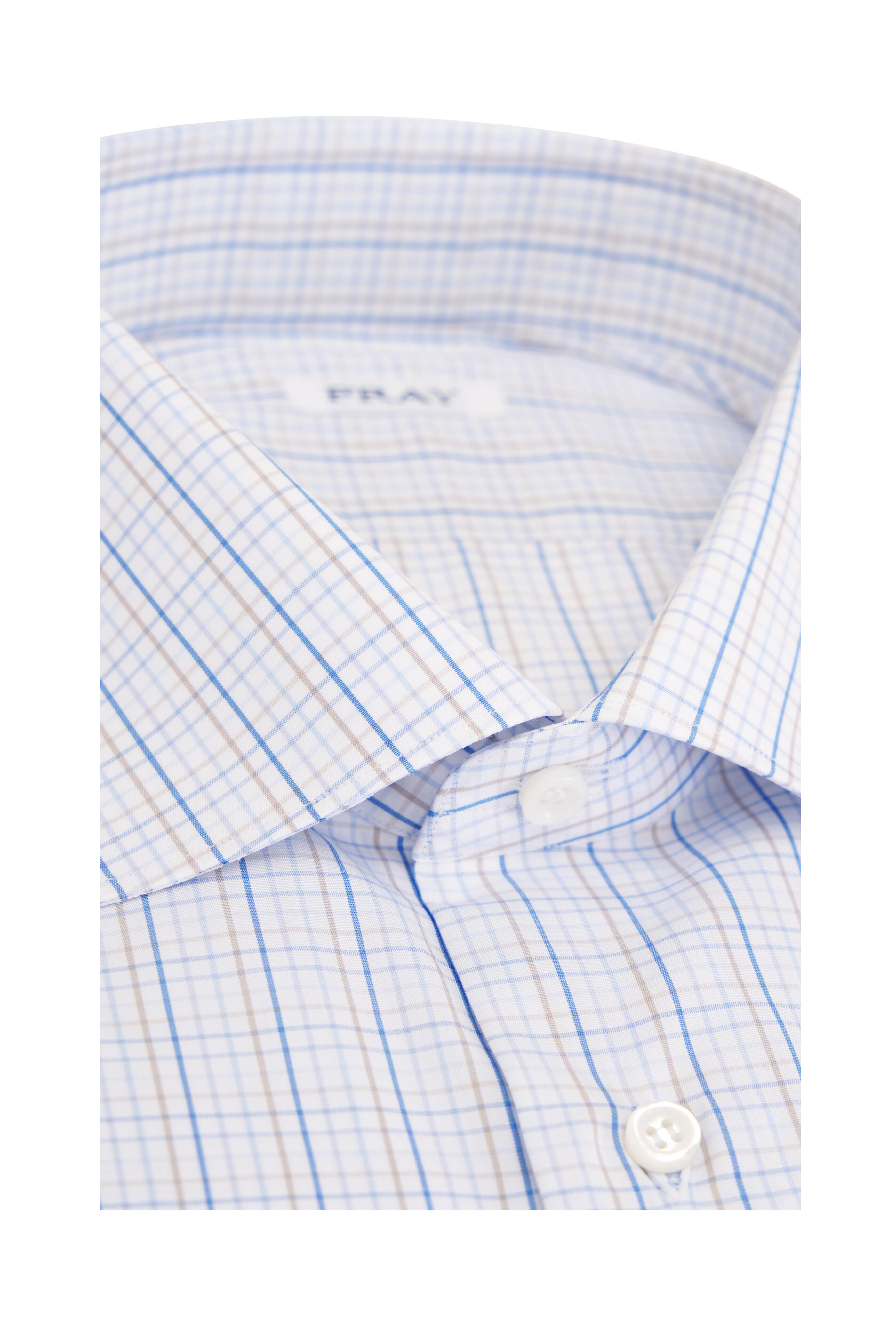 Light Blue & Tan Check Cotton Dress Shirt