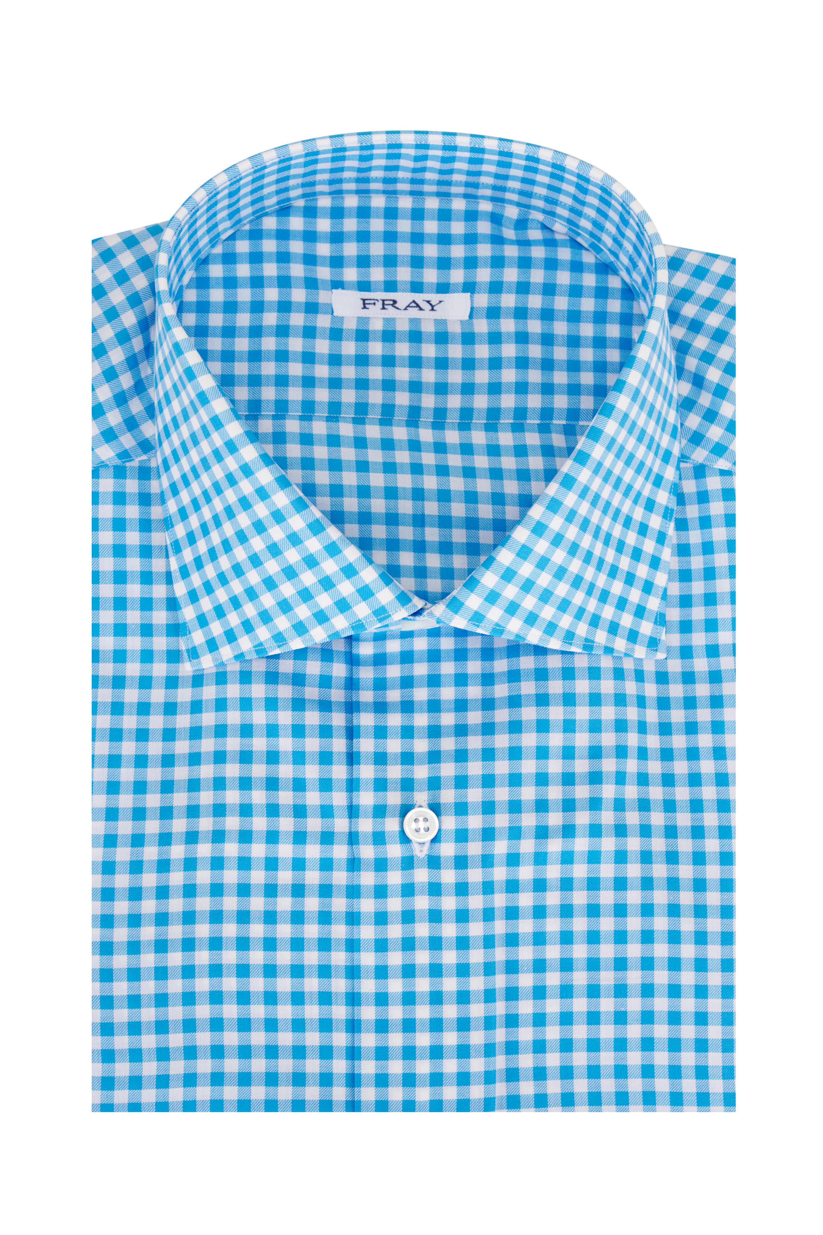 Spread collar. French front button placket. Single button barrel cuffs. Made in Italy. 100% cotton. Machine wash.