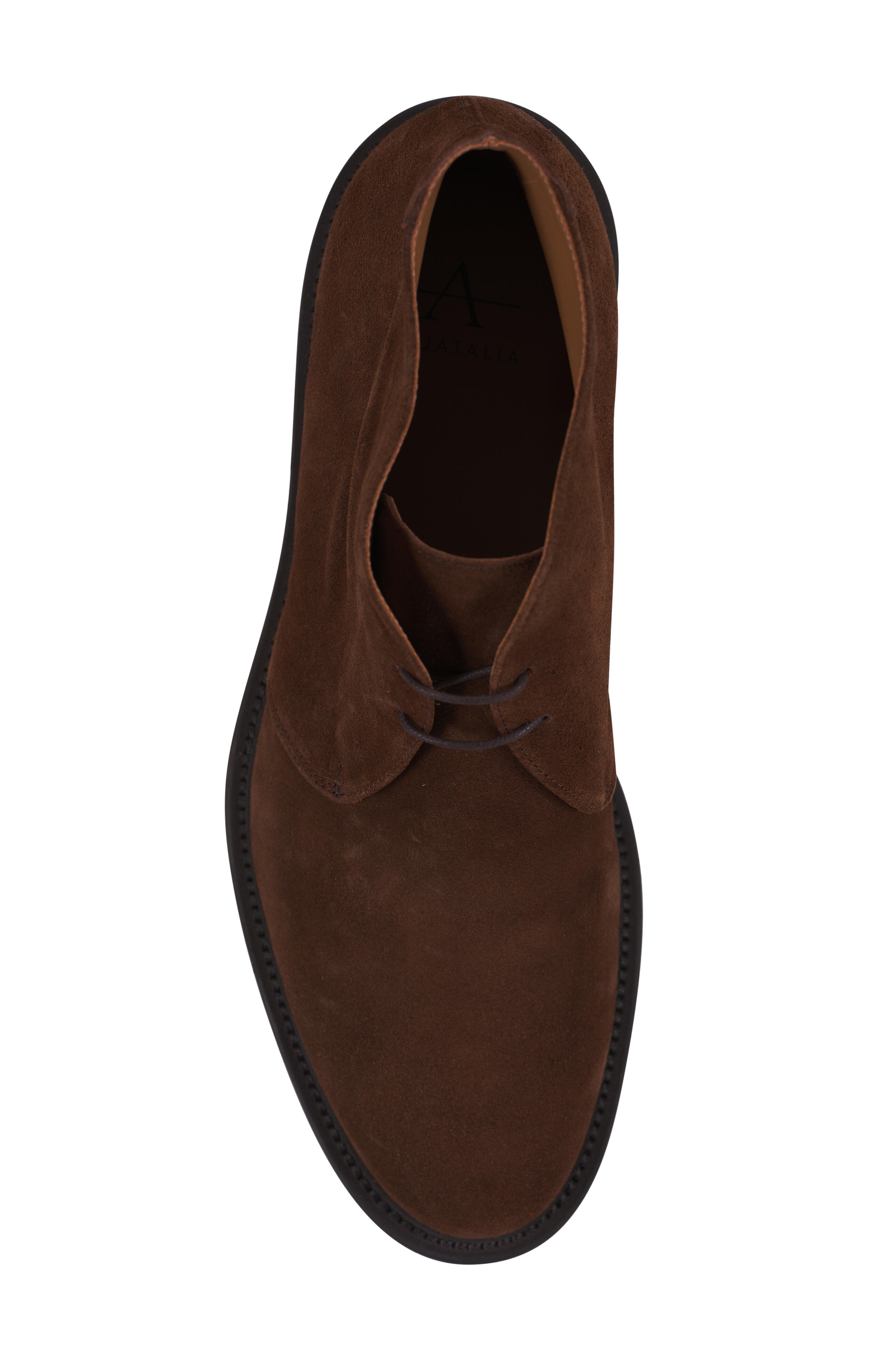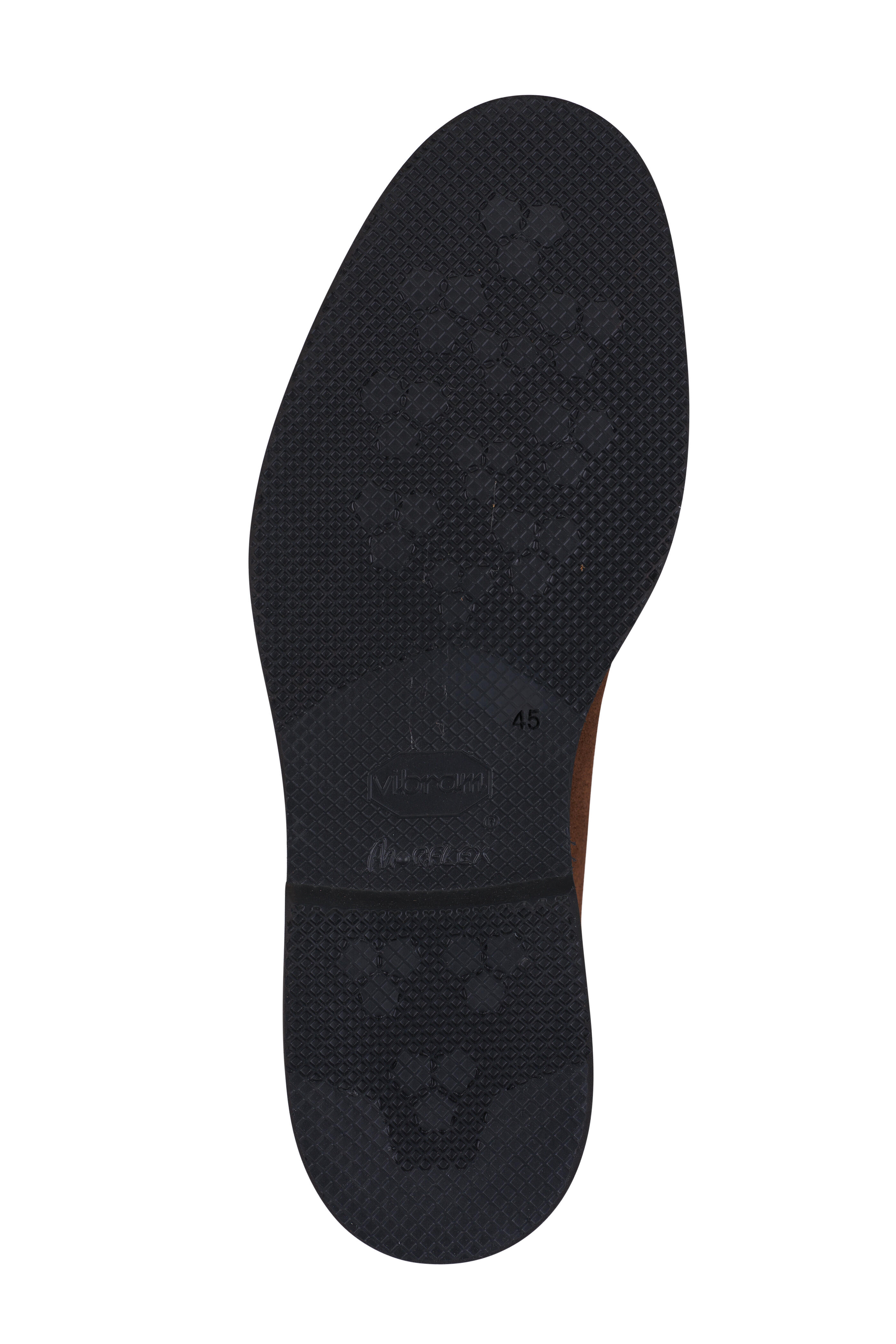 Water-resistant suede. Almond toe. Lace-up. Leather lining. Rubber outsole. Made in Italy. Color: Cognac.