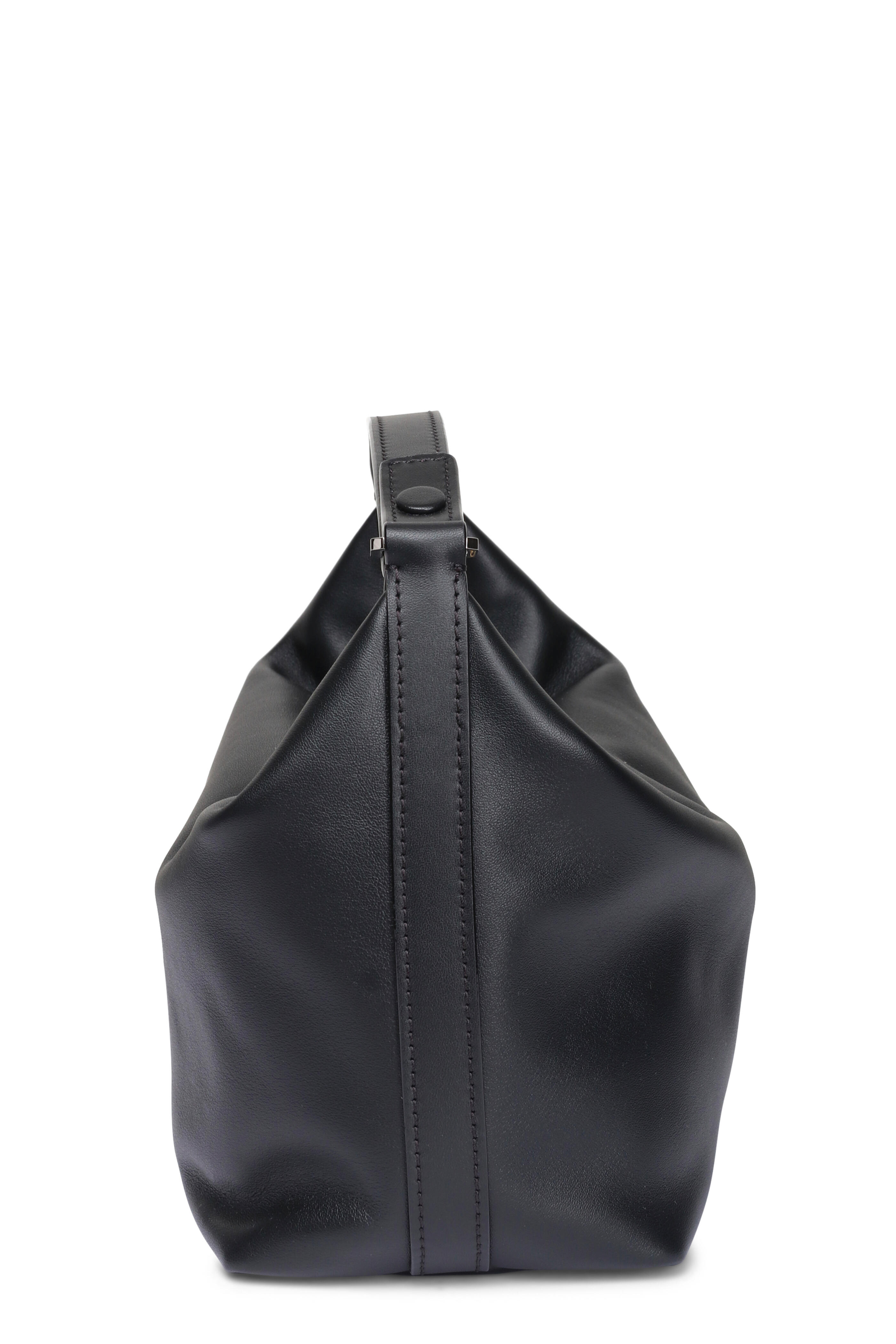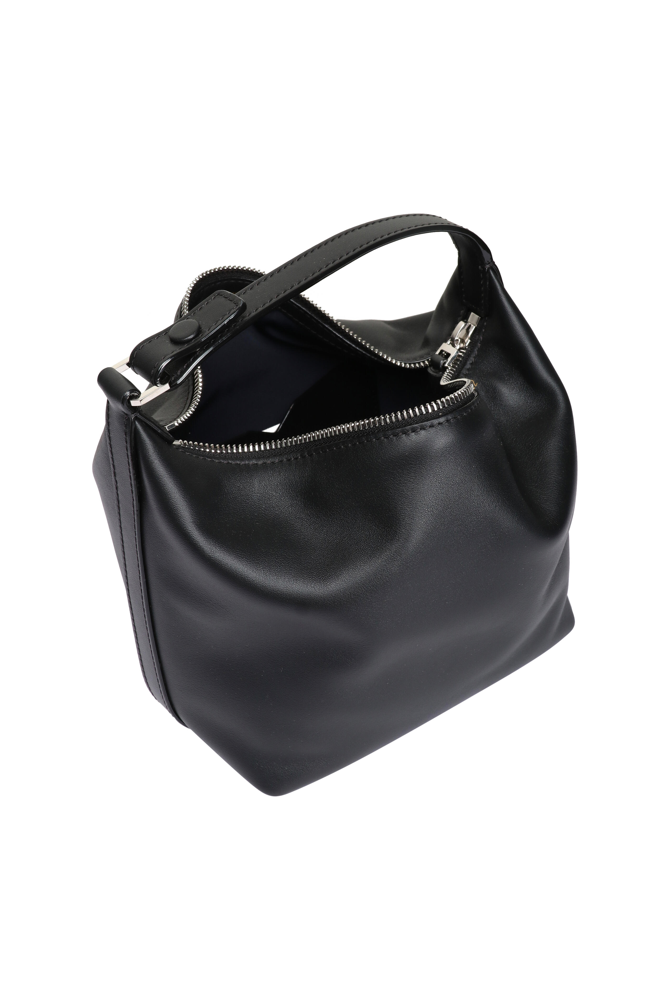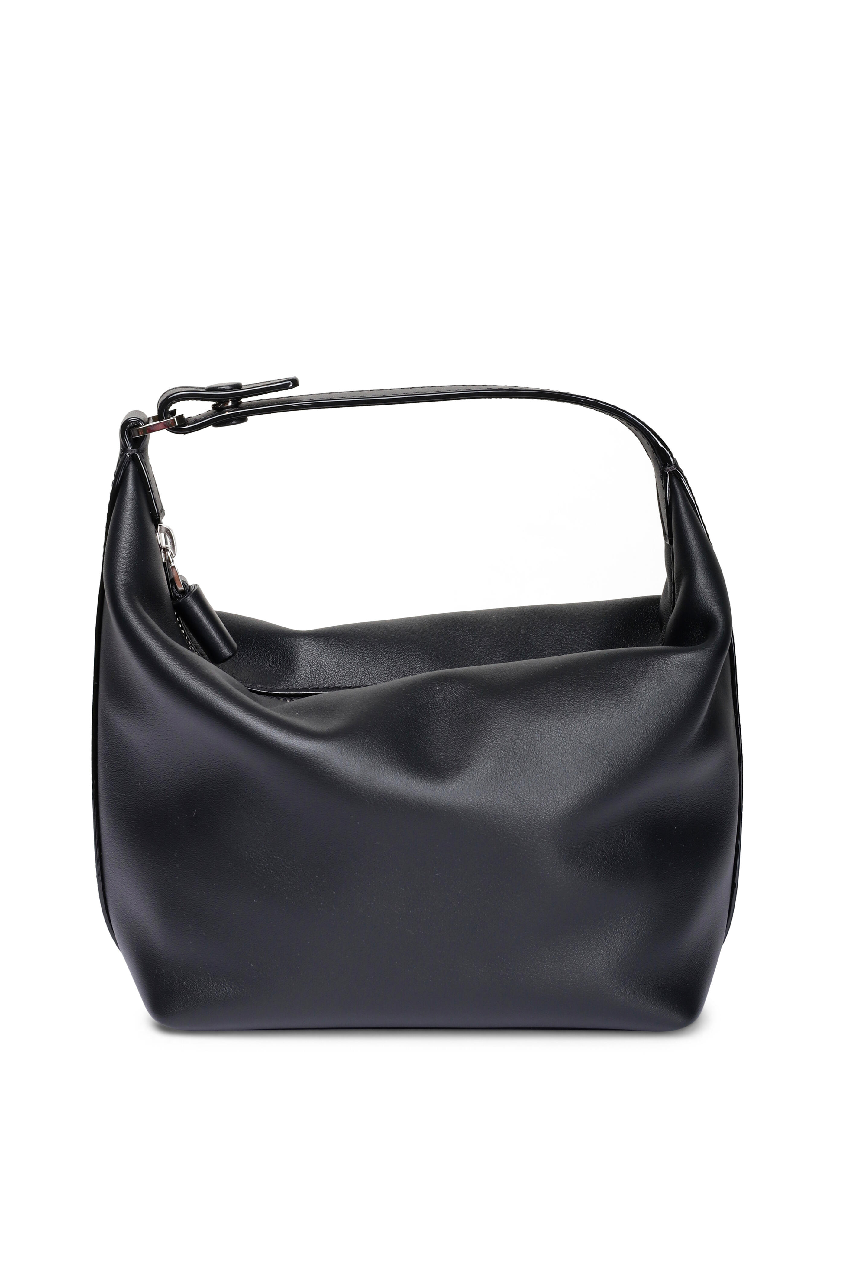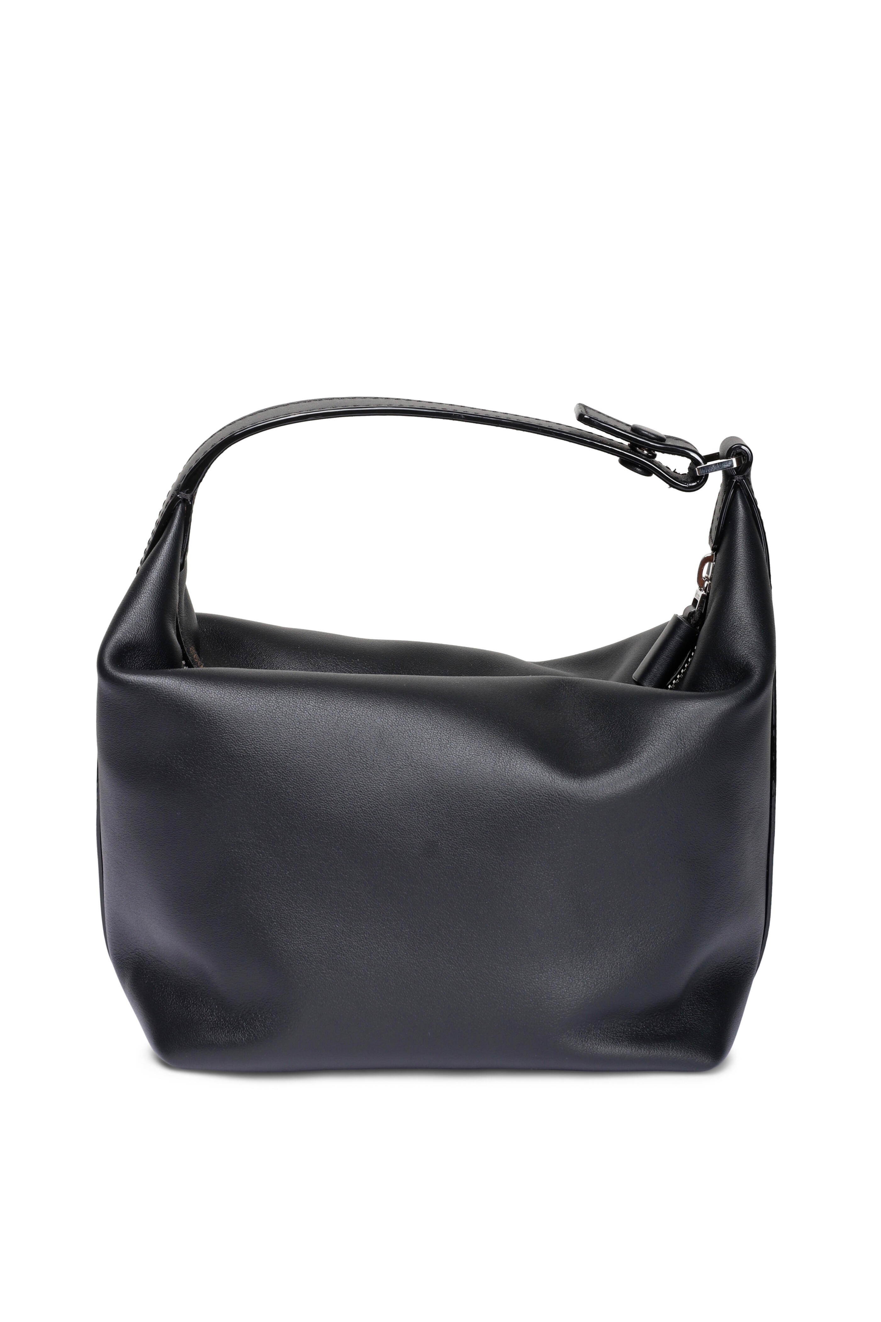 Soft sublime leather outer. Fabric lining. Zipper closure. Top handle. Detachable clip-on leather shoulder strap. Gold-tone zipper fastening. Signature hand painted black lacquered Costa edges. Interior V-cut wall pouch pocket. Made in Italy. Dimensions: 3.9” H x 6.7” W x 4.7” D. Handle drop: 4.7”. Strap drop: 33.1”.