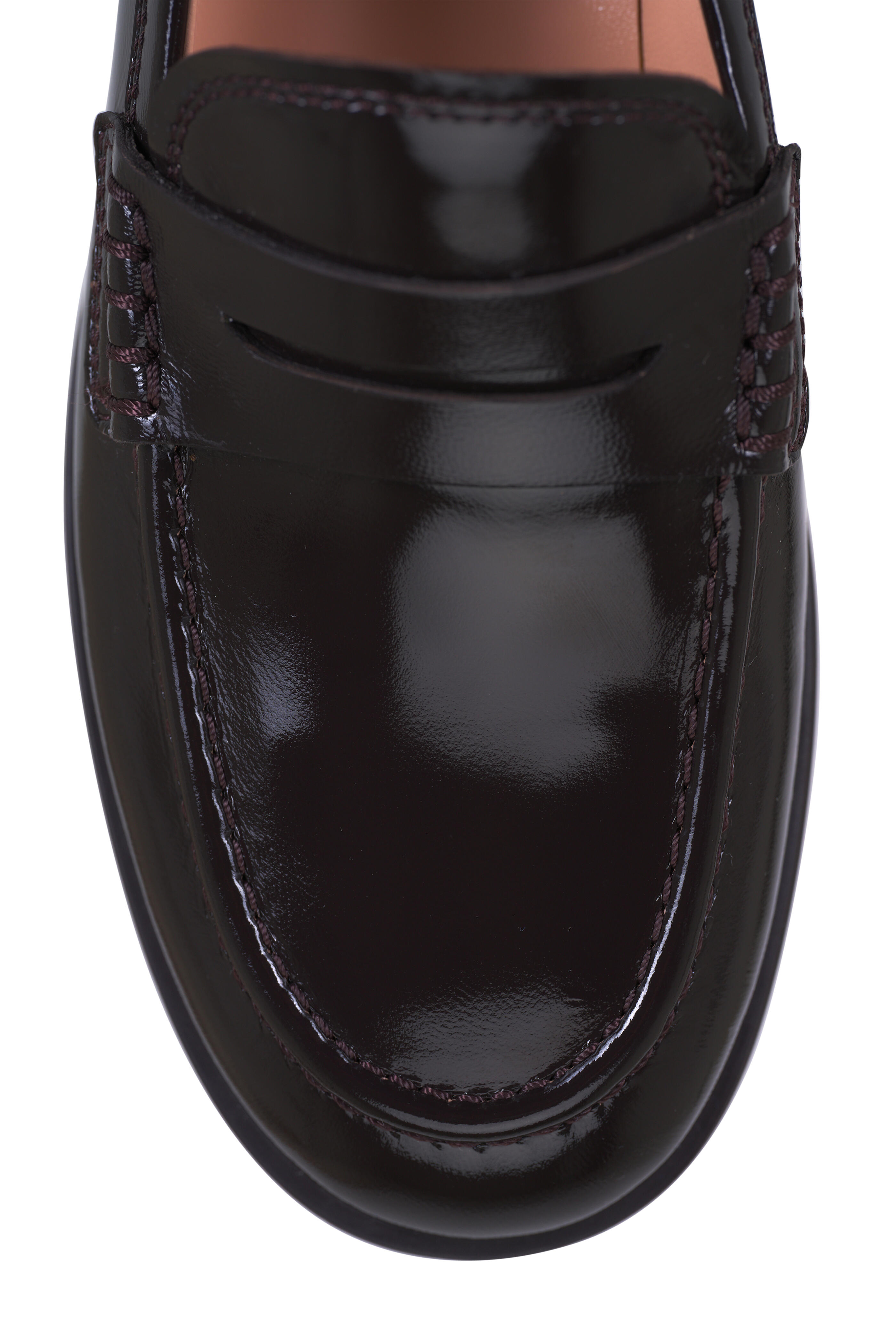 Leather upper. Moc toe. Penny strap at vamp. Slip on style. Leather lining and insole. Leather sole. Made in Italy.