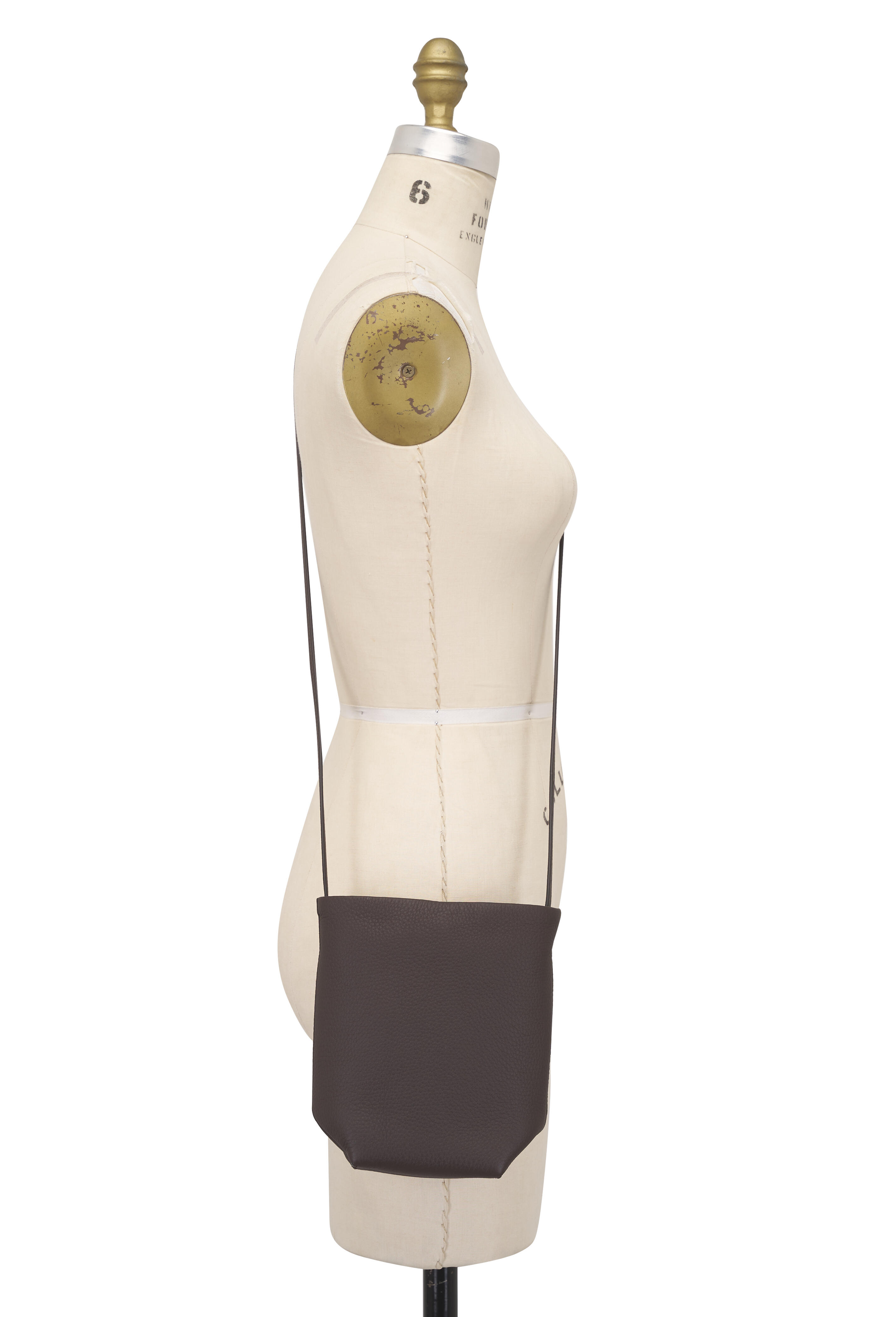 - Single, adjustable leather crossbody strap
