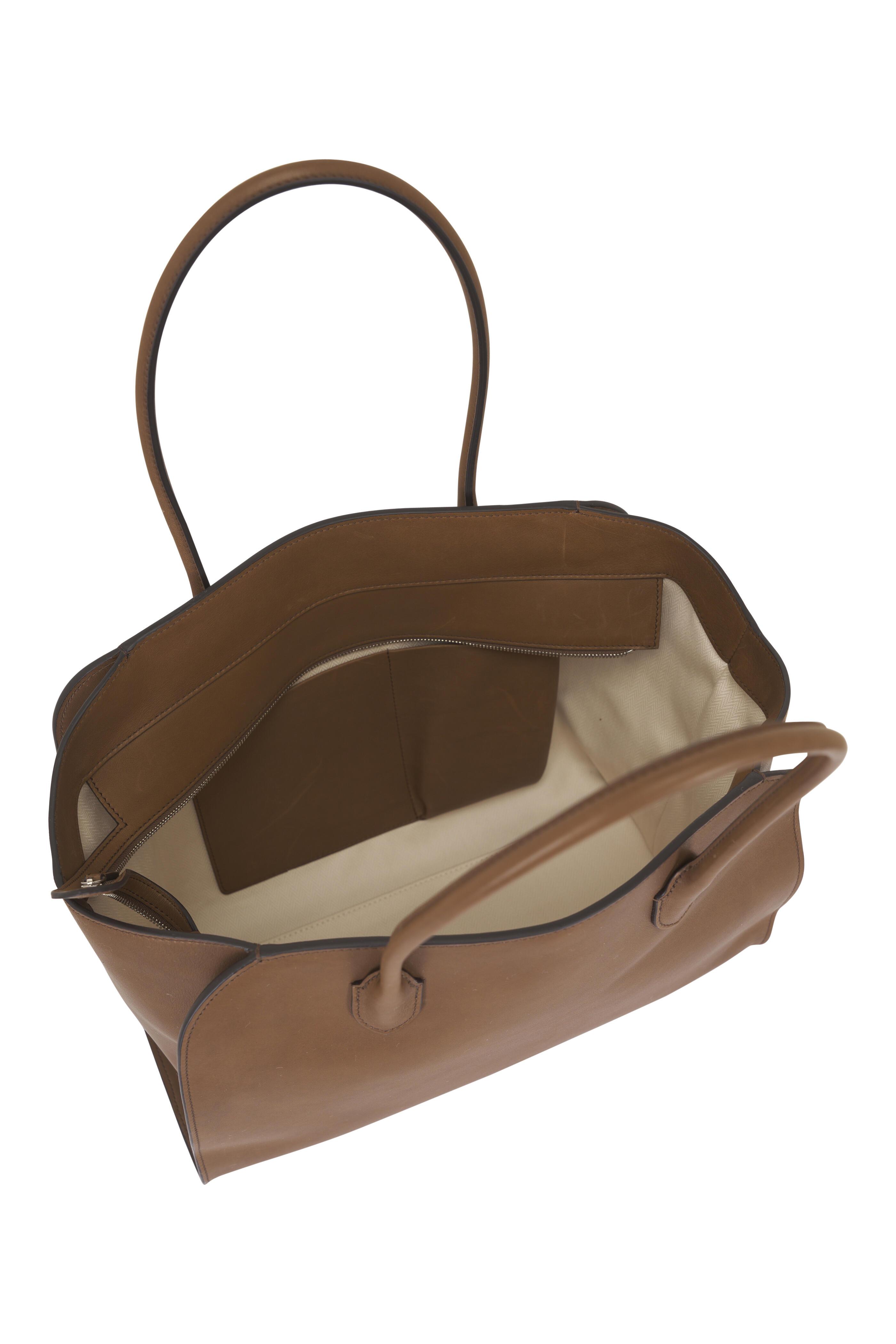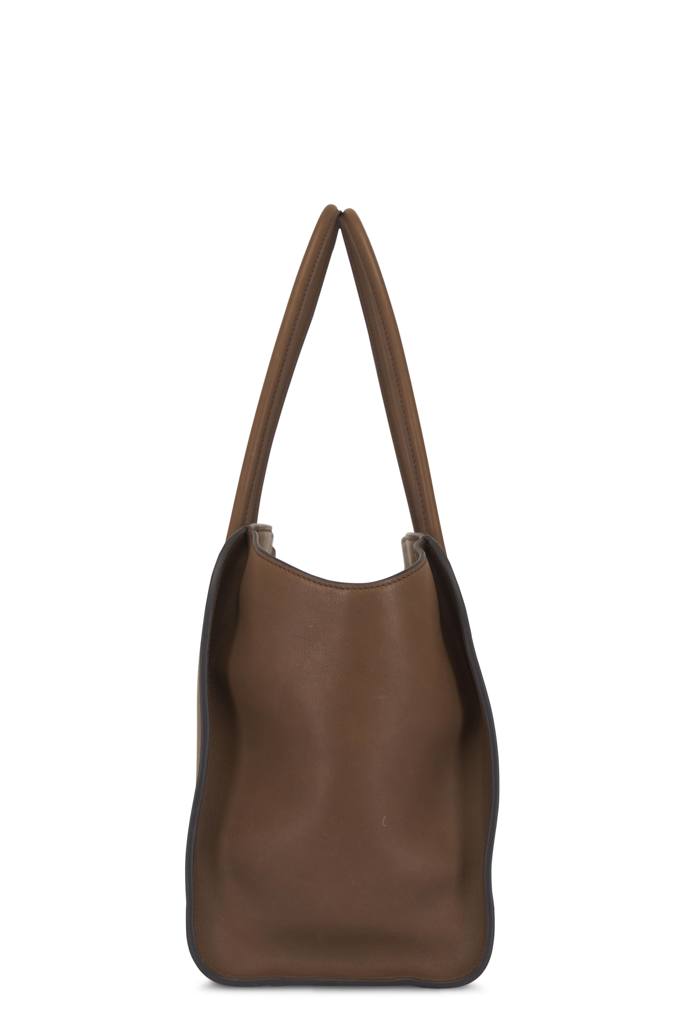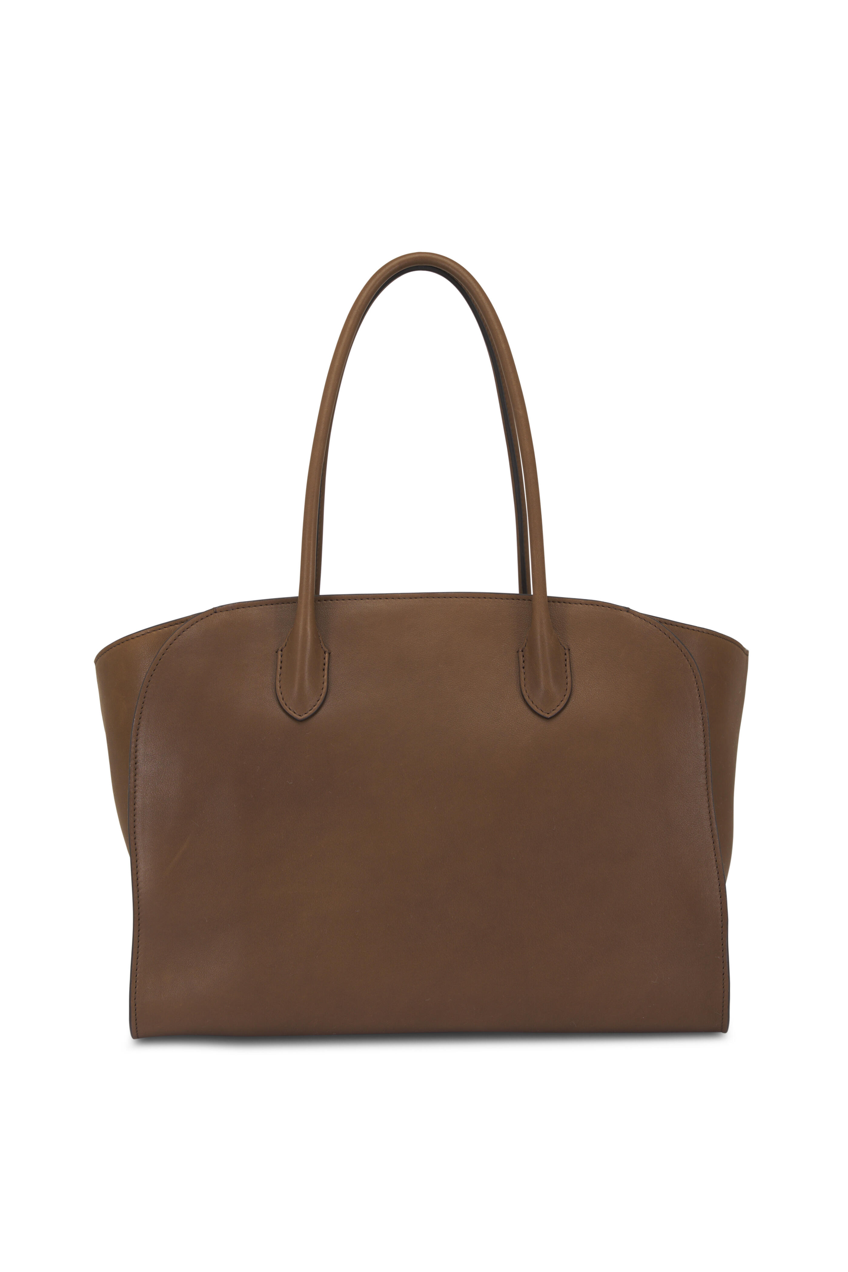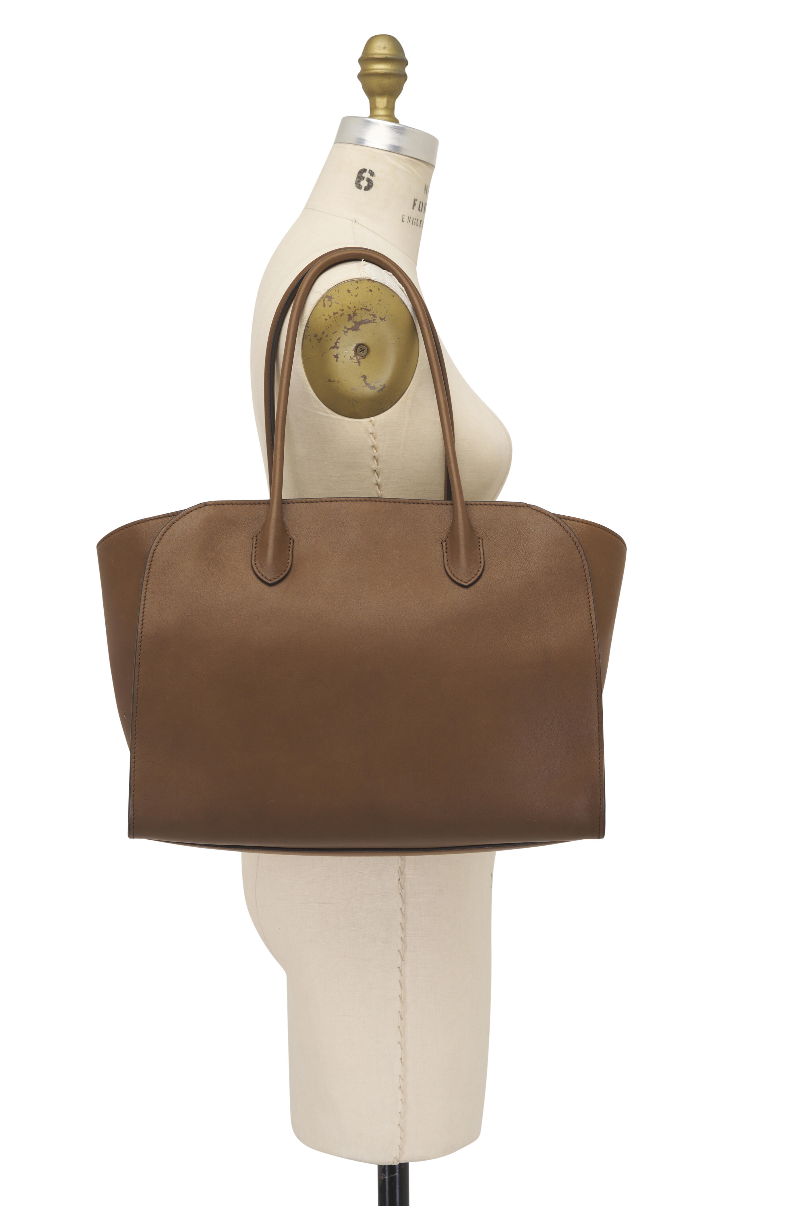 Leather. Dual top handles. Top zip closure. Interior slip pockets; zip pocket. Fabric lining. Made in Italy. 14" length. 10" height. 7" depth. 8" strap drop.