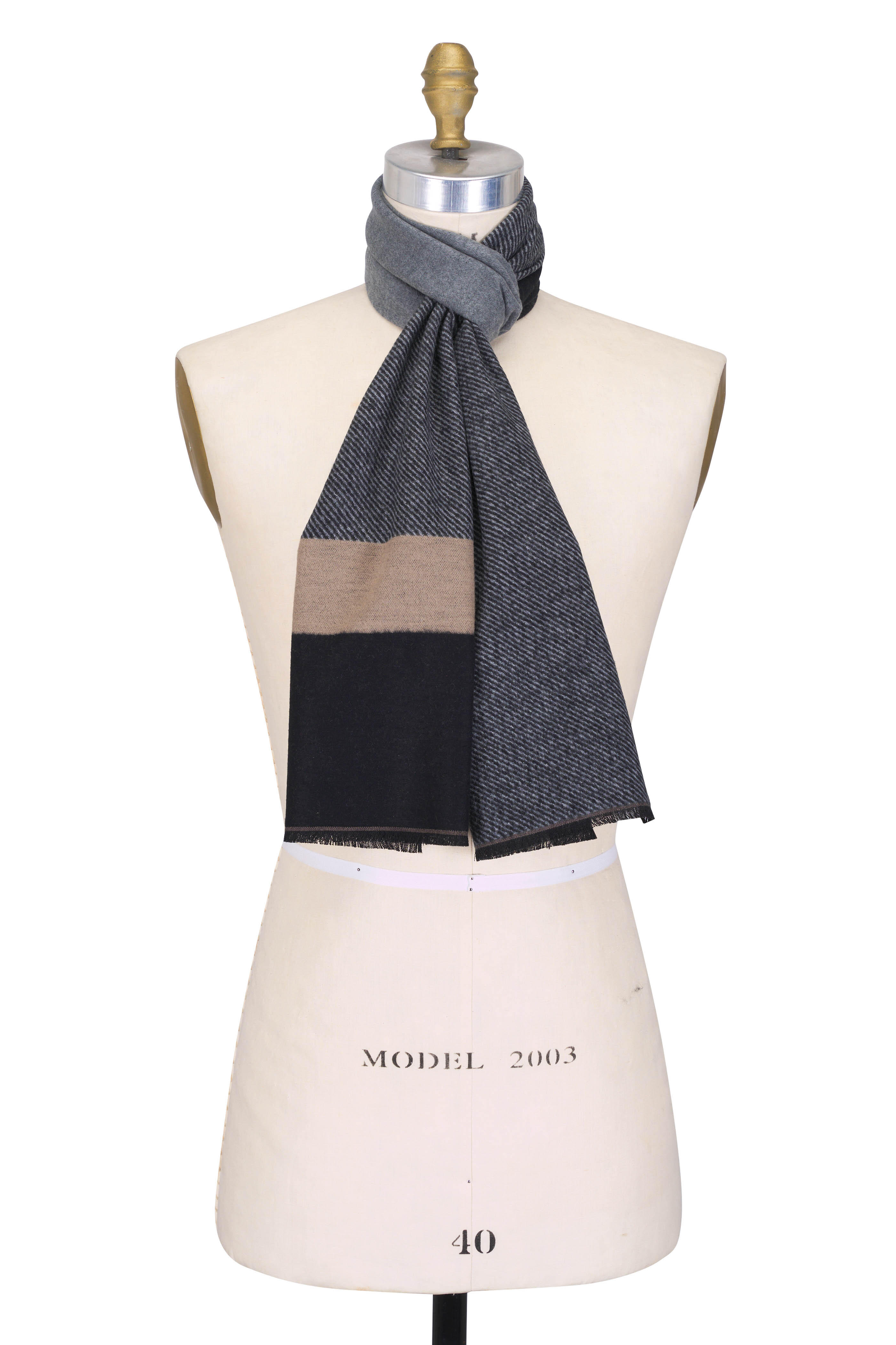 Black & Taupe Stripe Brushed Silk Scarf