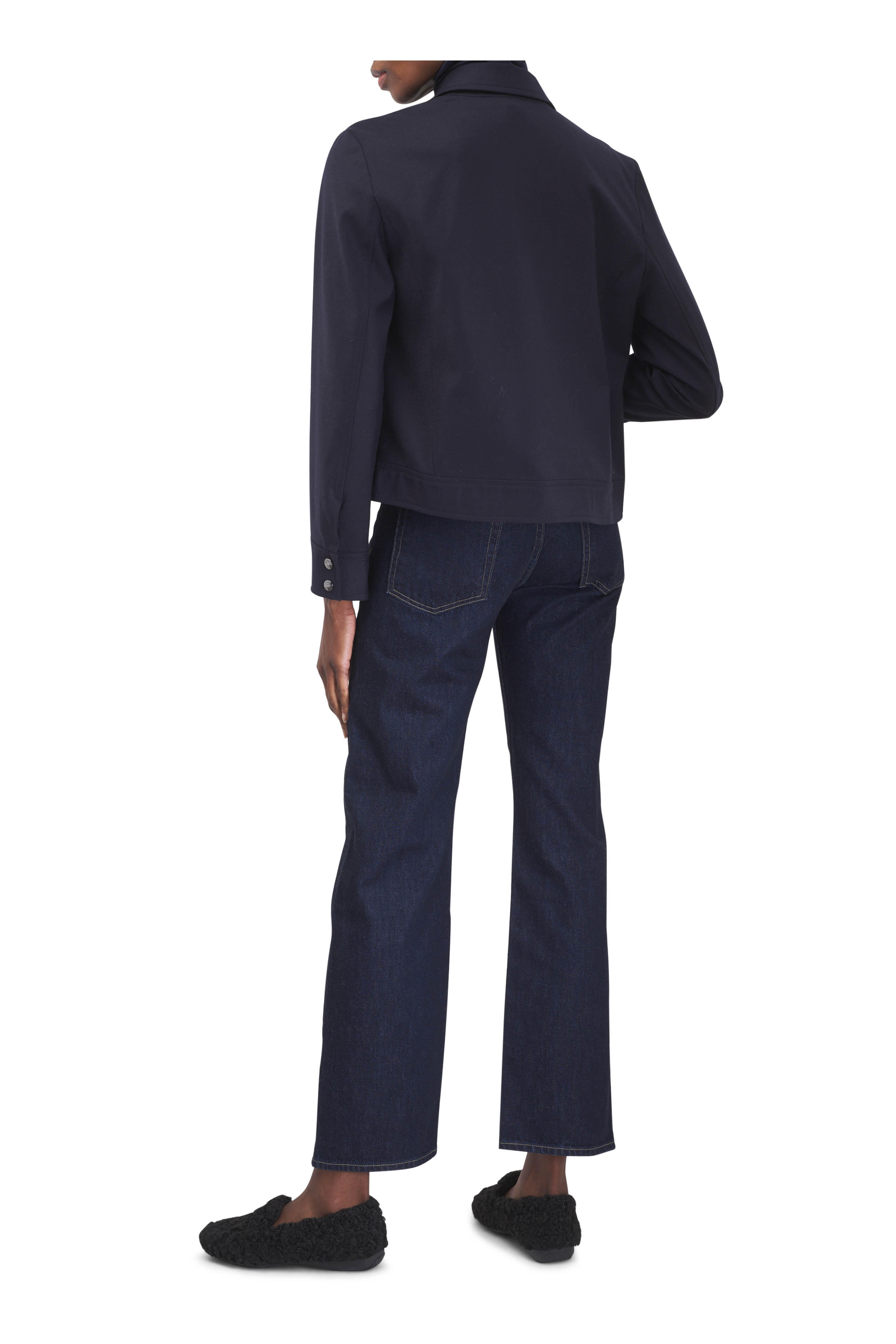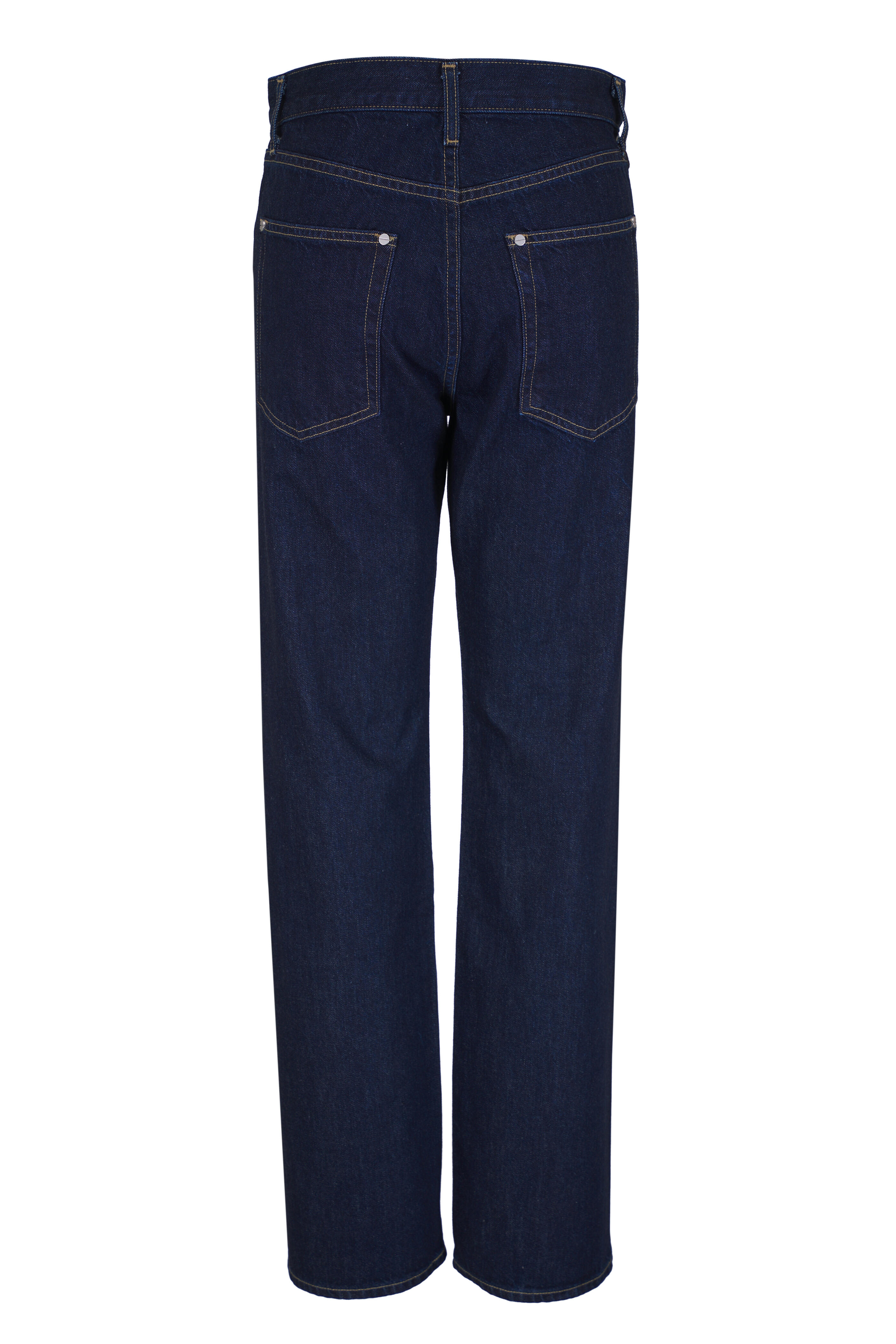 Zip fly; button closure. Banded waist; belt loops. Five pocket styling. Made in the USA. Inseam: 31". 100% cotton. Machine wash.