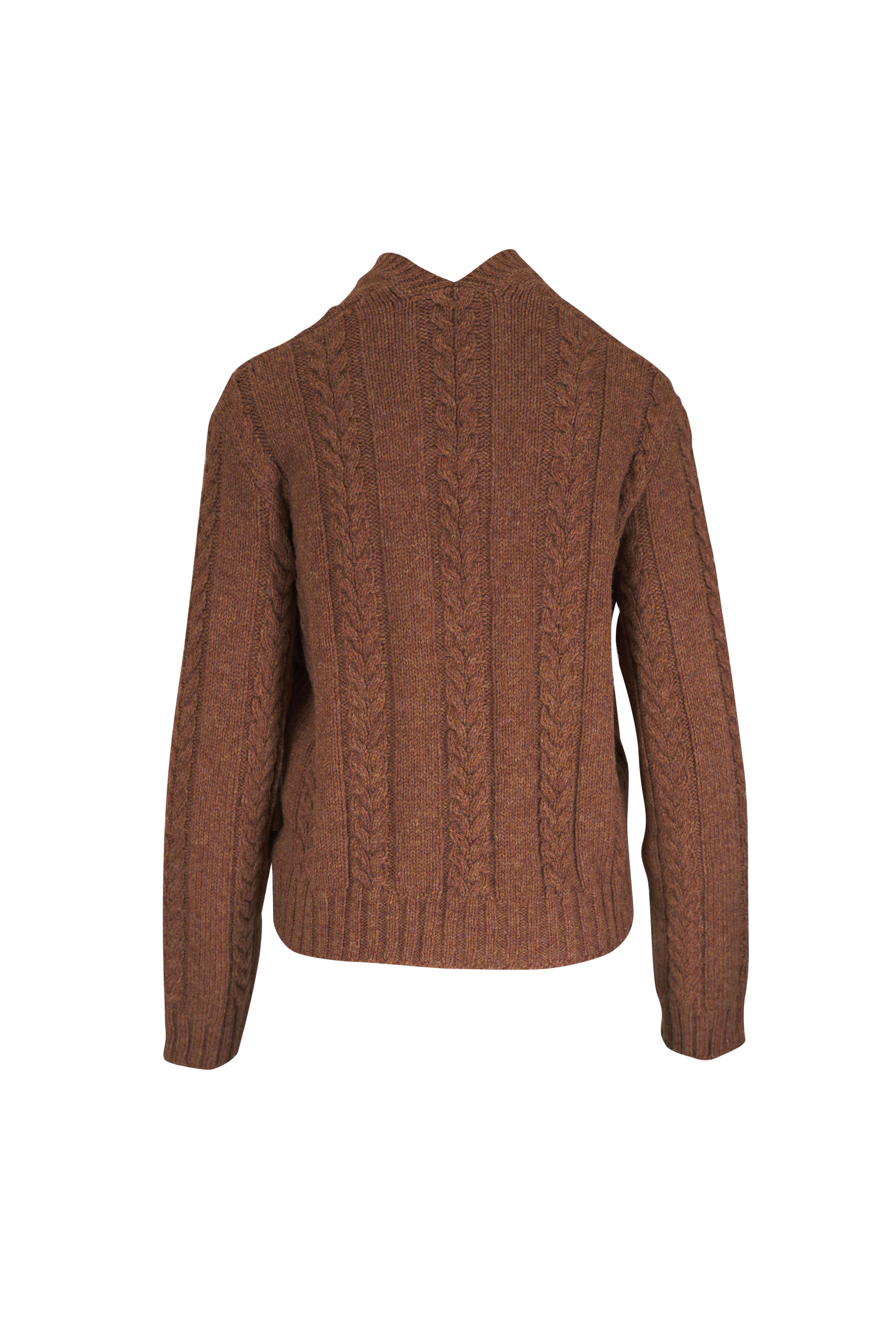V-neckline; keyhole with Anagram engraved button. Ribbed knit trim. Anagram leather tab placed at the side. Made in Italy. Approximately 23" shoulder to hem (measurements taken from size M). 98% wool, 1% polyamide, 1% polyurethane. Dry clean.