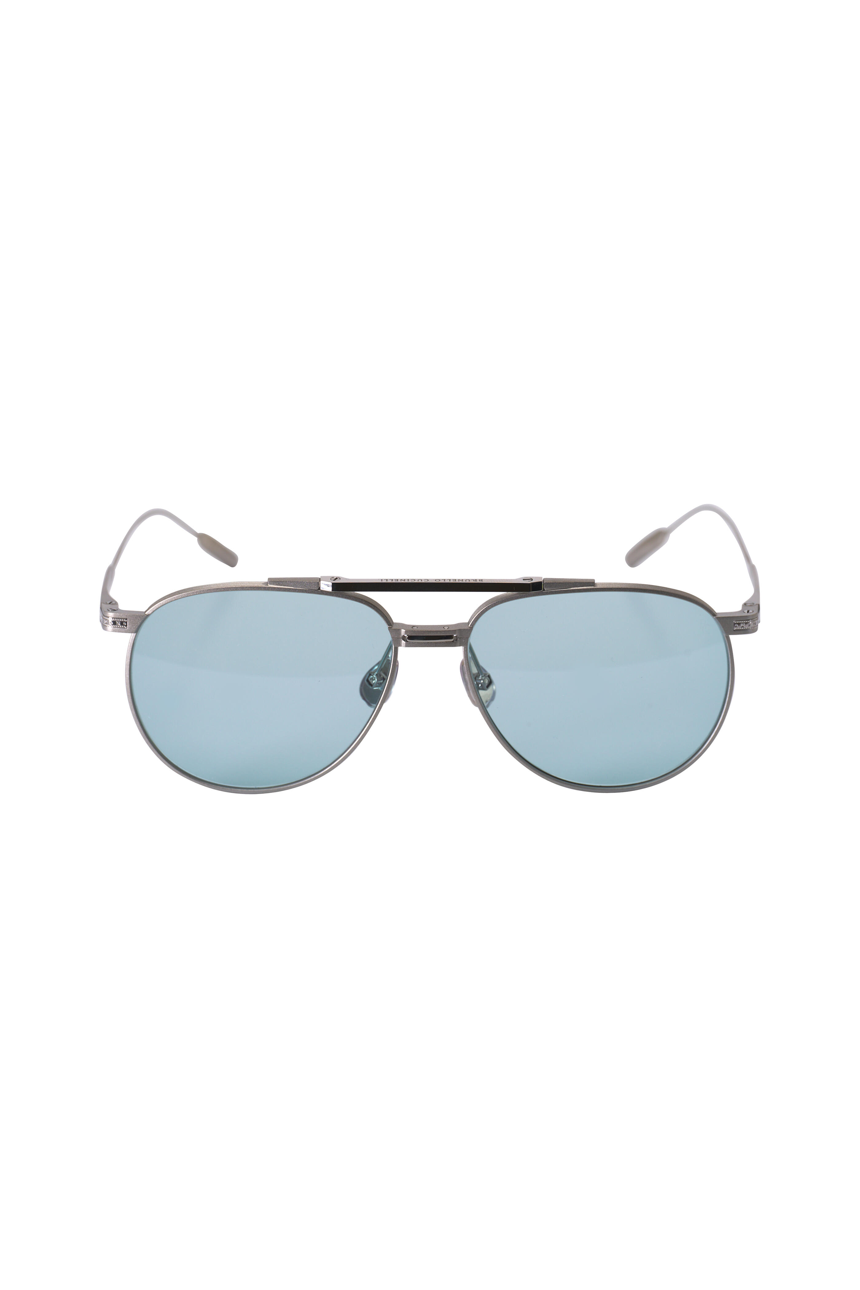 Blue transition lenses. Titanium, satin silver finished frames. Adjustable nosepads. Made in Italy. Eye: 58mm. Temple: 145mm. Bridge: 15mm.