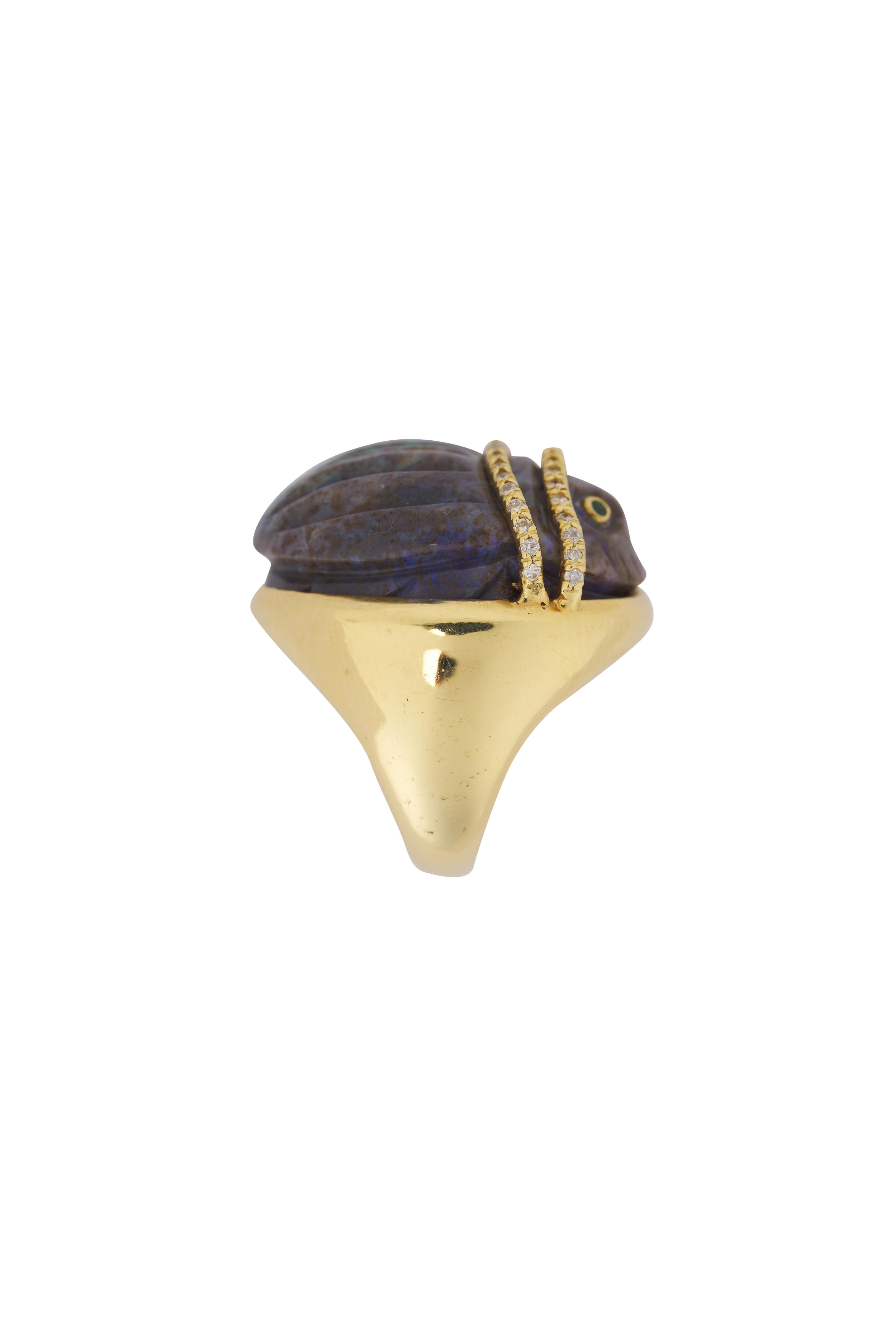 18k Yellow Gold Emerald Opal & Diamond Scarab Ring