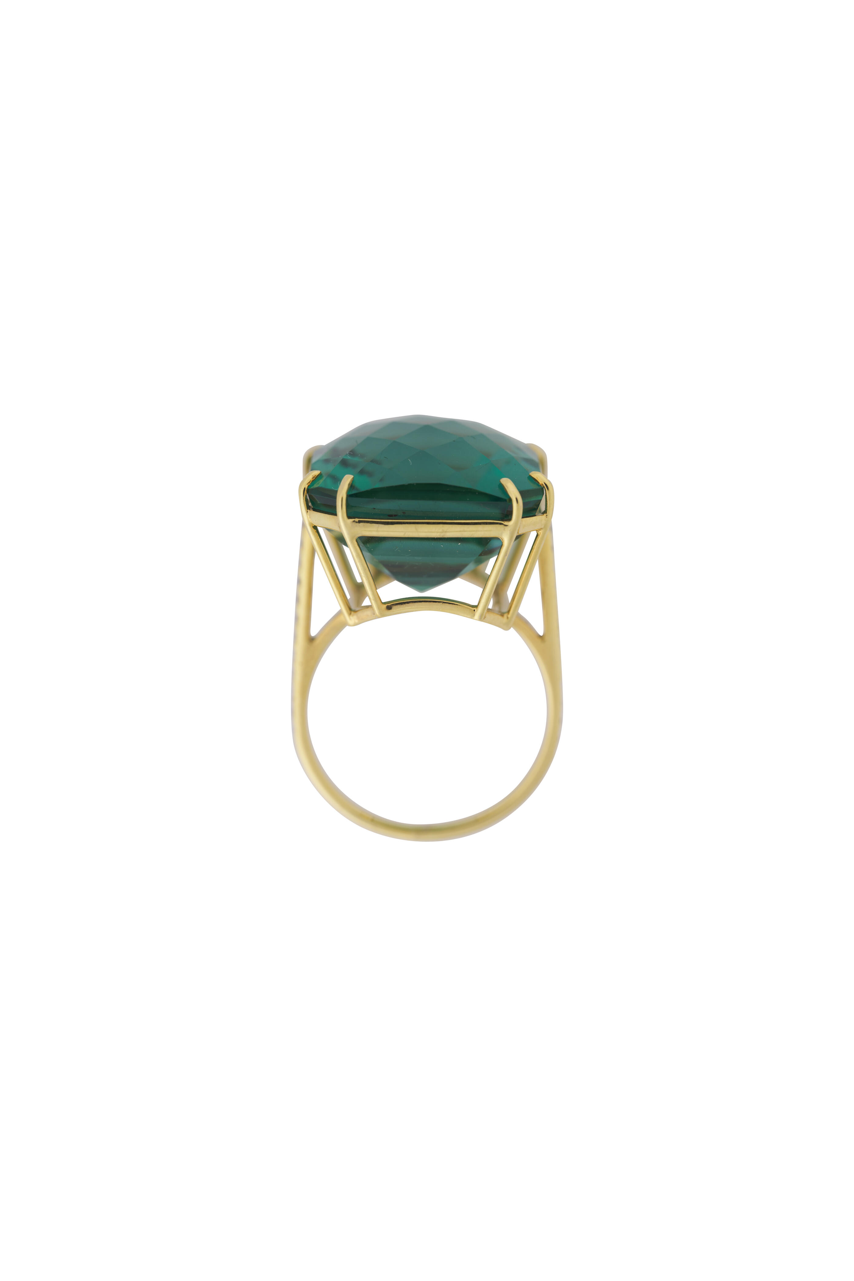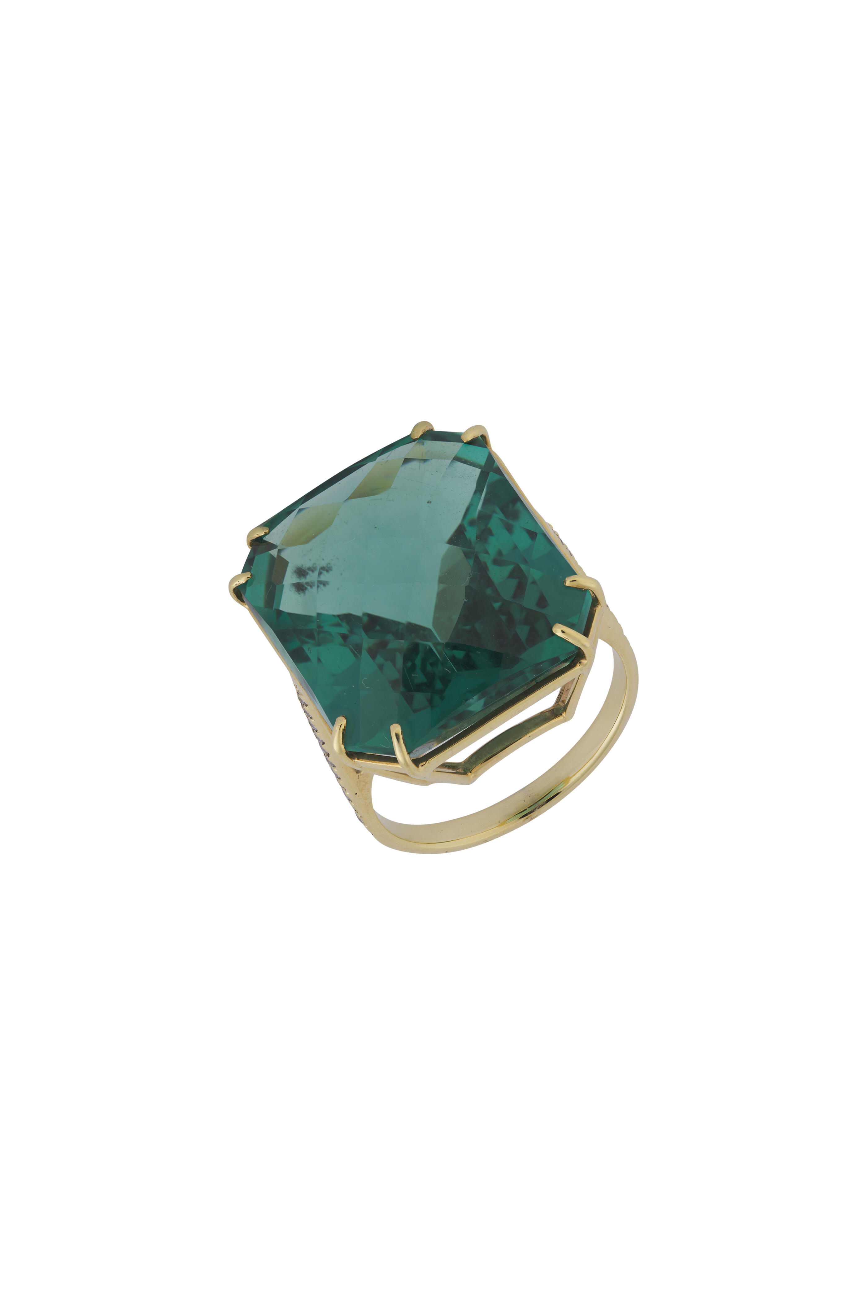 18k White Gold. Gold Gilded Finish. Green Quartz. Diamond. Size 8.