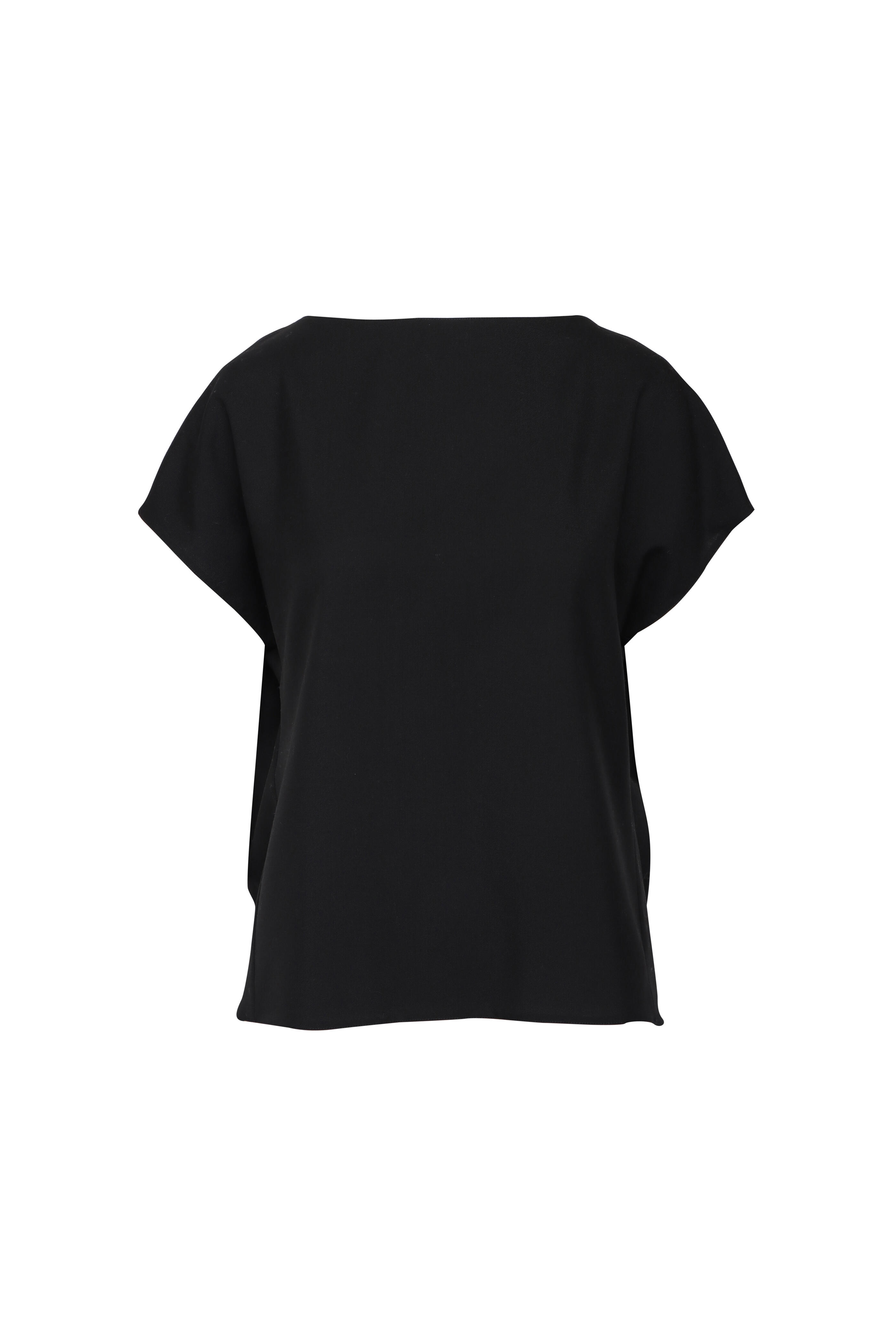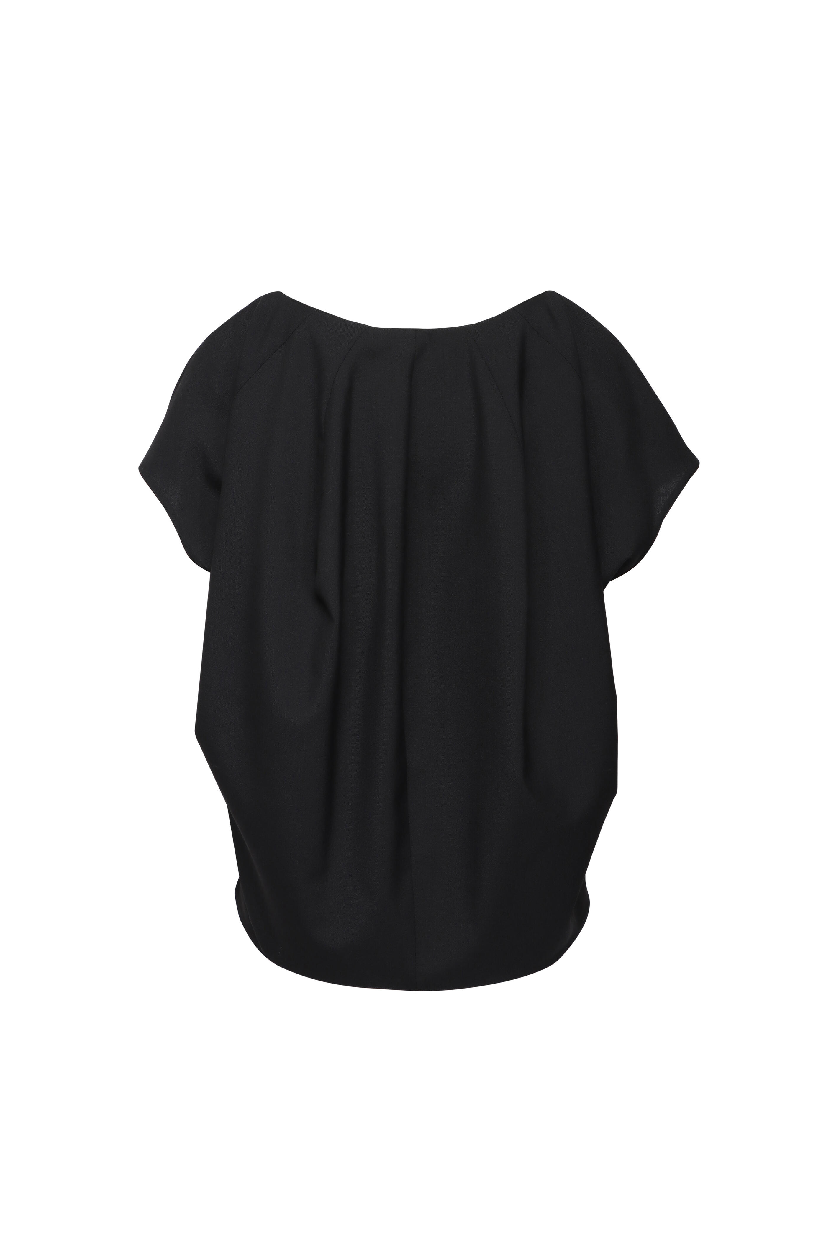 Round neck. Short dolman sleeves. Relaxed fit. Made in Italy. 100% virgin wool. Dry clean.