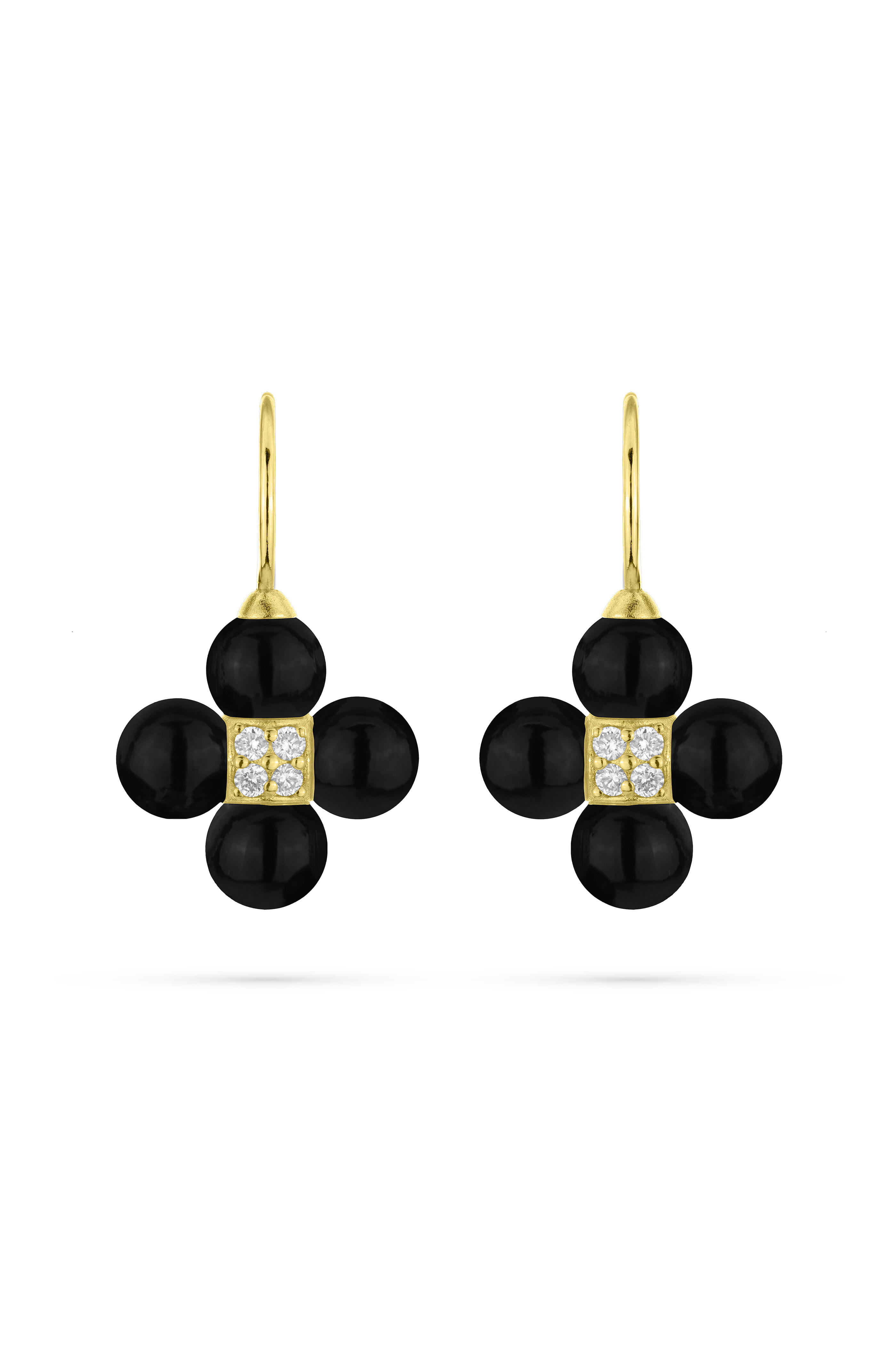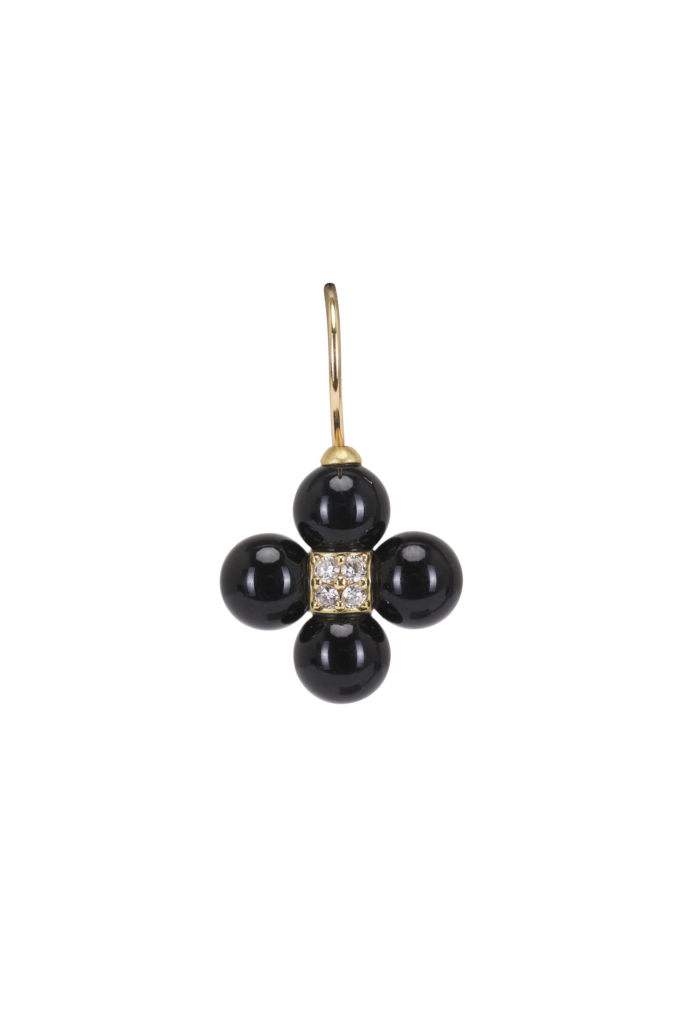 18k yellow gold. .16 carat white diamonds. Black onyx.