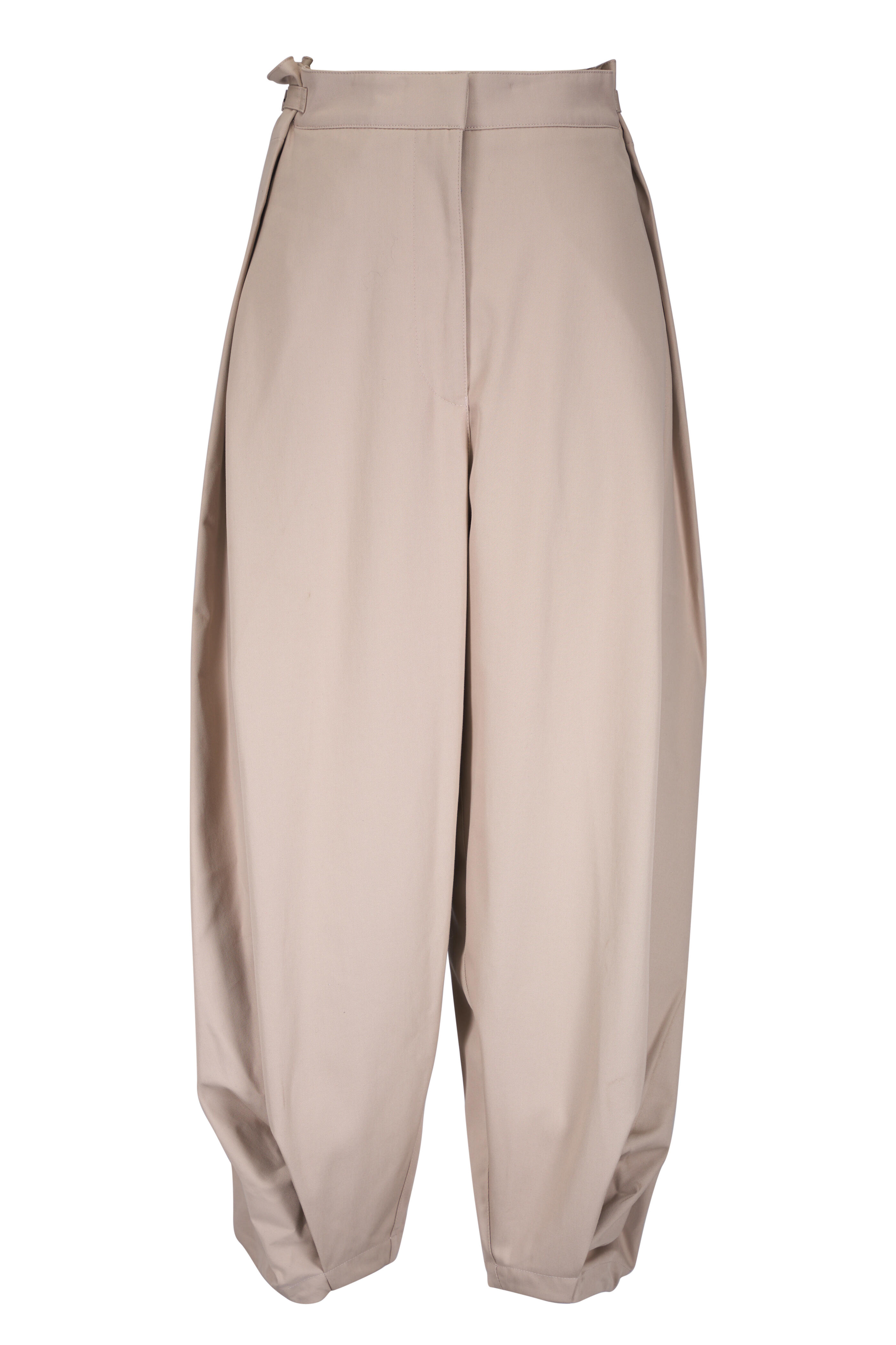 Zip fly; hook-and-bar closure. Fixed tabs at the waist. Side slip pockets; back buttoned flap pocket. Made in Italy. Inseam: 26". 90% cotton, 10% silk; lining: 100% cotton. Dry clean.