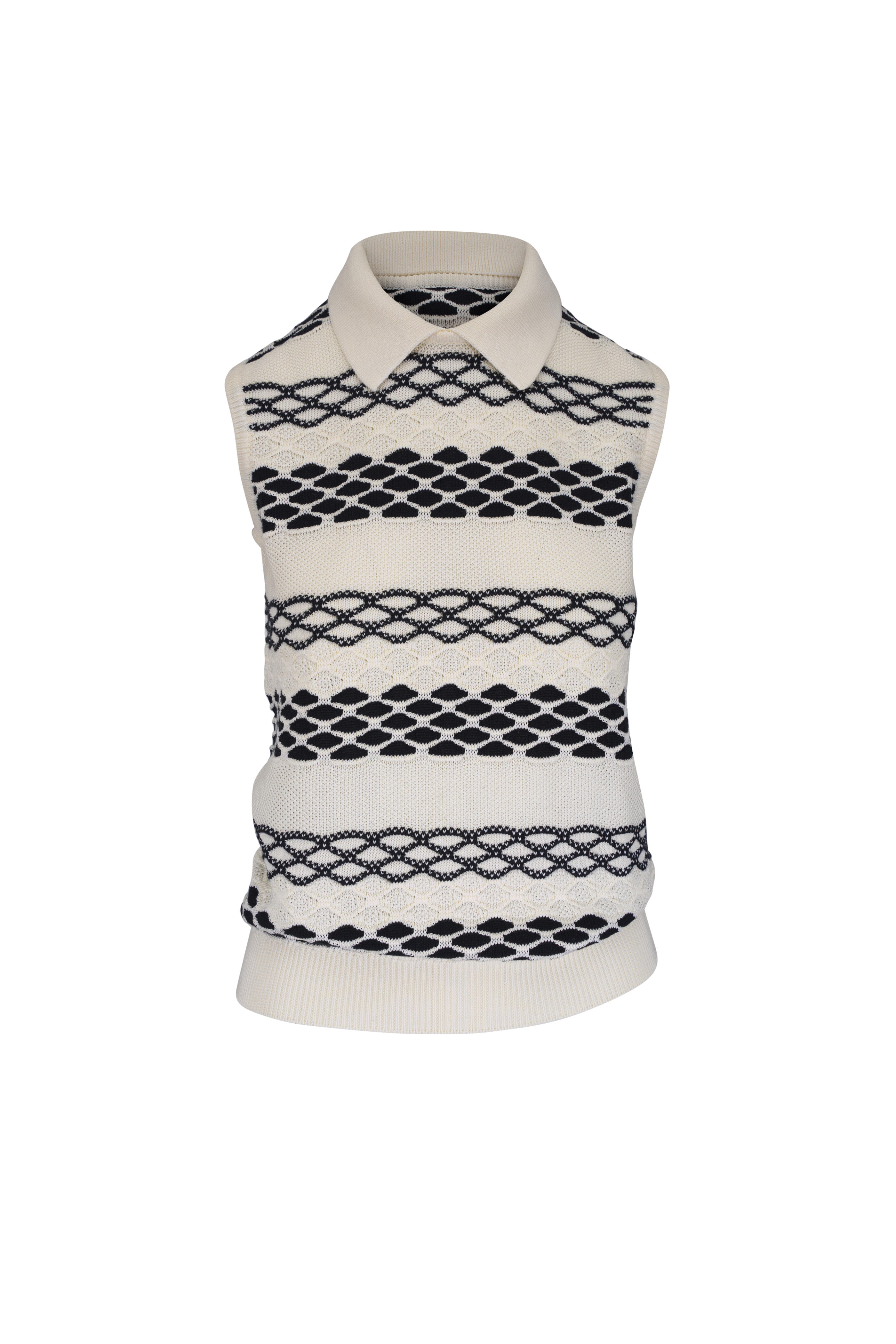 • Loewe - Black & White Jacquard Knit Collared Vest