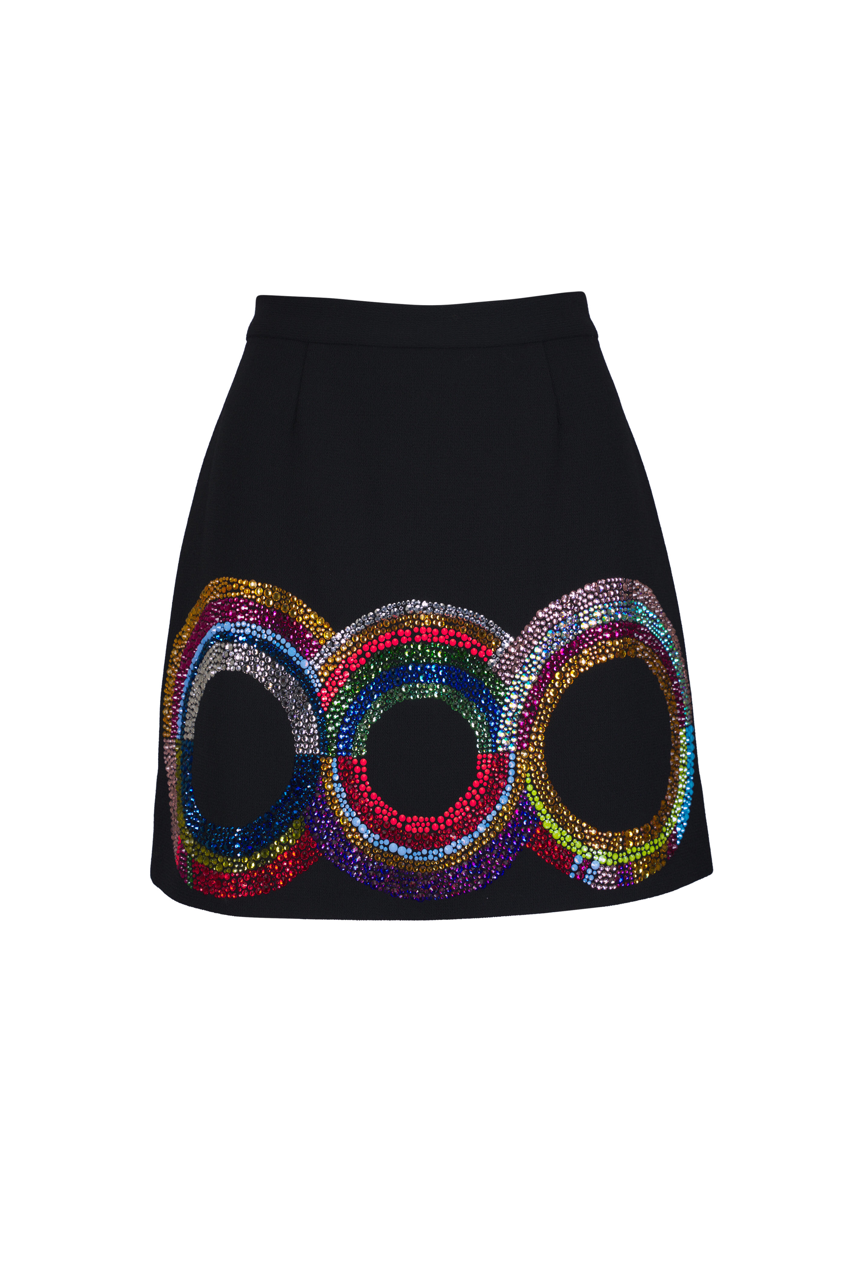Concealed back zip; hook and bar closure. Made in the USA; hand finished in Los Angeles. Mini length. 95% wool, 5% elastane; fully lined. Dry clean.