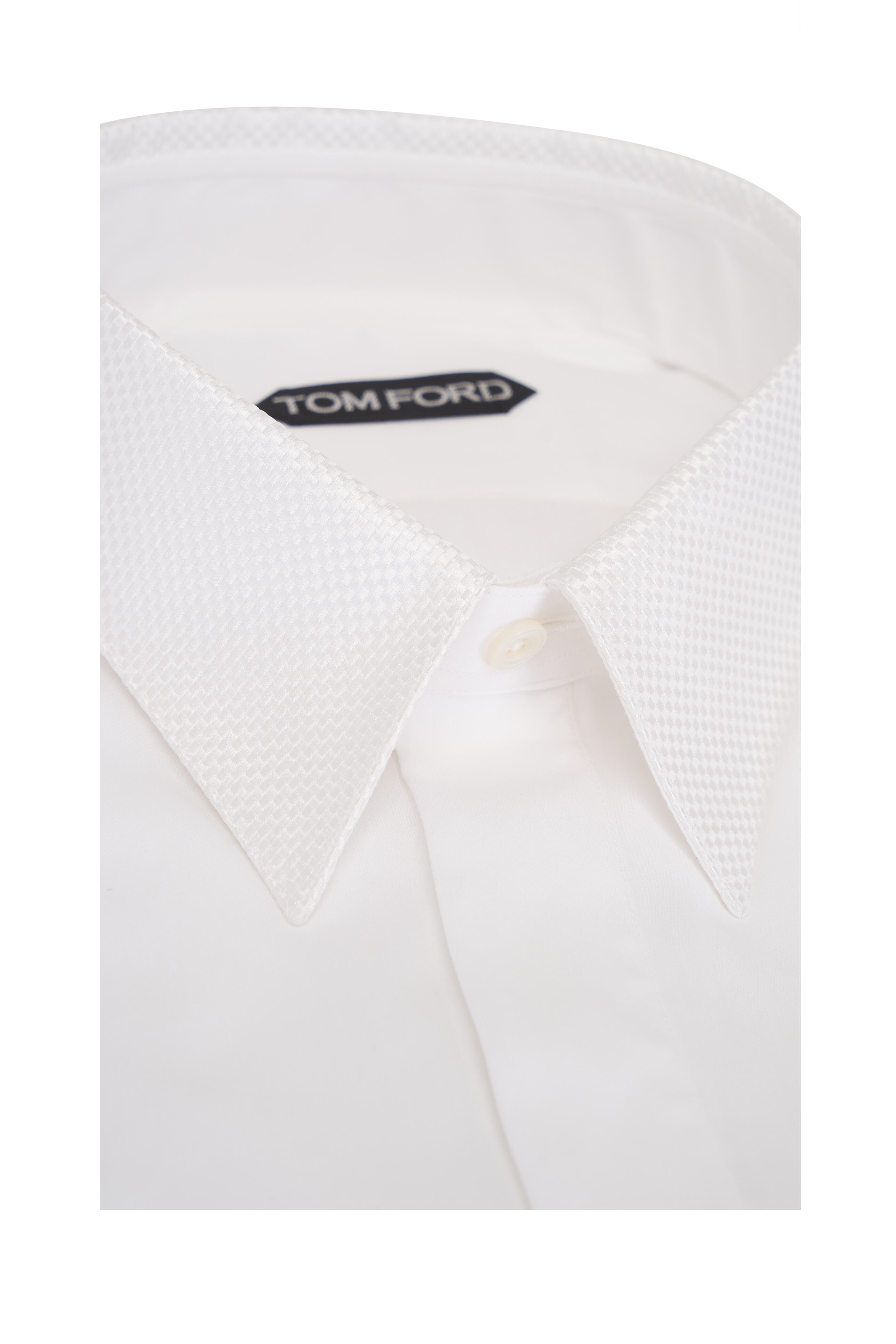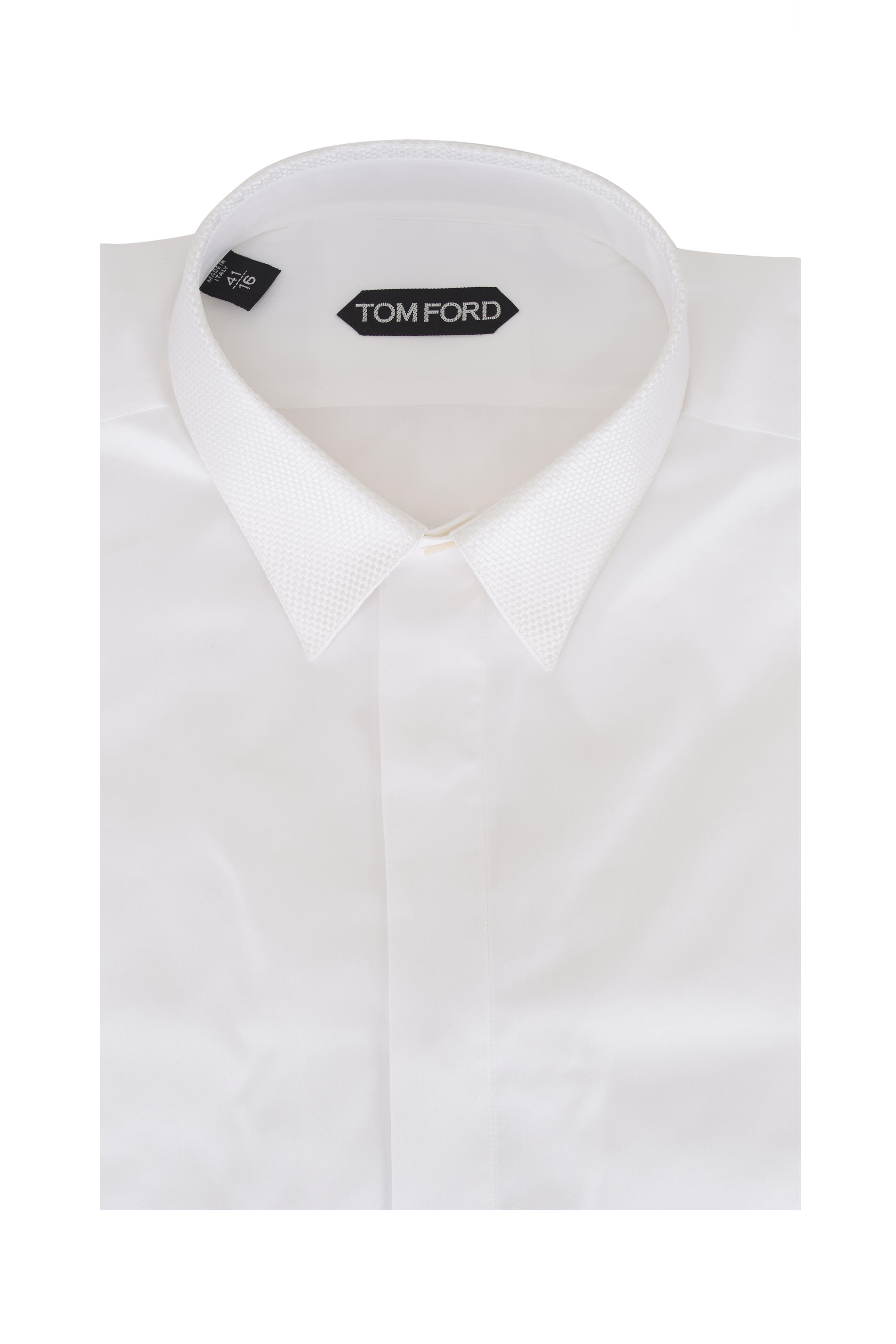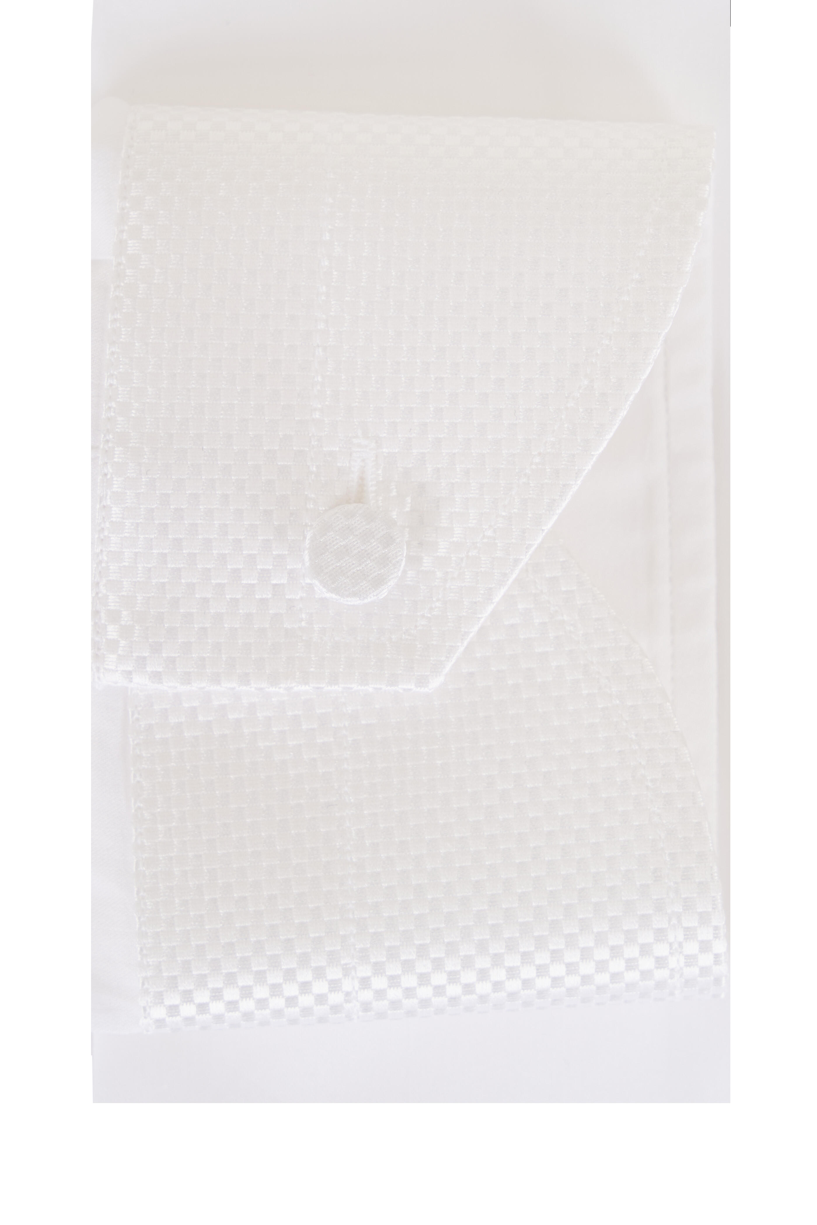 Spread collar. Hidden placket. Single-button mitered cuffs. Made in Italy. 76% cotton, 24% silk. Dry clean.